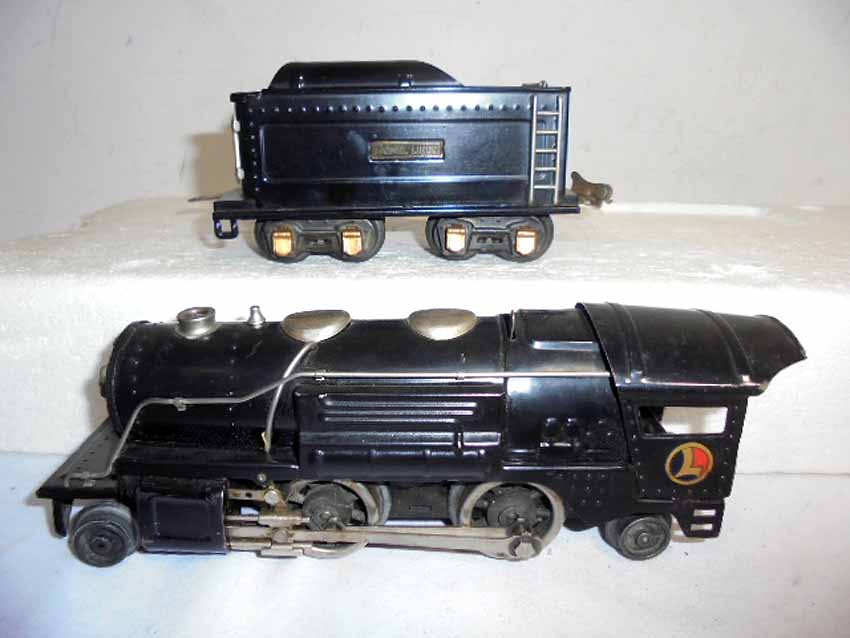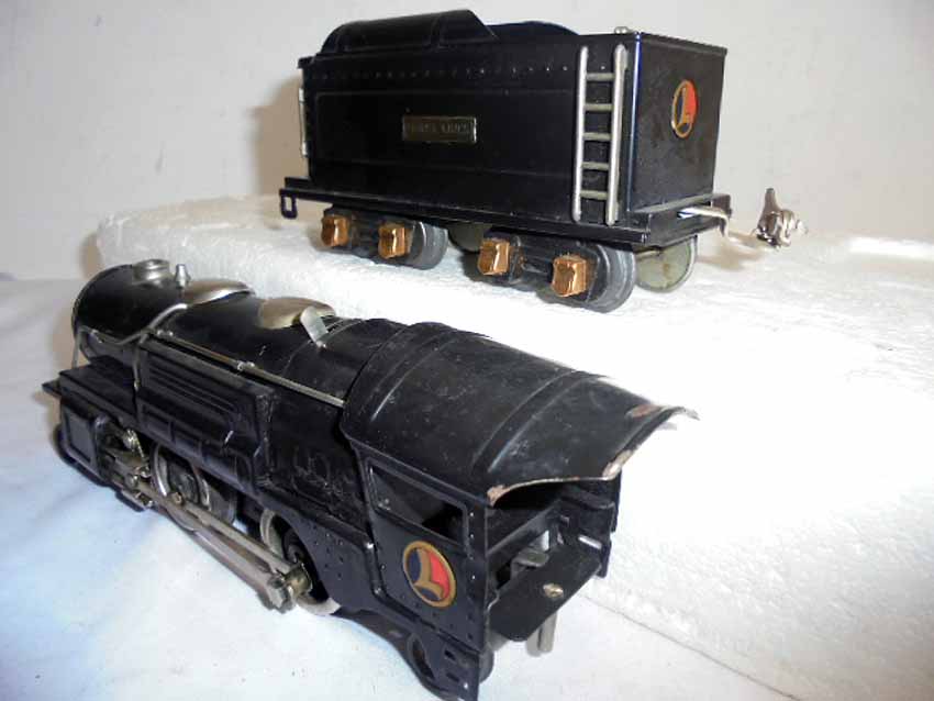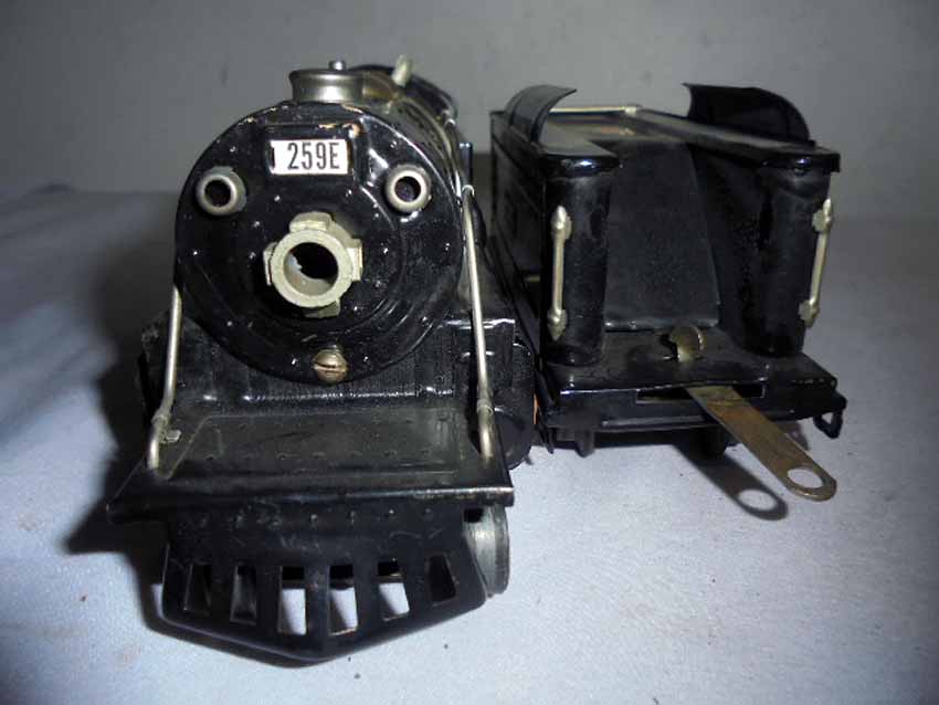 These are the #259E Black Steam Engine and Tender that Lionel made Pre War (Nickel Trim). Examine closely; what is pictured is what you will receive. No Boxes. Please add $35.00 for US-48 Shipping and Insurance (more west of the Mississippi). |