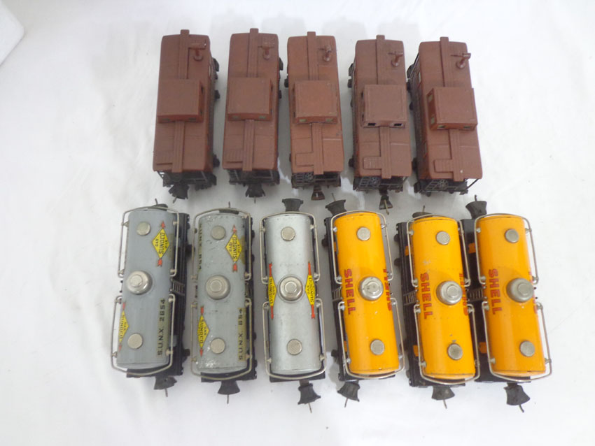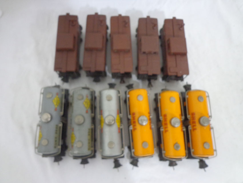 These are eleven Assorted Tank Cars and Cabooses that Lionel made in the late 1930s/Early 1940s No Boxes. Examine closely; what is pictured is what you will receive. Please add $50.00 for US-48 Shipping and Insurance (more west of the Mississippi). |