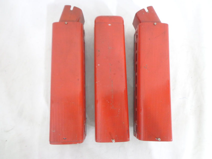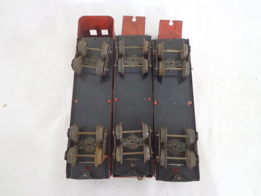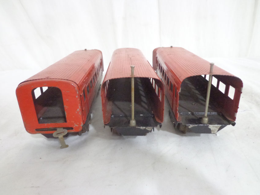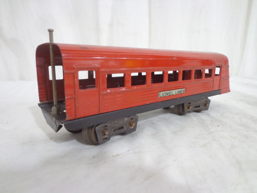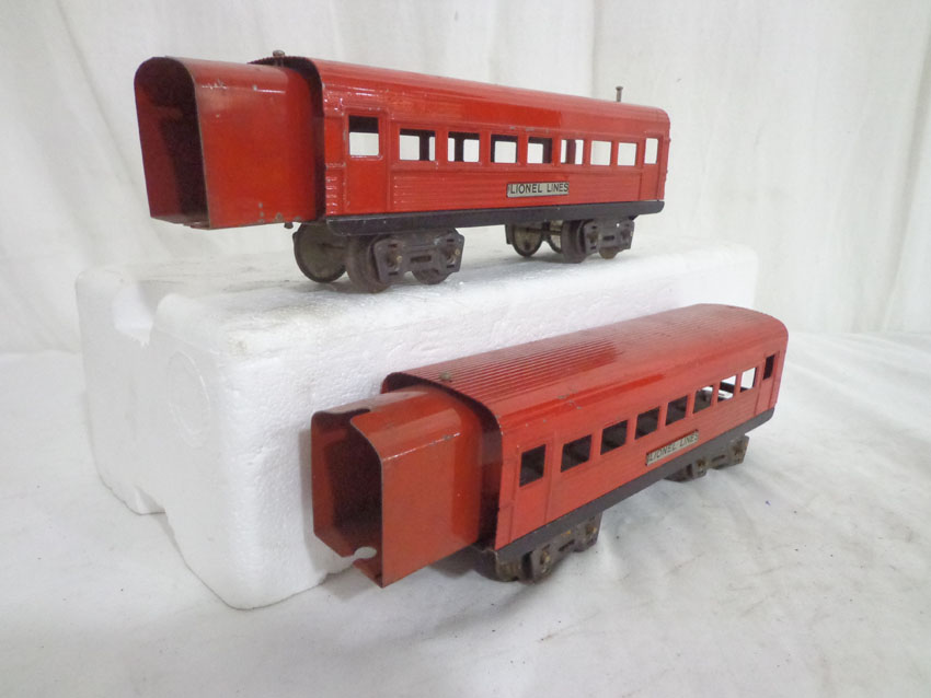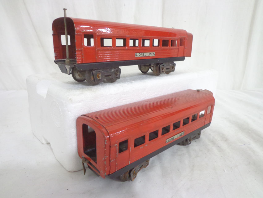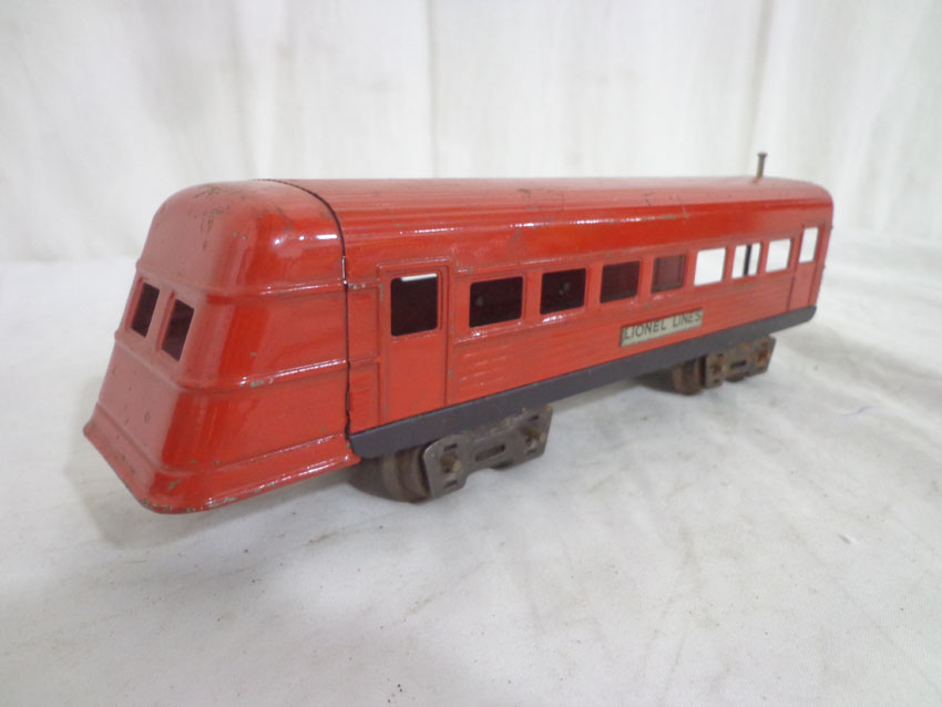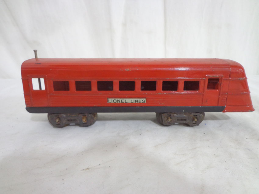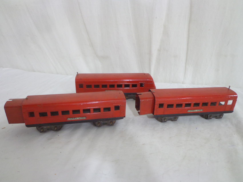 These are three Assorted Red Lionel Lines Rail Chief Jr. Streamlined Passenger Cars that Lionel made in the later 1930s. No Boxes. Examine very closely; what is pictured is what you will receive. Please add $35.00 for US-48 Shipping and Insurance (more west of the Mississippi). |