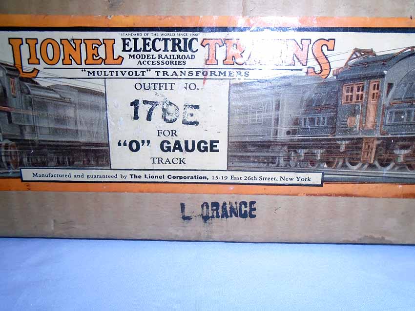 This is the Lionel #179E (Light Orange) Set Box. This Set would have included the #252E Electric and three freight cars. PLEASE REMEMBER THAT YOU ARE ONLY BIDDING ON THE SET BOX. Examine closely; what is pictured is what you will receive. All Original in Our Opinion. Please add $35.00 for US-48 Shipping and Insurance (more west of the Mississippi).
