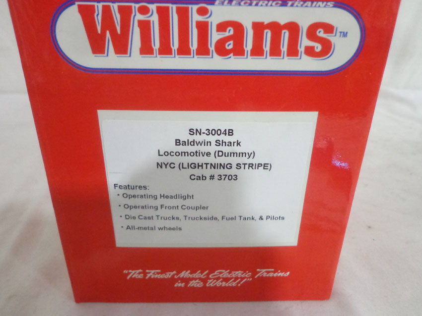 This is the #SN-3004B New York Central Baldwin Shark Engine that Williams made a few years ago. Our Opinion is that it is generally in Mint Condition. Original Box. All Original in our Opinion. Please add $30.00 for US-48 Shipping and Insurance (more west of the Mississippi).