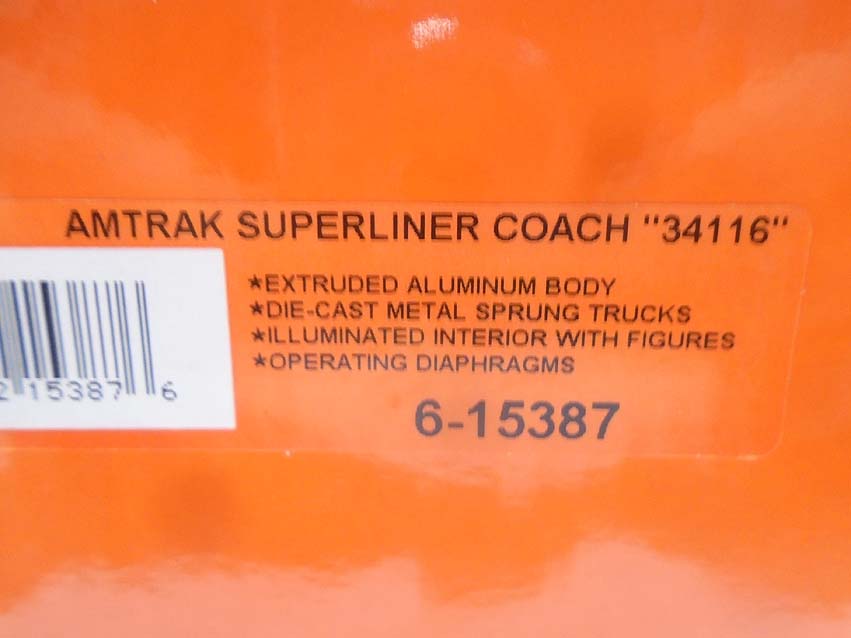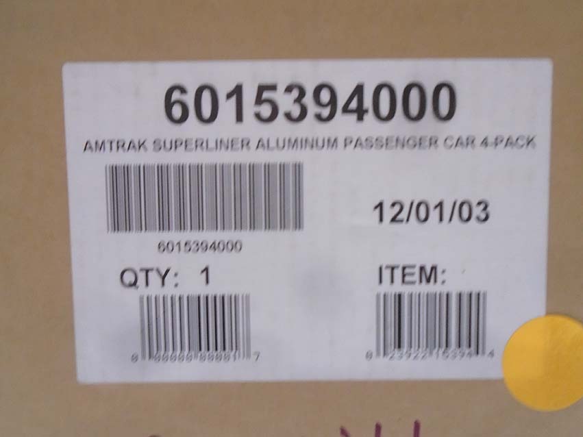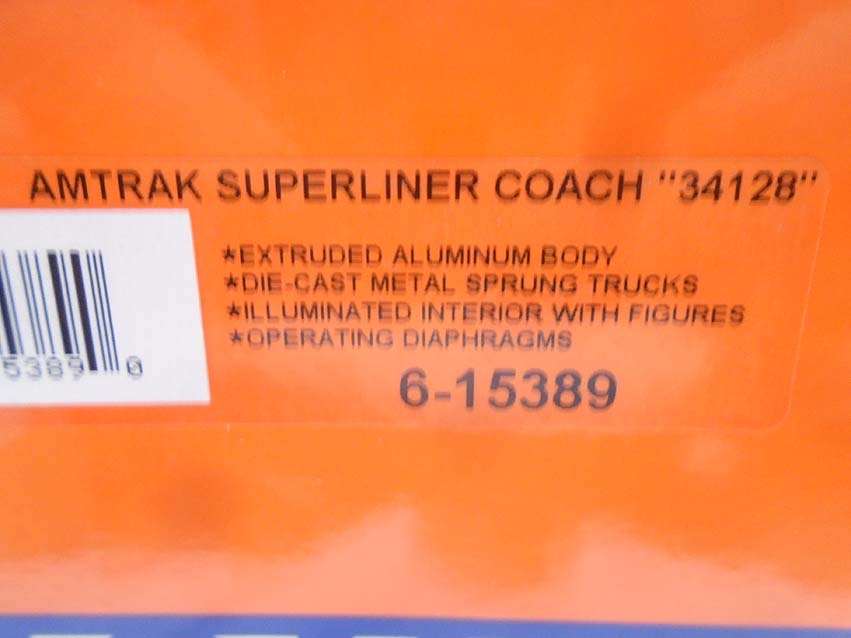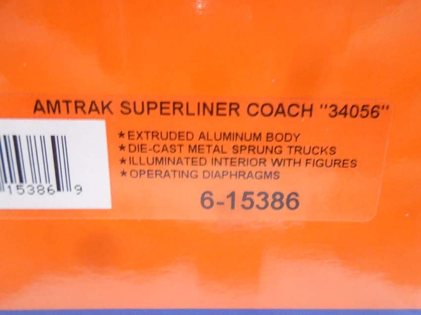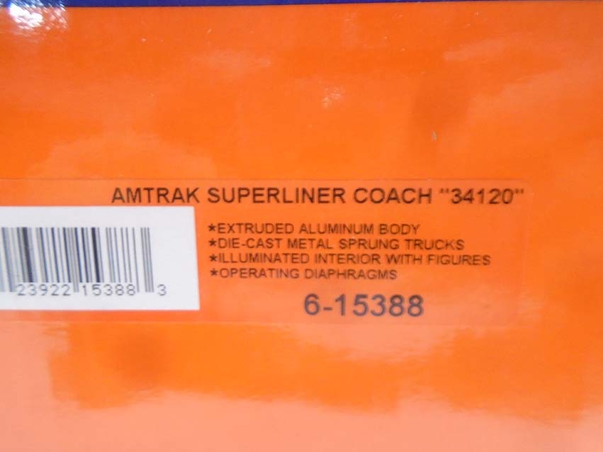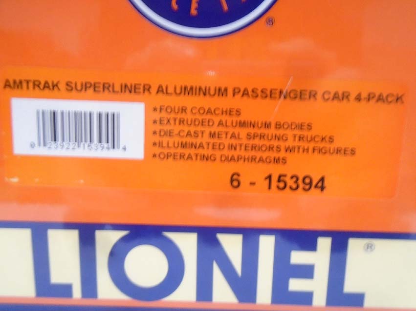 This is the #15394 Amtrak Superliner Aluminum Passenger four Car Set that Lionel made a few years ago. Our Opinion is that the Set is generally in Like New Condition. Original Box. All Original in our Opinion. Please add $45.00 for US-48 Shipping and Insurance (more west of the Mississippi).