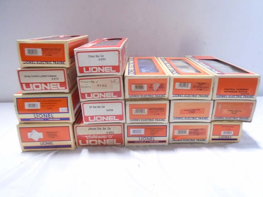 These are seventeen Assorted Freight Cars that Lionel made a few years ago. Our Opinion is that they are generally in Excellent Plus or Better Condition. Original Boxes/(worn/dirty). All Original in our Opinion. Please add $50.00 for US-48 Shipping and Insurance (more west of the Mississippi).