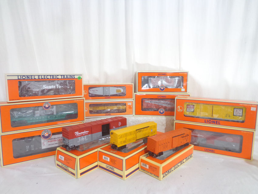 These are twelve Assorted Cars that Lionel made a few years ago. Our Opinion is that they are generally in Like New or Better Condition. Original Boxes. All Original in our Opinion. Please add $50.00 for US-48 Shipping and Insurance (more west of the Mississippi).