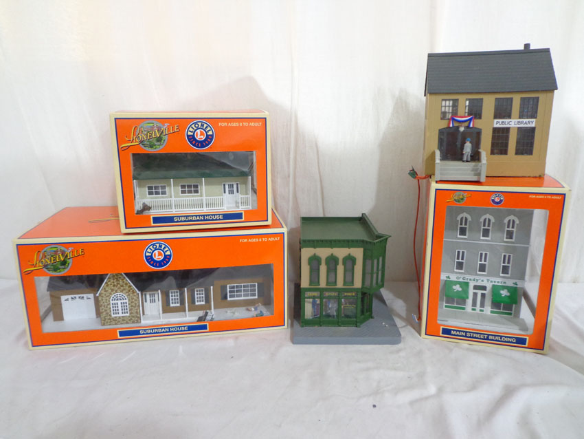 Like New or Better Lionel/MTH #34112 Fieldstone House, #34127 OGrady Tavern, #34110 Estate House, Public Library and Jewelry Store, 3 OBs Gail |