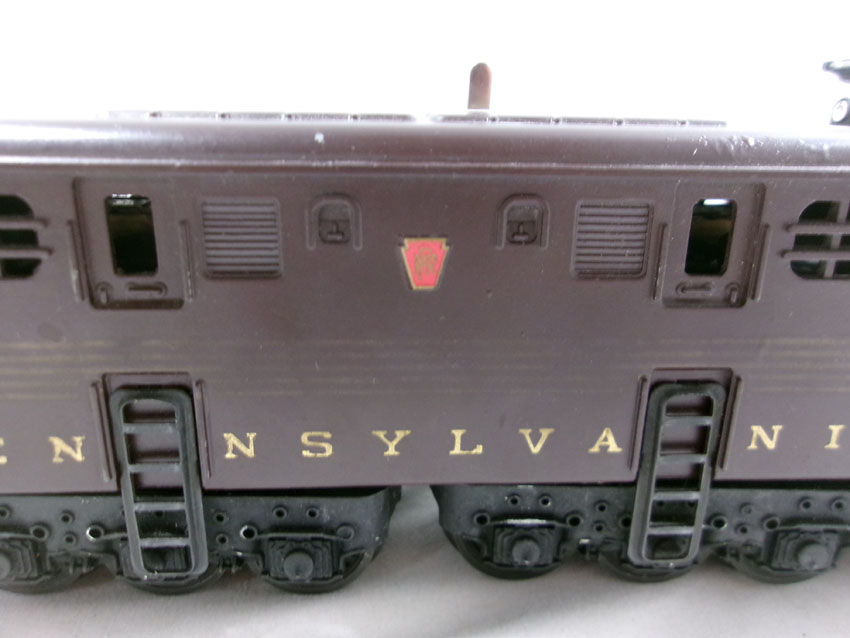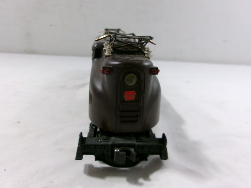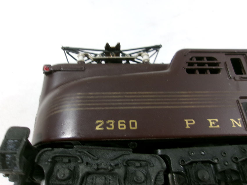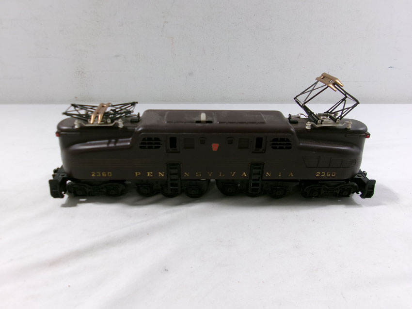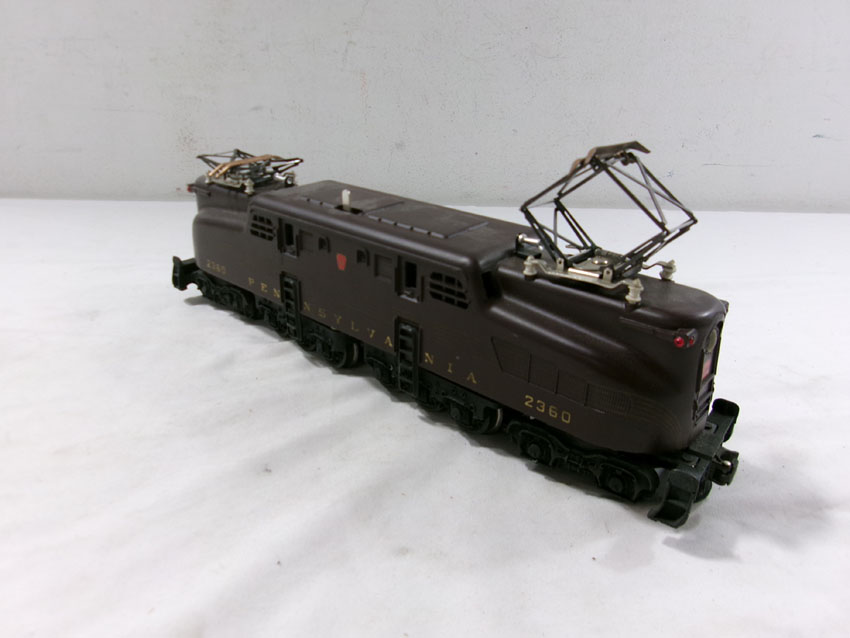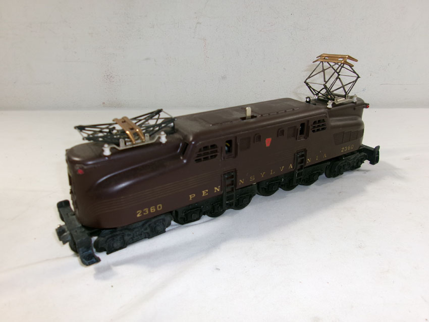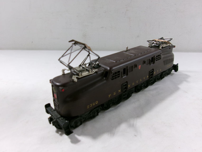 This is the #2360-1 PRR GG-1 Tuscan Electric Engine that Lionel made circa 1956. Dual Motors, Magnetraction, and Horn. Weak Stripes. No Box. Examine closely; what is pictured is what you will receive. Please add $45.00 for US-48 Shipping and Insurance (more west of the Mississippi).