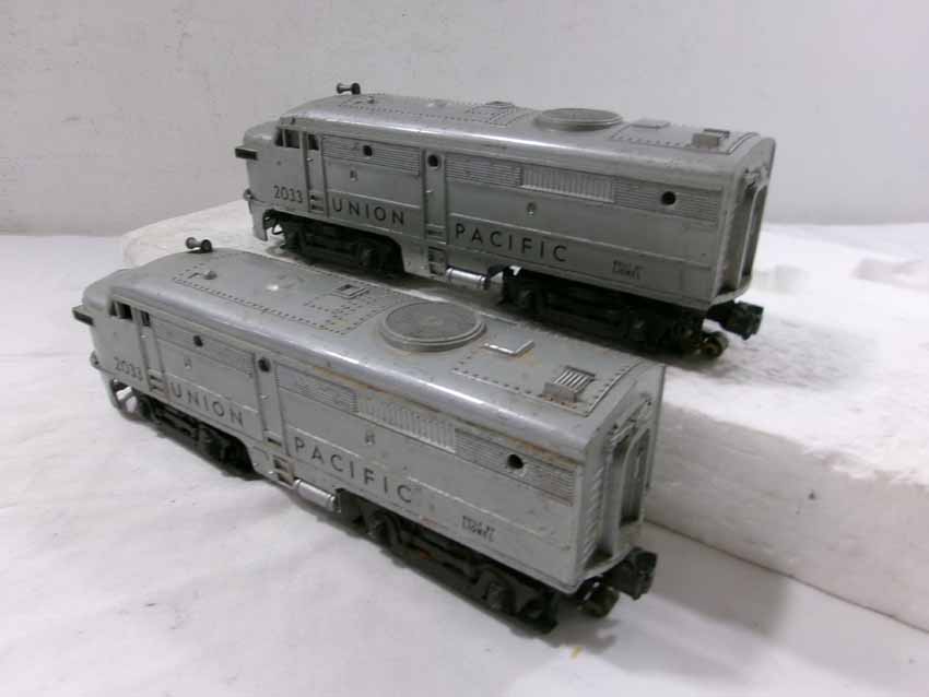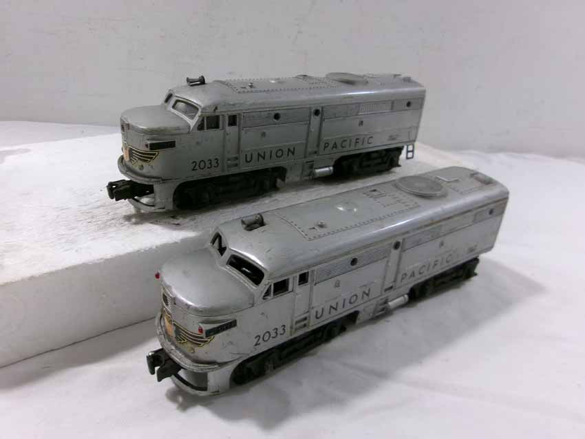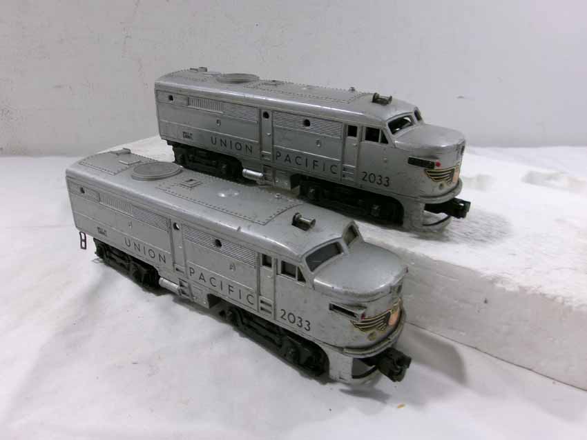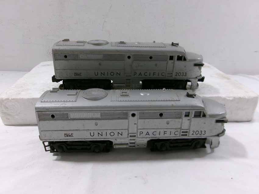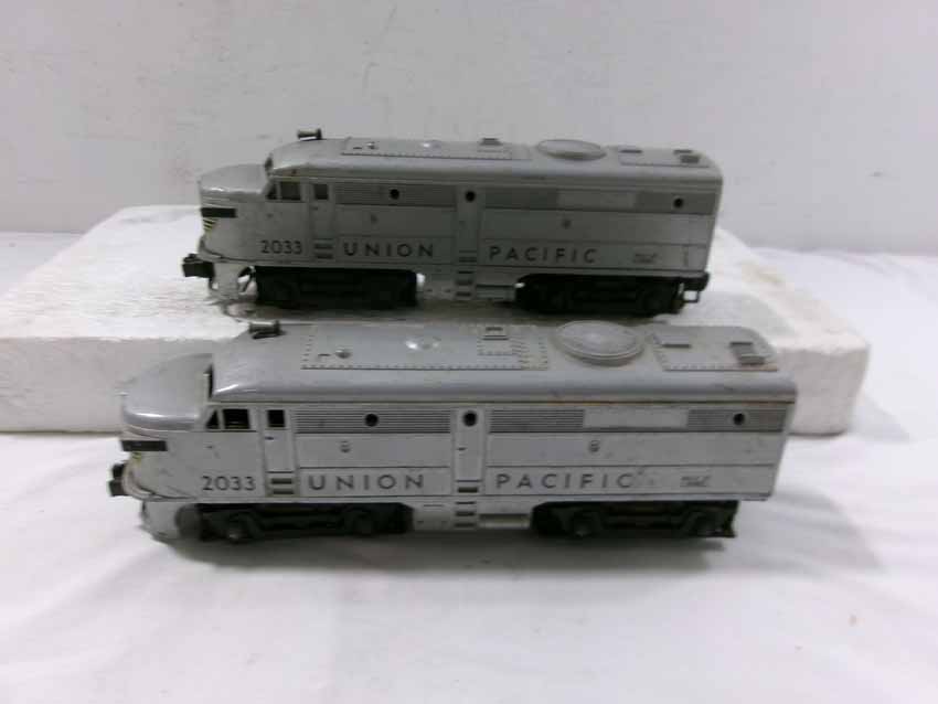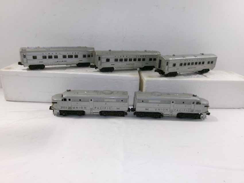 These are the #2033 UP Alco AA Diesel Engines and #2421/2422/2423 Passenger Cars that Lionel made in the 1950s. No Boxes. Examine closely; what is pictured is what you will receive. Please add $50.00 for US-48 Shipping and Insurance (more west of the Mississippi).