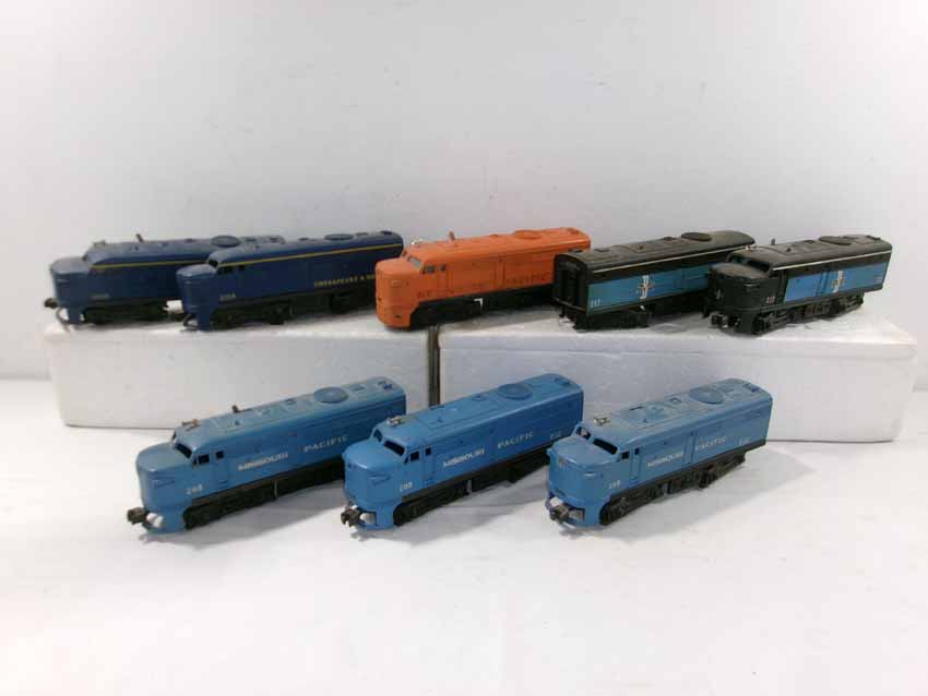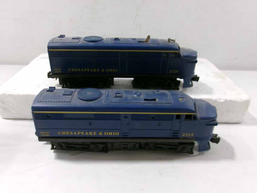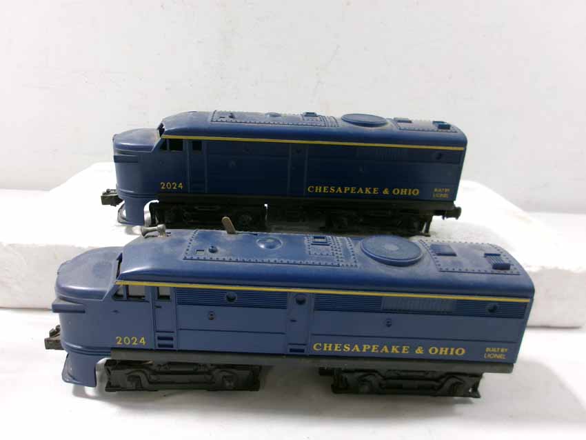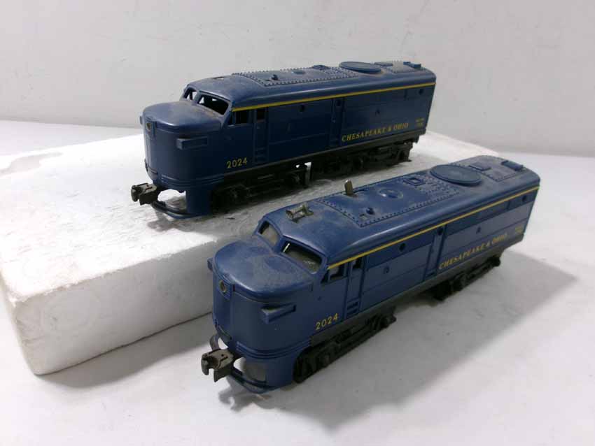 These are the #202 UP Alco A Diesel, #2024 C&O Alco AA Diesels, #217 B&M Alco AA Diesels and #205 MP Alco AAA Diesels that Lionel made in the past. No Boxes. Examine closely; what is pictured is what you will receive. Please add $50.00 for US-48 Shipping and Insurance (more west of the Mississippi).