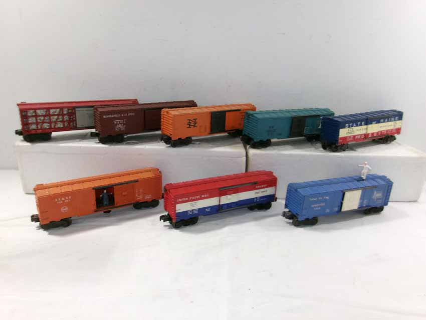 These are eight Assorted Box and Poultry Cars (two operating) that Lionel made in the past. No Boxes. Examine closely; what is pictured is what you will receive. Please add $50.00 for US-48 Shipping and Insurance (more west of the Mississippi).