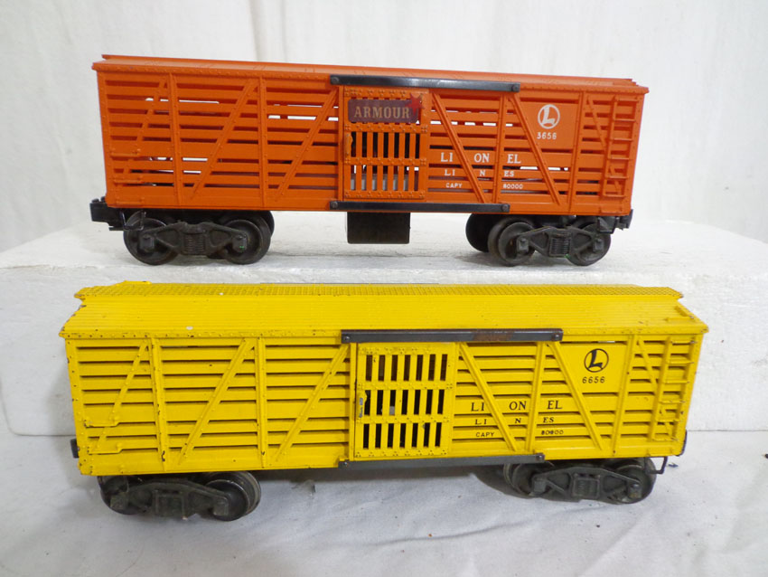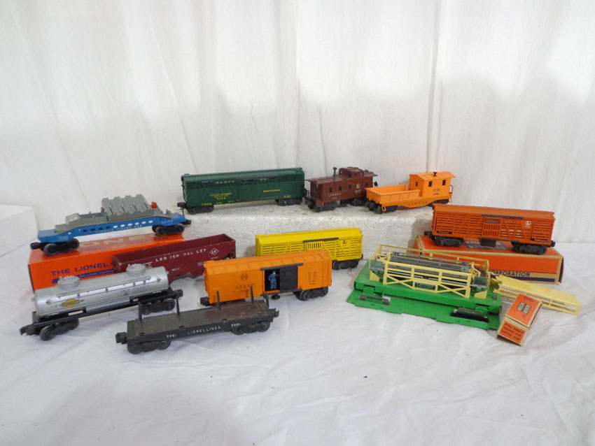 These are nine Assorted Cars and #3656 Stockyard that Lionel made in the past. Two Original Boxes. Examine closely; what is pictured is what you will receive. Please add $50.00 for US-48 Shipping and Insurance (more west of the Mississippi). |