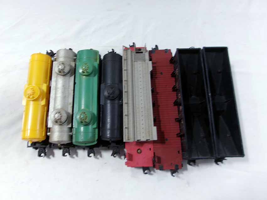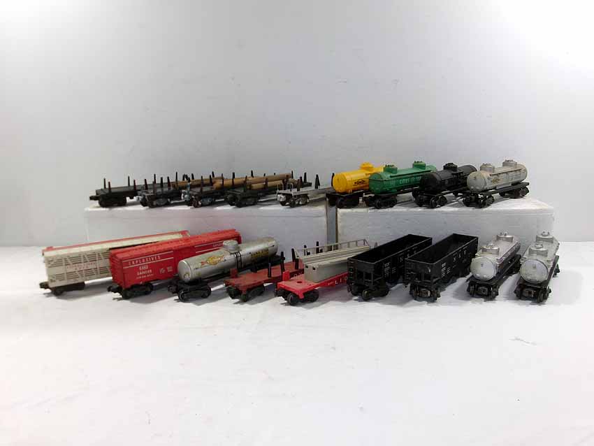 These are eighteen Assorted Freight Cars that Lionel made in the past. No Boxes. Examine closely; what is pictured is what you will receive. Please add $50.00 for US-48 Shipping and Insurance (more west of the Mississippi).
