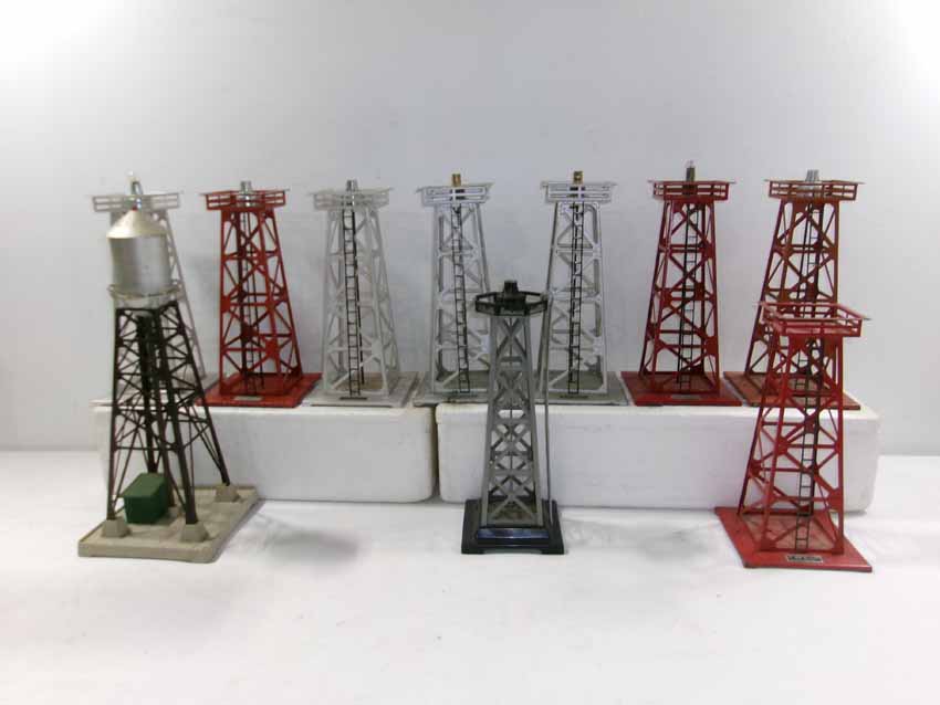 These are ten Assorted Towers (black structure industrial water tower) that Lionel/Marx made in the past. No Boxes. Examine closely; what is pictured is what you will receive. Please add $50.00 for US-48 Shipping and Insurance (more west of the Mississippi).