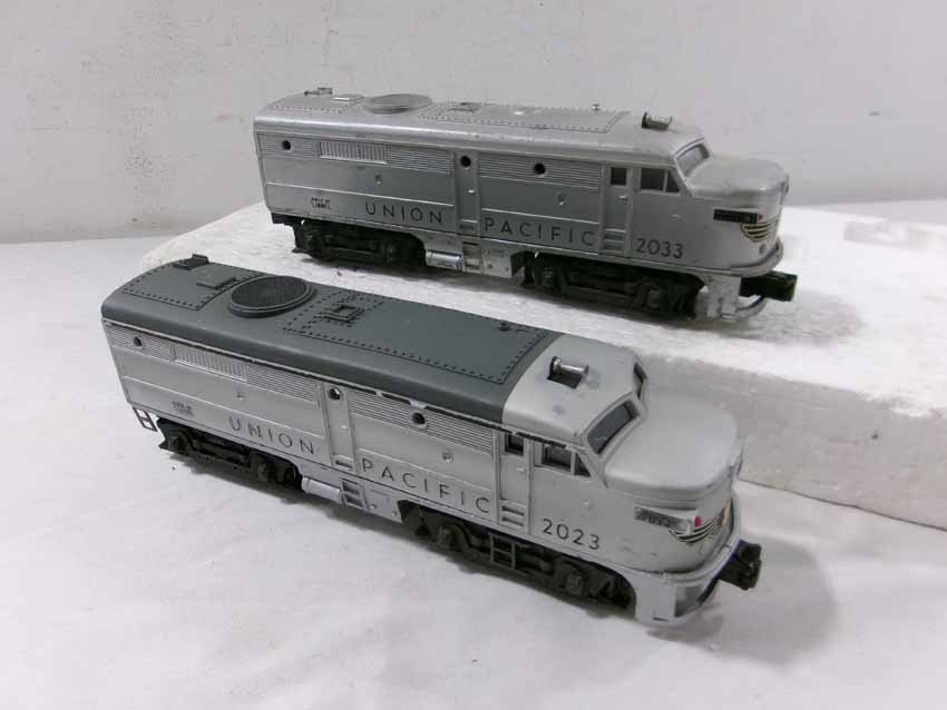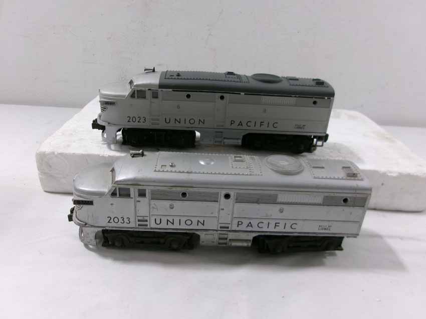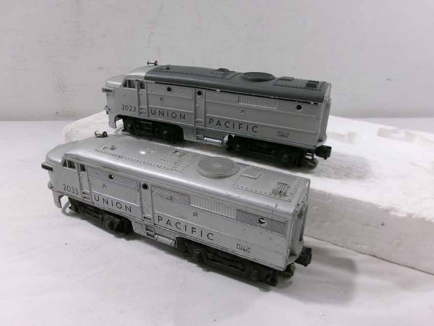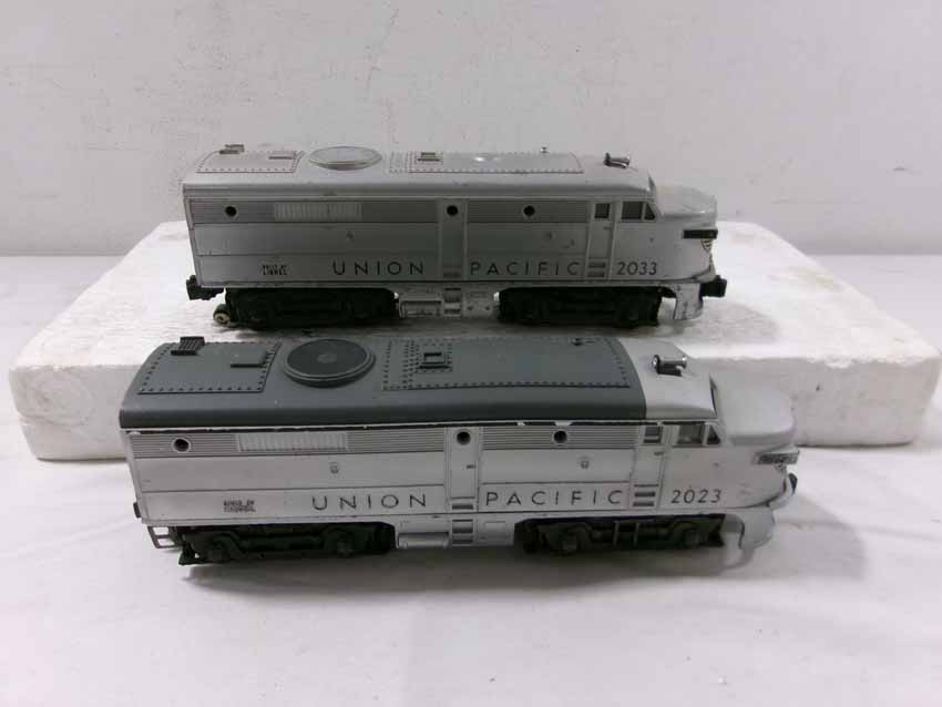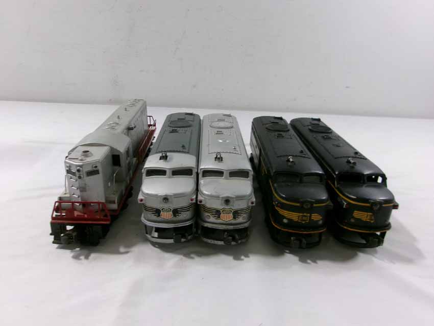 These are two #2032 Erie Alco AA Diesels (both non powered), #2023 UP Alco A Diesel(R) (non powered), #2033 UP Alco A Diesel (non powered) and #2328 Burlington GP-7 Diesel that Lionel made in the past. No Boxes. Examine closely; what is pictured is what you will receive. Please add $50.00 for US-48 Shipping and Insurance (more west of the Mississippi).
