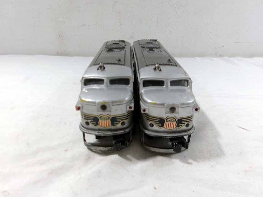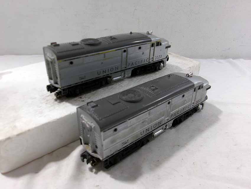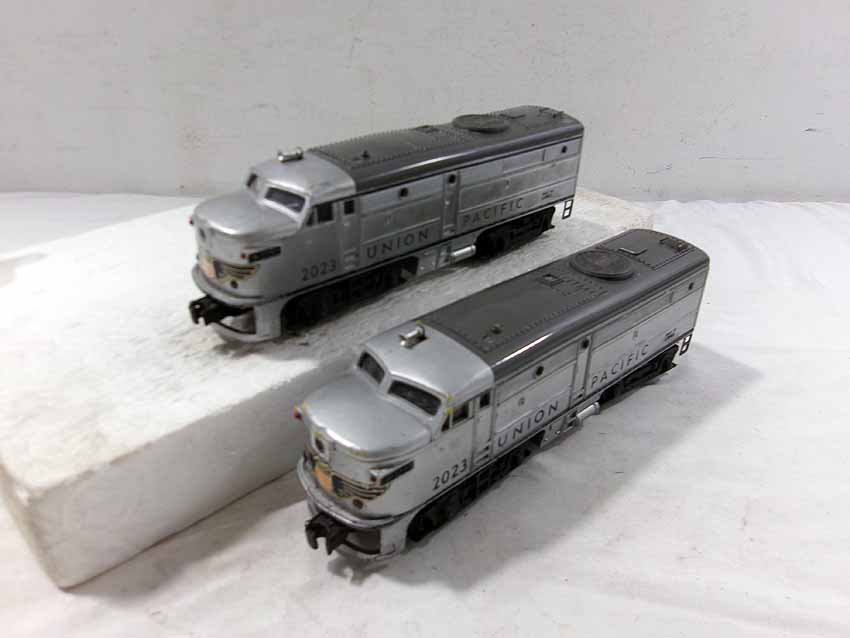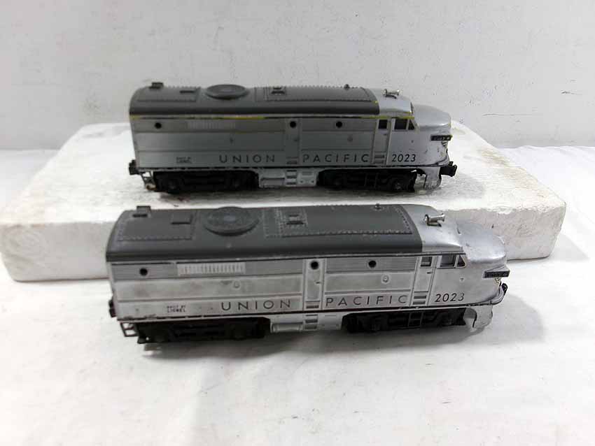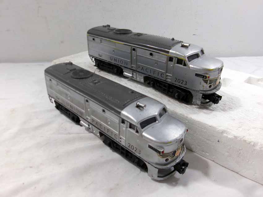 These are the #2023/2023 UP Alco AA Diesel Engines and #2421/2422/2423 Passenger Cars that Lionel made circa 1951. No Boxes. Examine very closely; what is pictured is what you will receive. Please add $50.00 for US-48 Shipping and Insurance (more west of the Mississippi).