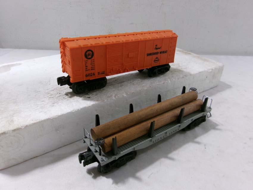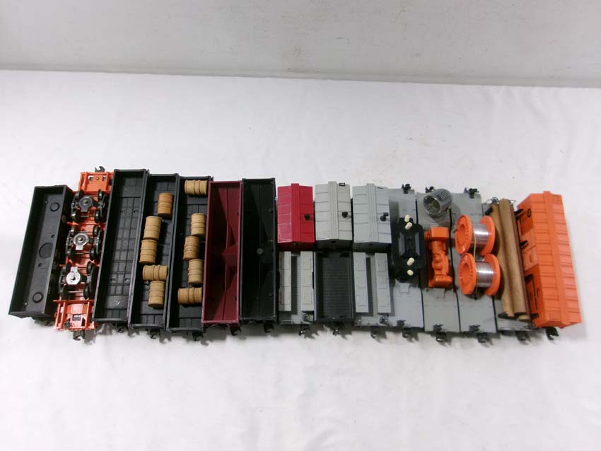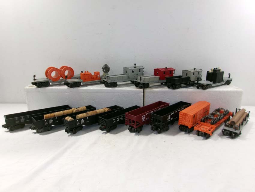 These are fifteen Assorted Freight Cars (one operating) that Lionel made Post War. No Boxes. Examine closely; what is pictured is what you will receive. Please add $50.00 for US-48 Shipping and Insurance (more west of the Mississippi). |