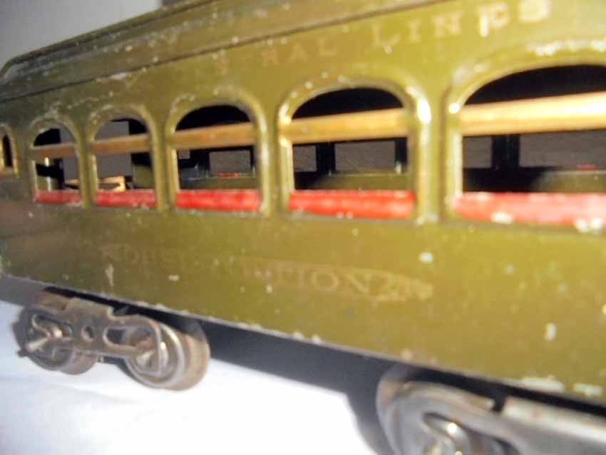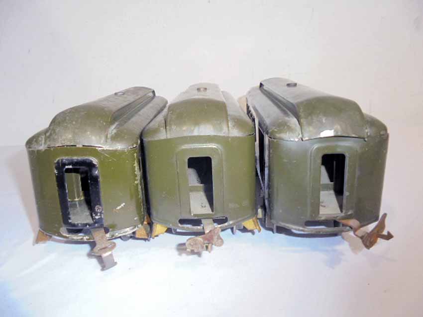 These are the Lionel Standard Gauge #31 Olive NYC Combo, #35 Pullman and #36 Observation Car made Pre War. No Boxes. Examine closely; what is pictured is what you will receive. Please add $40.00 for US-48 Shipping and Insurance (more west of the Mississippi).