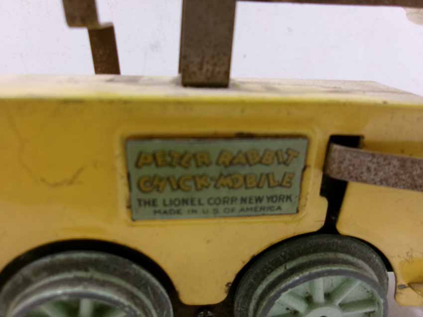 This is the Lionel #1103 Peter Rabbit Hand Car (no key) from the middle 1930s. No Box. Examine closely; what is pictured is what you will receive. Please add $35.00 for US-48 Shipping and Insurance (more west of the Mississippi).
