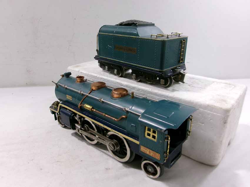 Lionel Standard Gauge #390E/390T Blue Comet 2-4-2 Steam Engine & Tender, #421 Blue Comet Westphal Coach and #422 Blue Comet Tempel Observation