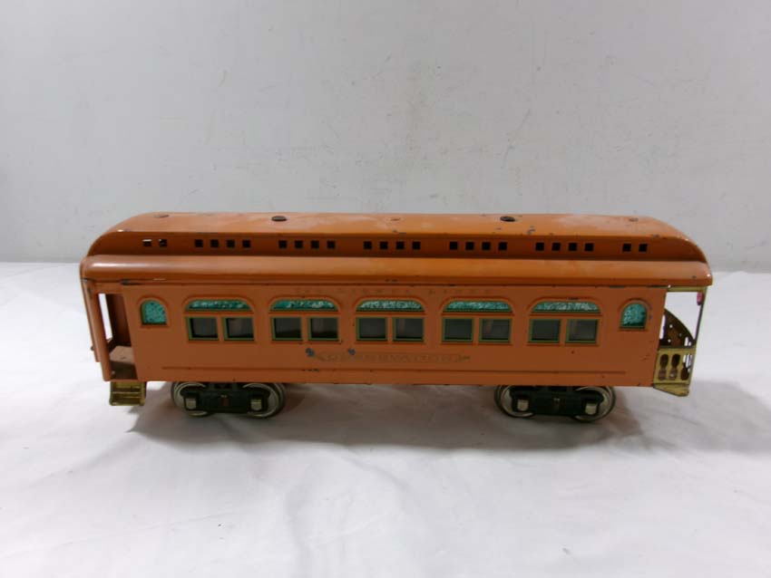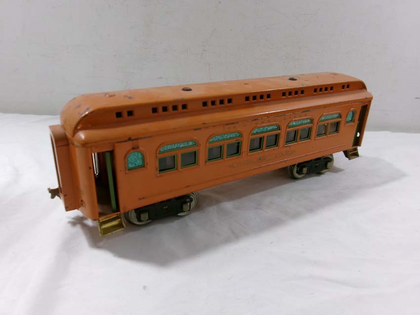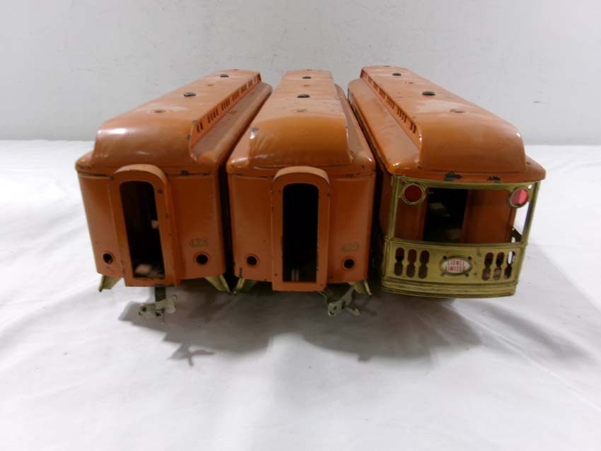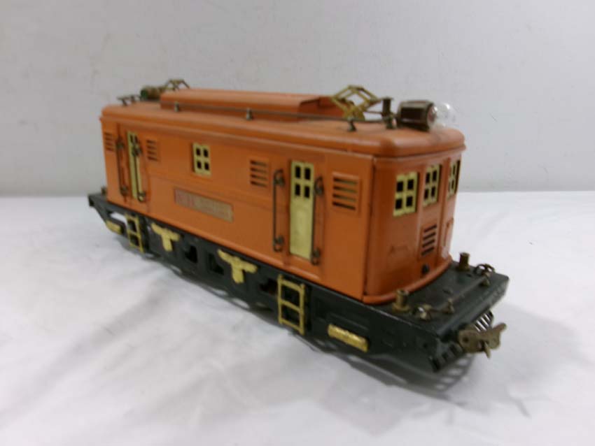 These are the Standard Gauge #9E Electric Engine (orange) and #528/528/530 Passenger Cars (orange) that Lionel made Pre War. No Boxes. Examine closely; what is pictured is what you will receive. Please add $75.00 for US-48 Shipping and Insurance (more west of the Mississippi).