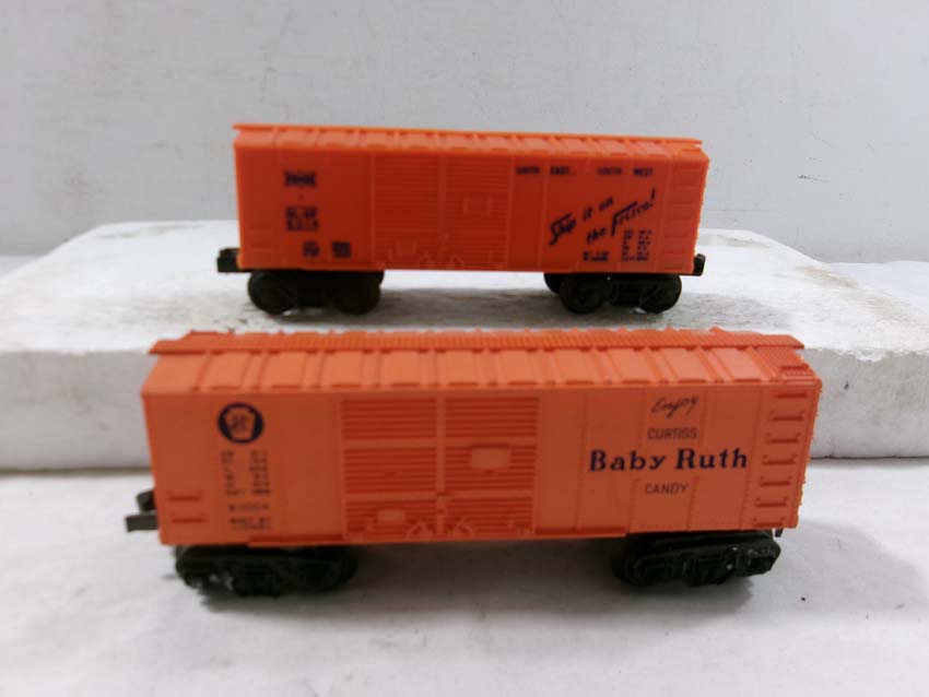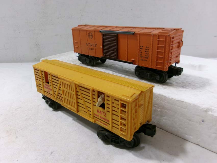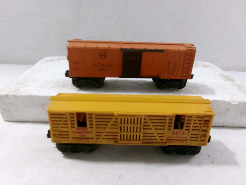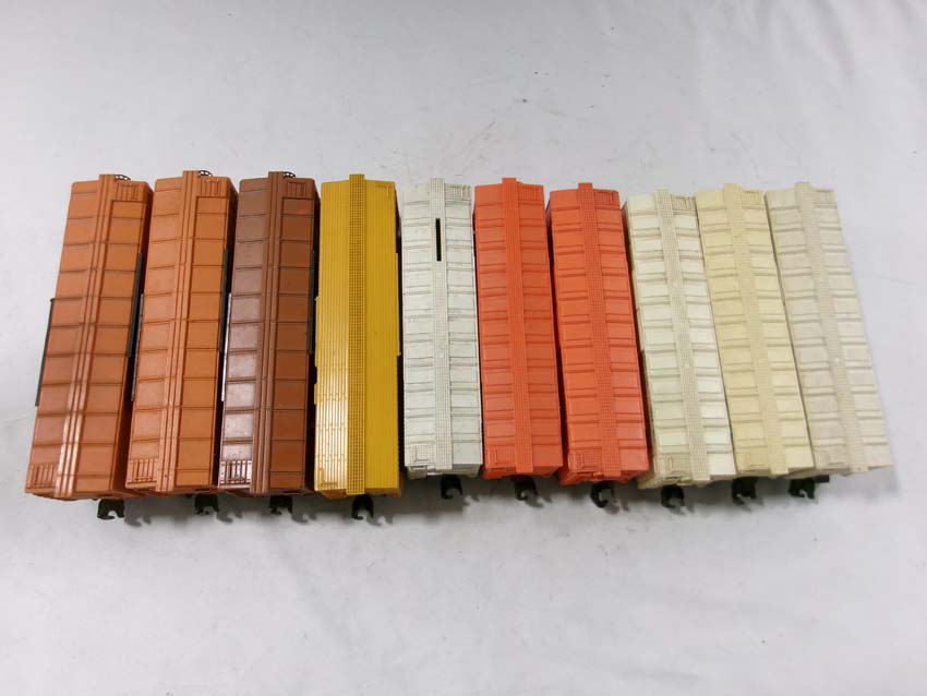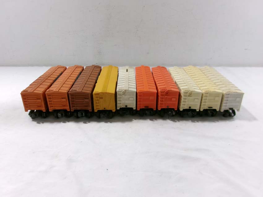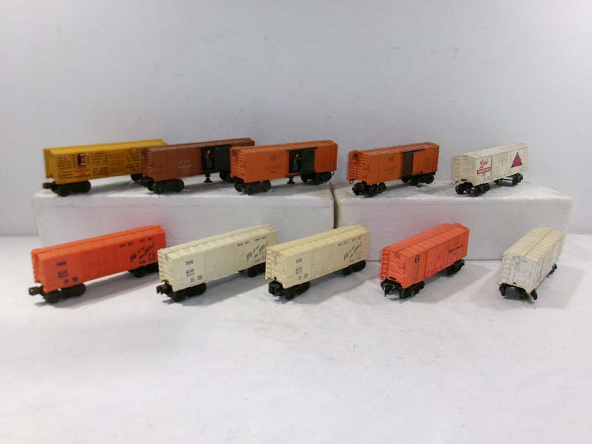 These are ten Assorted Box Cars & Horse Transport Car (two operating) that Lionel made in the 1950s/60s. No Boxes. Examine closely; what is pictured is what you will receive. Please add $45.00 for US-48 Shipping and Insurance (more west of the Mississippi).