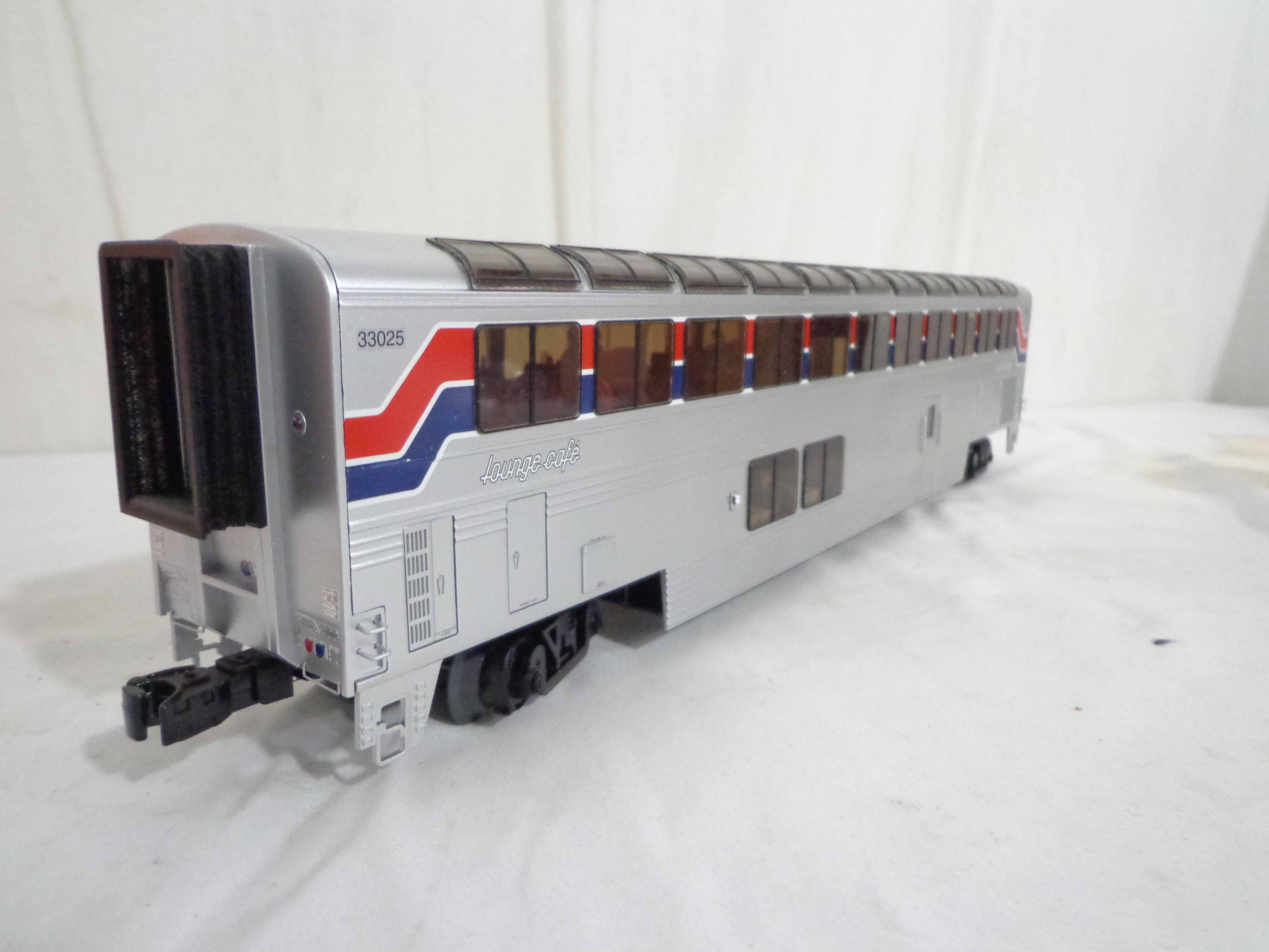 Lionel #15351 Amtrak Superliner Lounge Cafe and #34126 Amtrak Superliner Coach/OB