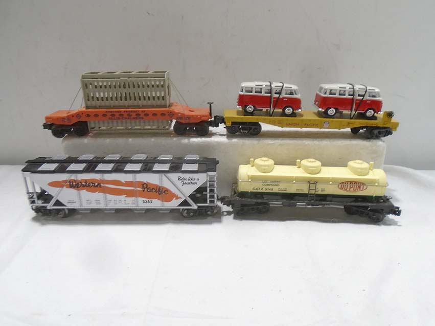 These are twenty Assorted Freight Cars & Cabooses that MTH/Lionel/Menards made a few years ago. Our Opinion is that they are generally in Excellent Condition. No Boxes. Examine closely; what is pictured is what you will receive. Please add $60.00 for US-48 Shipping and Insurance (more west of the Mississippi).