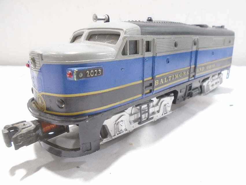 These are the #2033 B&O Alco PA AA Diesel Engines and #1302/1527/3553 Passenger Cars (repainted/postwar) that Lionel made in the early 1950s. One Motor, Magnetraction, and Horn. Our Opinion is that they are generally in Excellent Condition. No Boxes. Examine closely; what is pictured is what you will receive. Please add $50.00 for US-48 Shipping and Insurance (more west of the Mississippi).