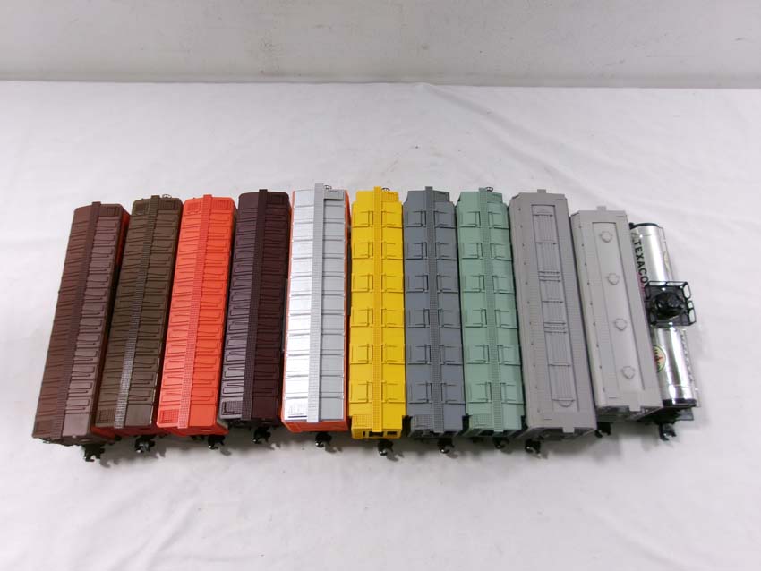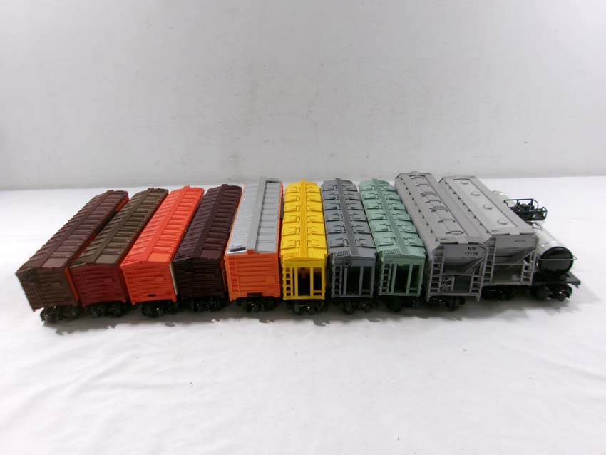 These are twenty-three Assorted Freight Cars that Lionel made a few years ago. Our Opinion is that they are generally in Excellent Condition. No Boxes. Examine closely; what is pictured is what you will receive. Please add $60.00 for US-48 Shipping and Insurance (more west of the Mississippi).