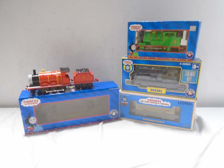 Lionel Thomas & Friends #18733 Percy Engine, #2883 Diesel Engine, #18734 James Engine, and #36031 Troublesome Truck II/OBs
