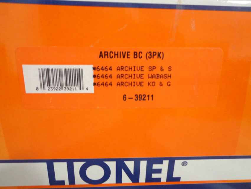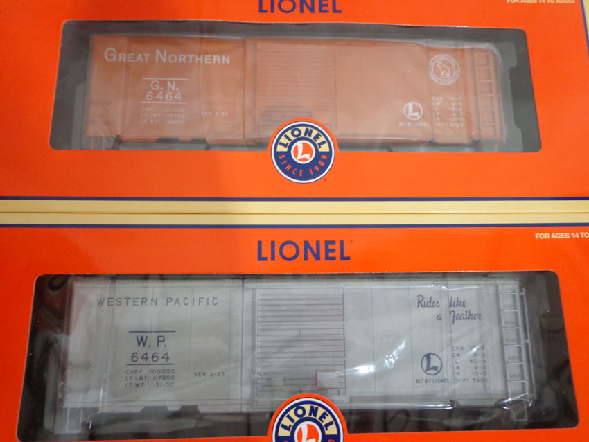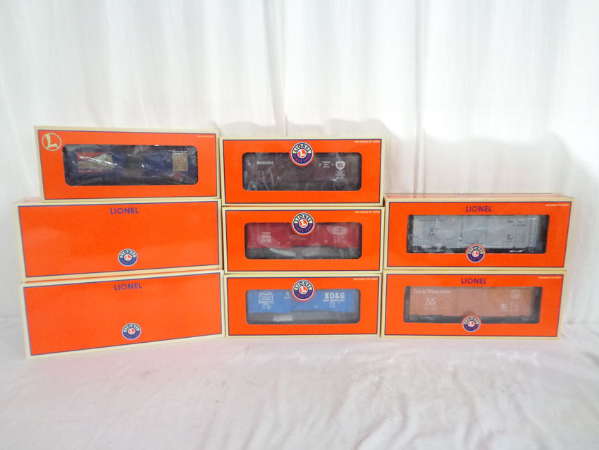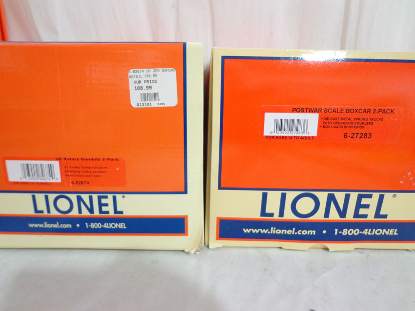 These are the #39211 6464 Archive Box Cars Set of 3, the #27283 Postwar Box Cars Set of 2, the #82674 Union Pacific Rotary Gondolas Set of 2, and the #19978 Railroader Club Box Car that Lionel made a few years ago. Our Opinion is that they are generally in Mint Condition. Original Boxes. All Original in our Opinion. Please add $50.00 for US-48 Shipping and Insurance (more west of the Mississippi).