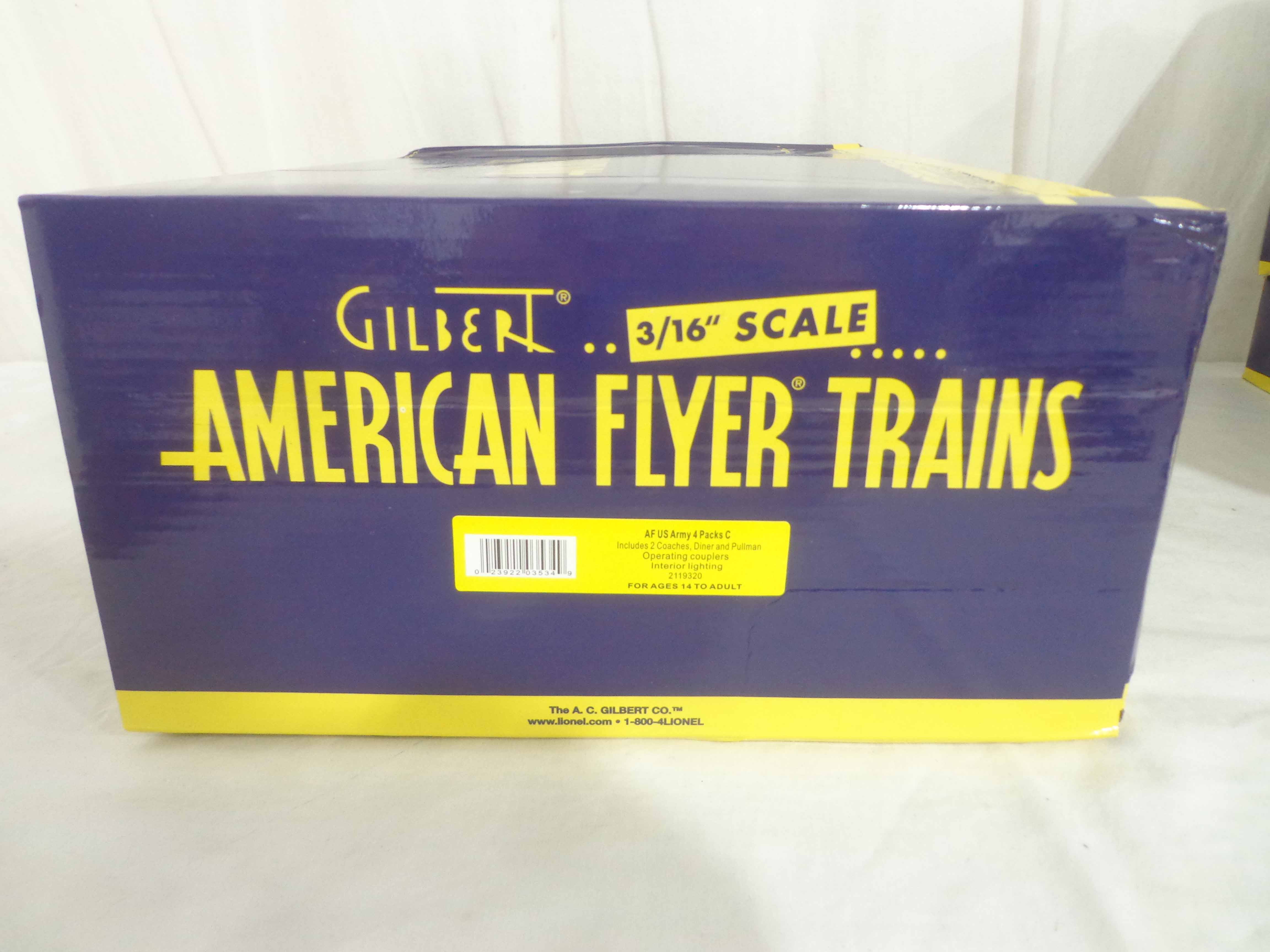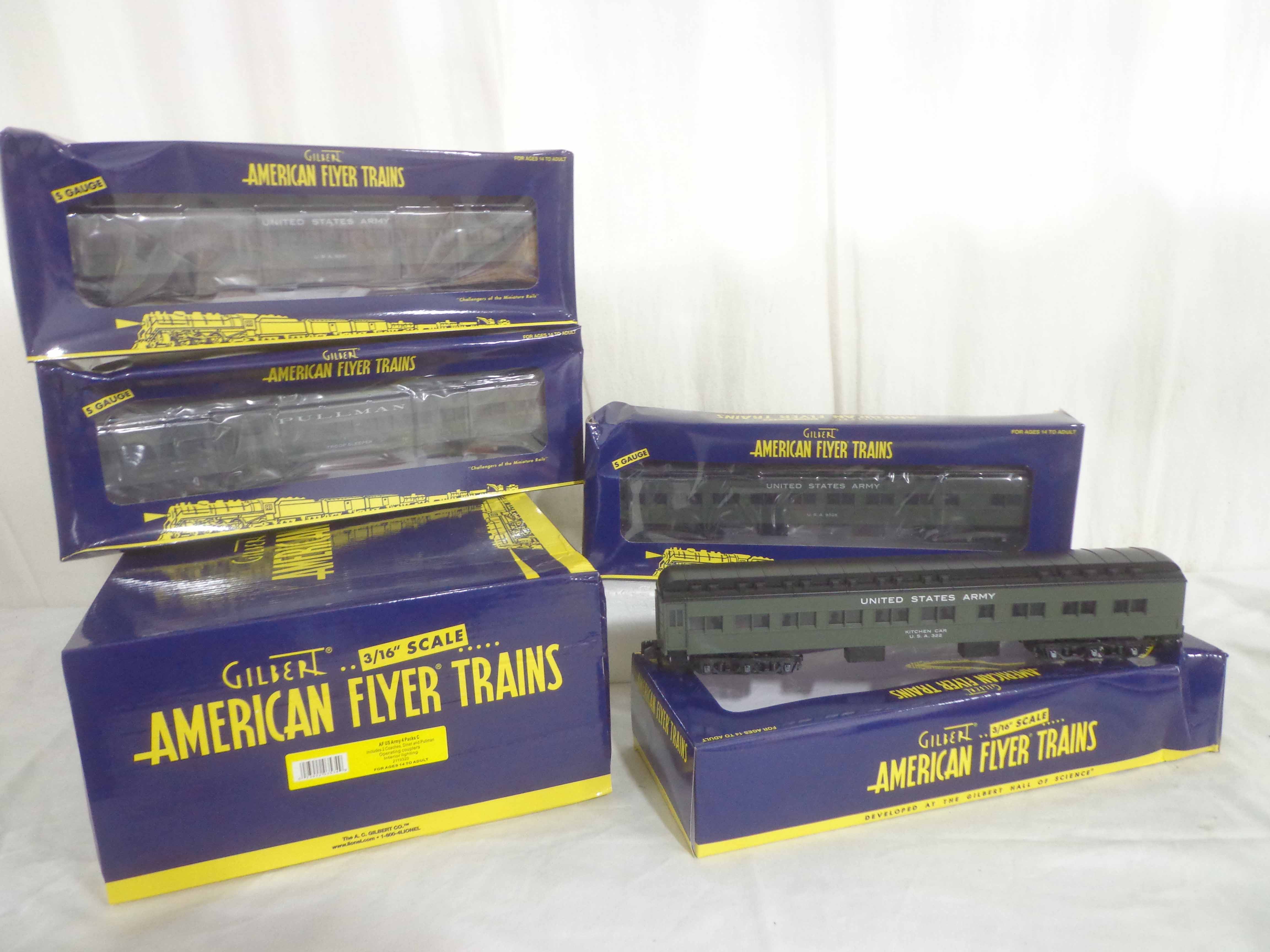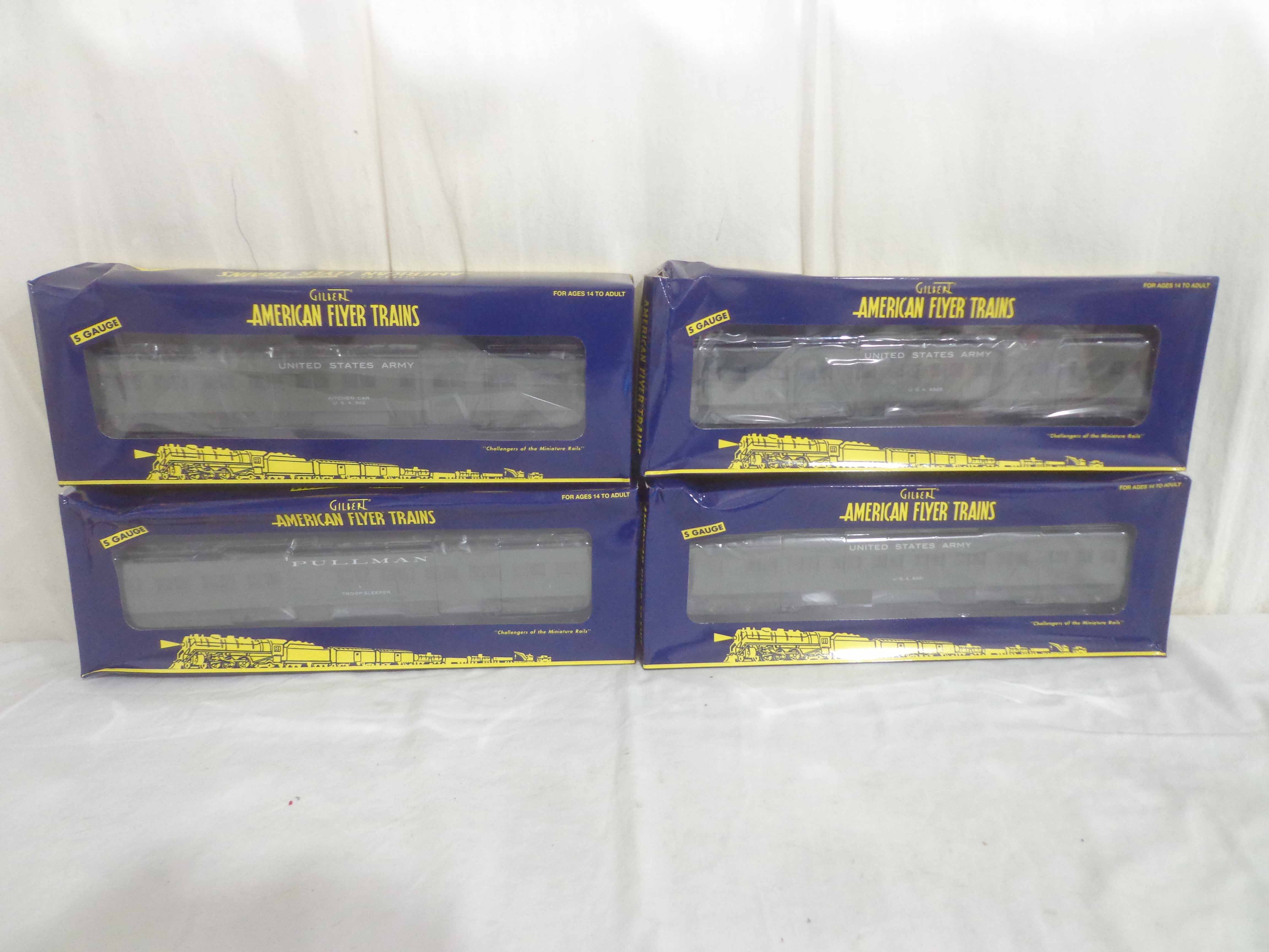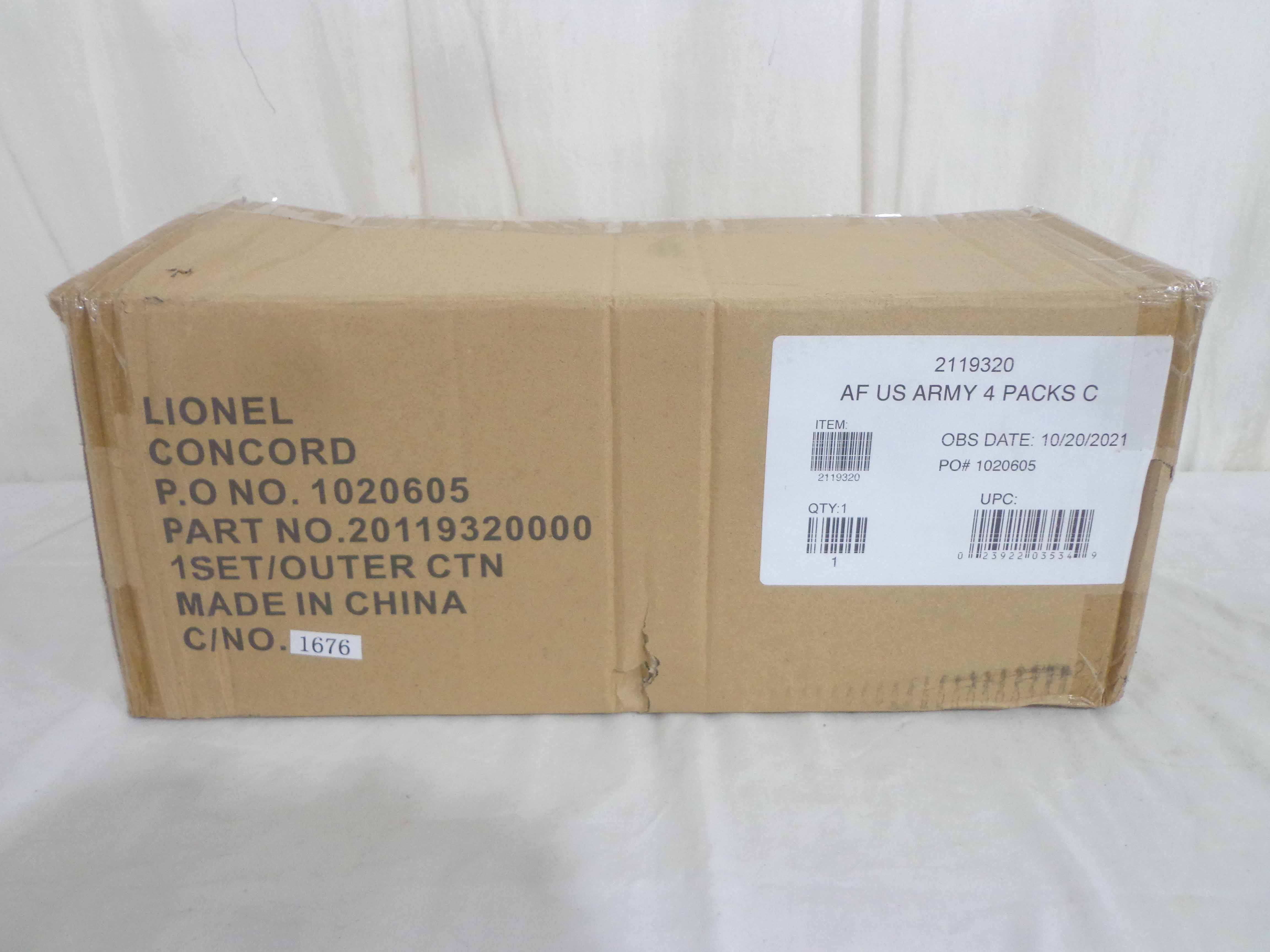 This is the #2119320 US Army Passenger Cars Set of 4 that Lionel/AF made is S Gauge. Original Boxes. Examine closely; what is pictured is what you will receive. Please add $35.00 for US-48 Shipping and Insurance (more west of the Mississippi).