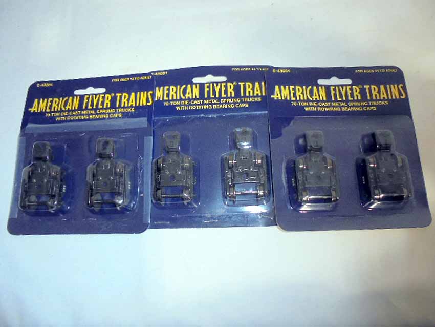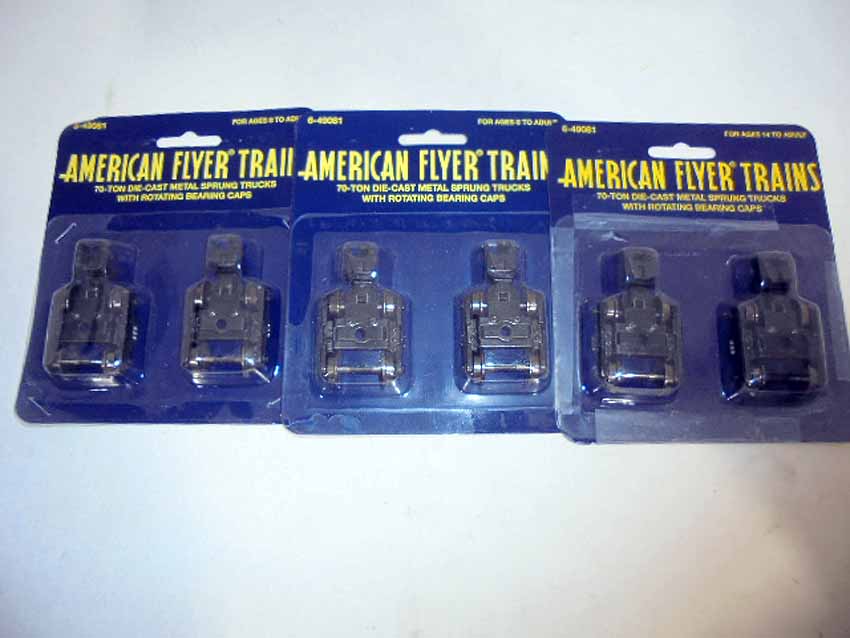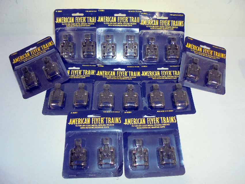 These are ten #49081 70 Ton Die-Cast Metal Sprung Trucks w/Rotating Bearing Caps that Lionel/AF made in the recent past. Bliaster Packs (some taped/stapled). Examine very closely; what is pictured is what you will receive. Please add $40.00 for US-48 Shipping and Insurance (more west of the Mississippi).