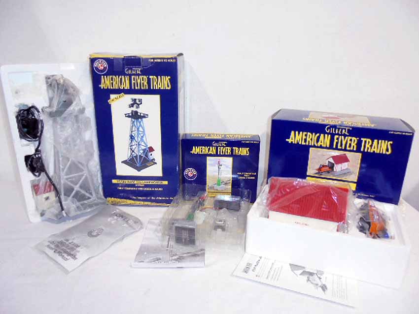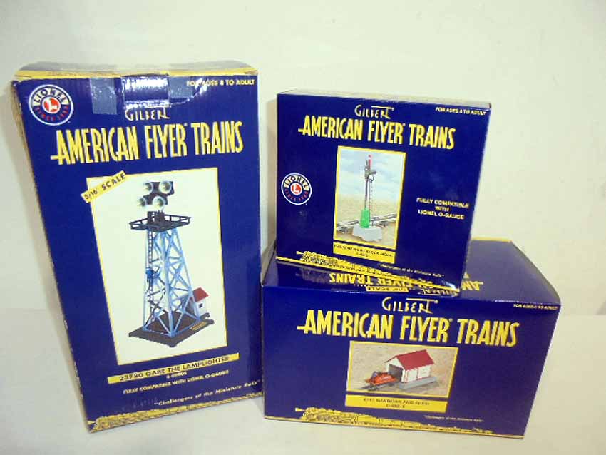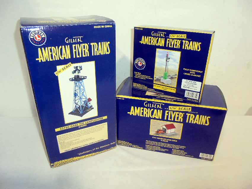 These are the #49805 23780 Gabe the Lamplighter, #49815 741 Hand Car & Shed, and #49835 Semaphore Block Signal that Lionel/American Flyer recently made in S Gauge. Original Boxes. Examine closely; what is pictured is what you will receive. Please add $40.00 for US-48 Shipping and Insurance (more west of the Mississippi).
