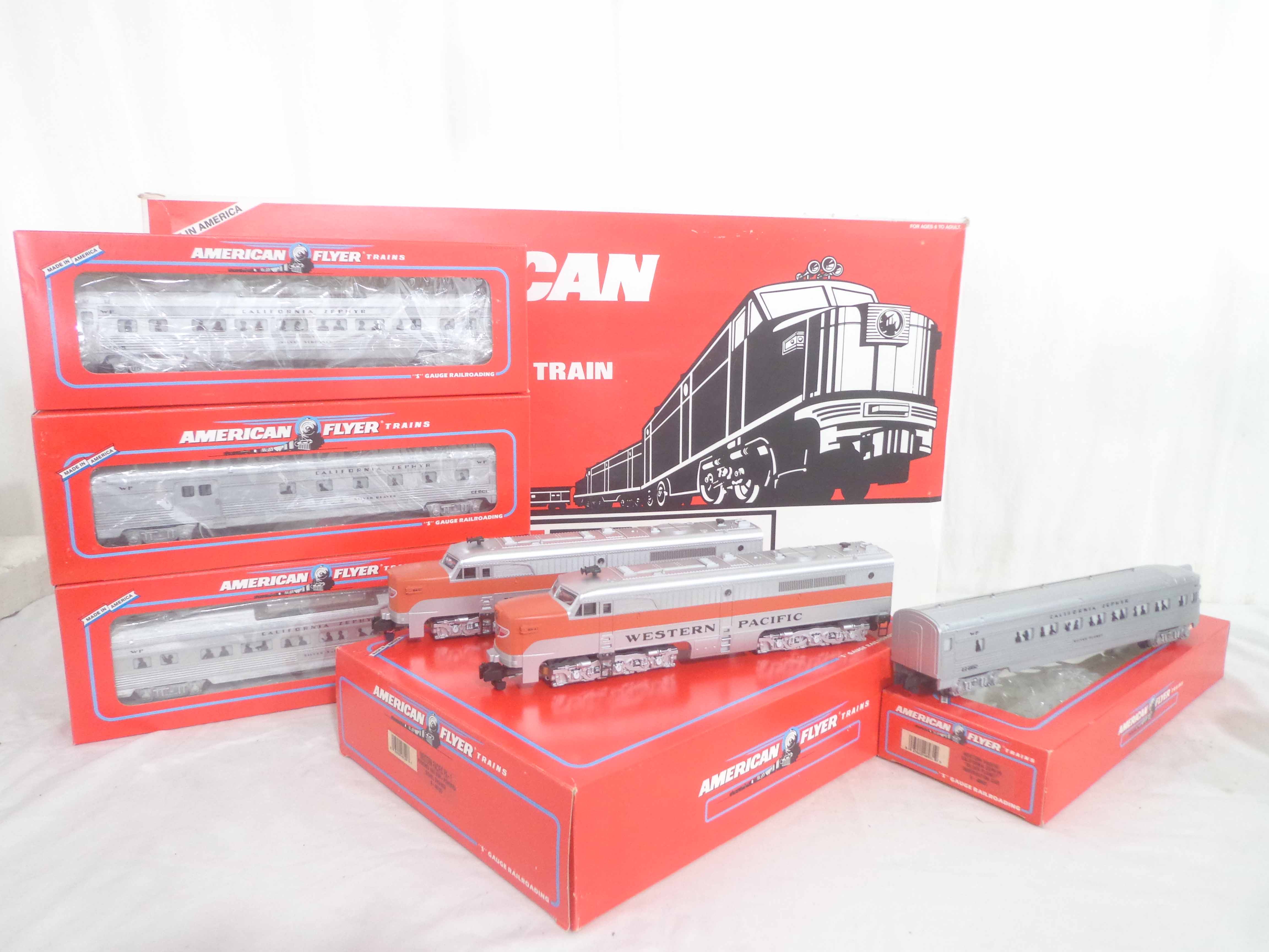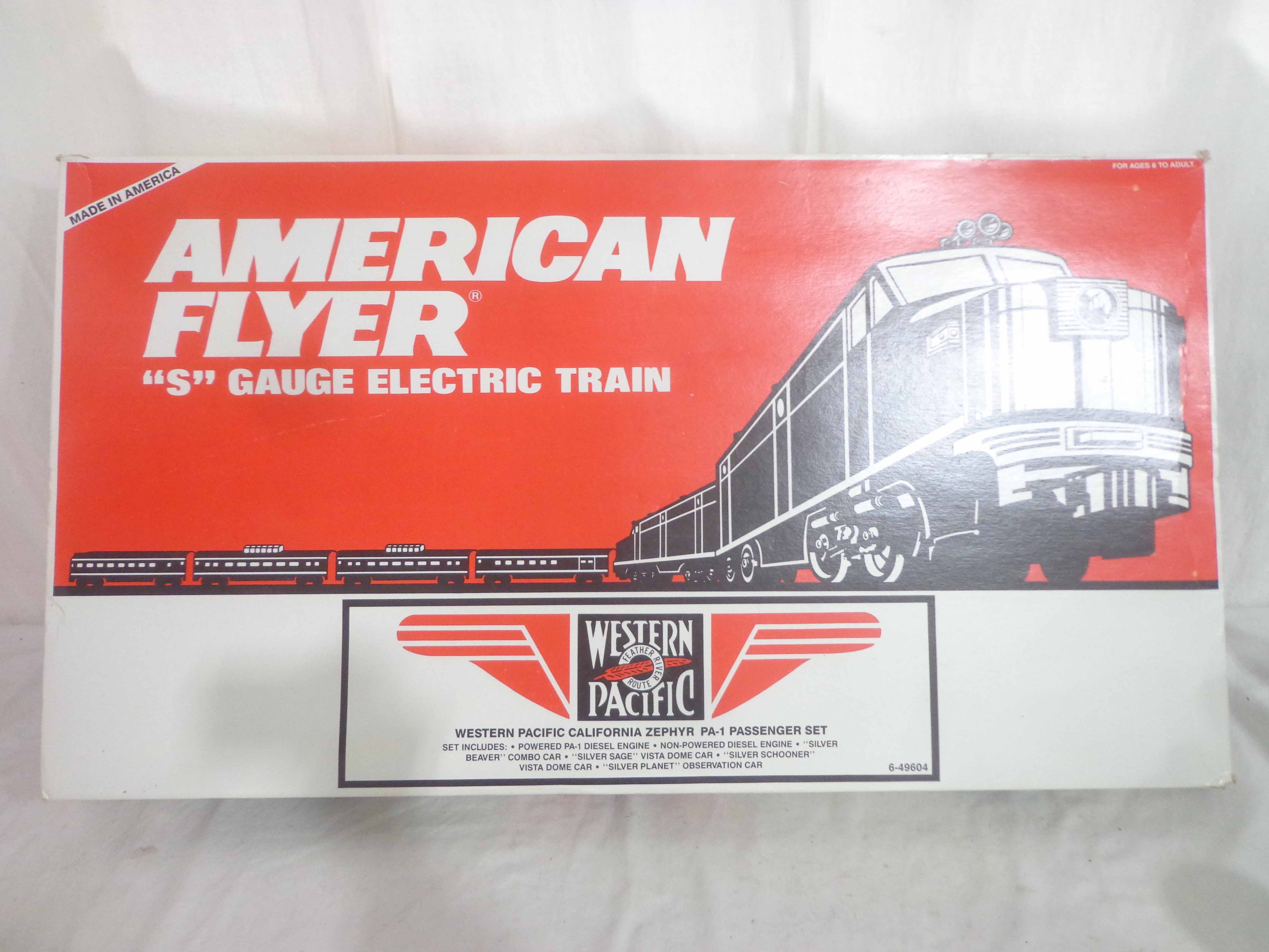 This is the #49604 Western Pacific California Zephyr PA-1 Passenger Train Set that Lionel made in the 1990s in their American Flyer S Gauge Line. Original Box. All Original in our Opinion. Please add $50.00 for US-48 Shipping and Insurance (more west of the Mississippi).