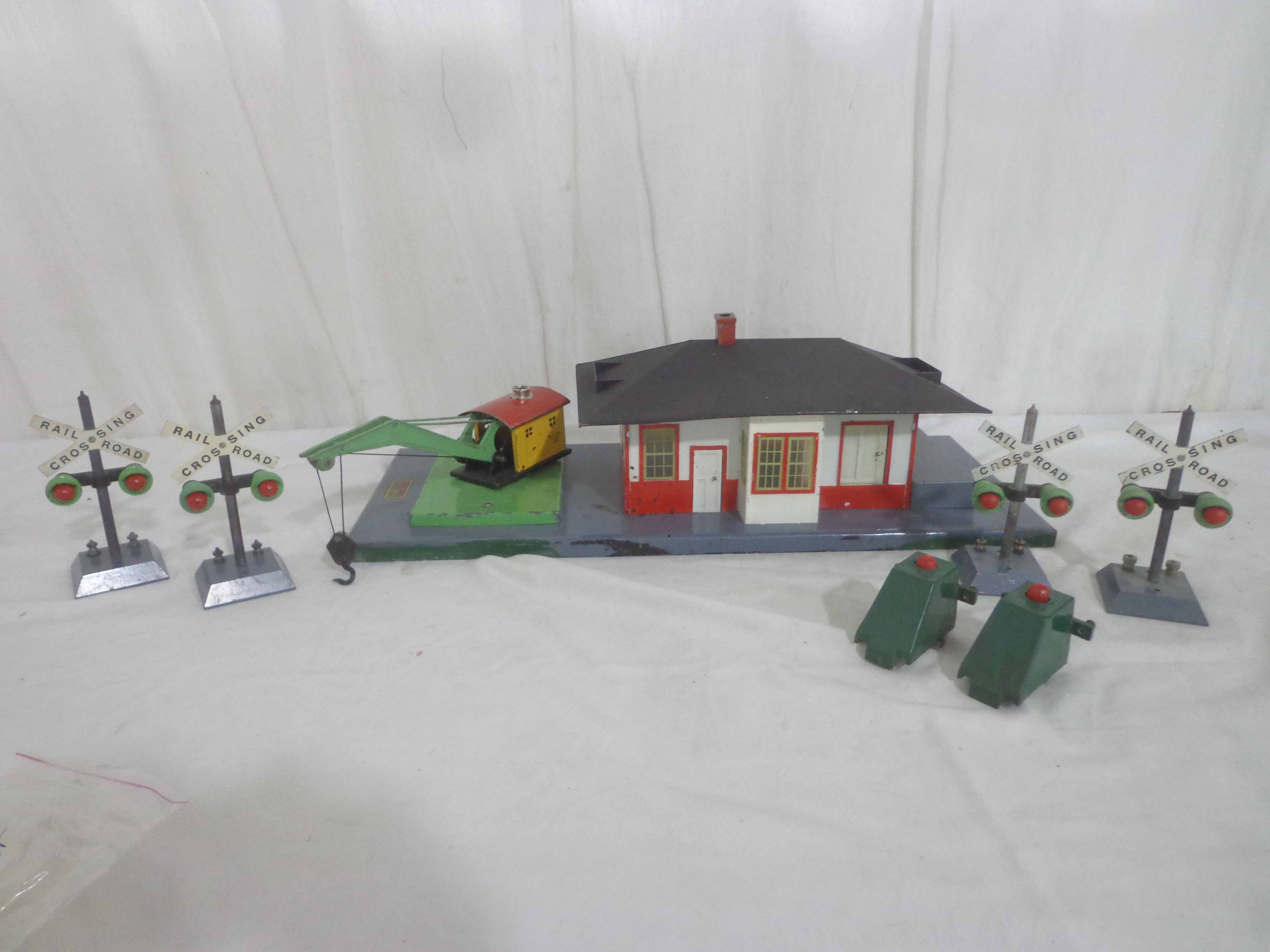 These are the #612 Freight Station with Crane and six Accessories that American Flyer made in S Gauge in the past. No Boxes. Examine closely; what is pictured is what you will receive. Please add $40.00 for US-48 Shipping and Insurance (more west of the Mississippi). |