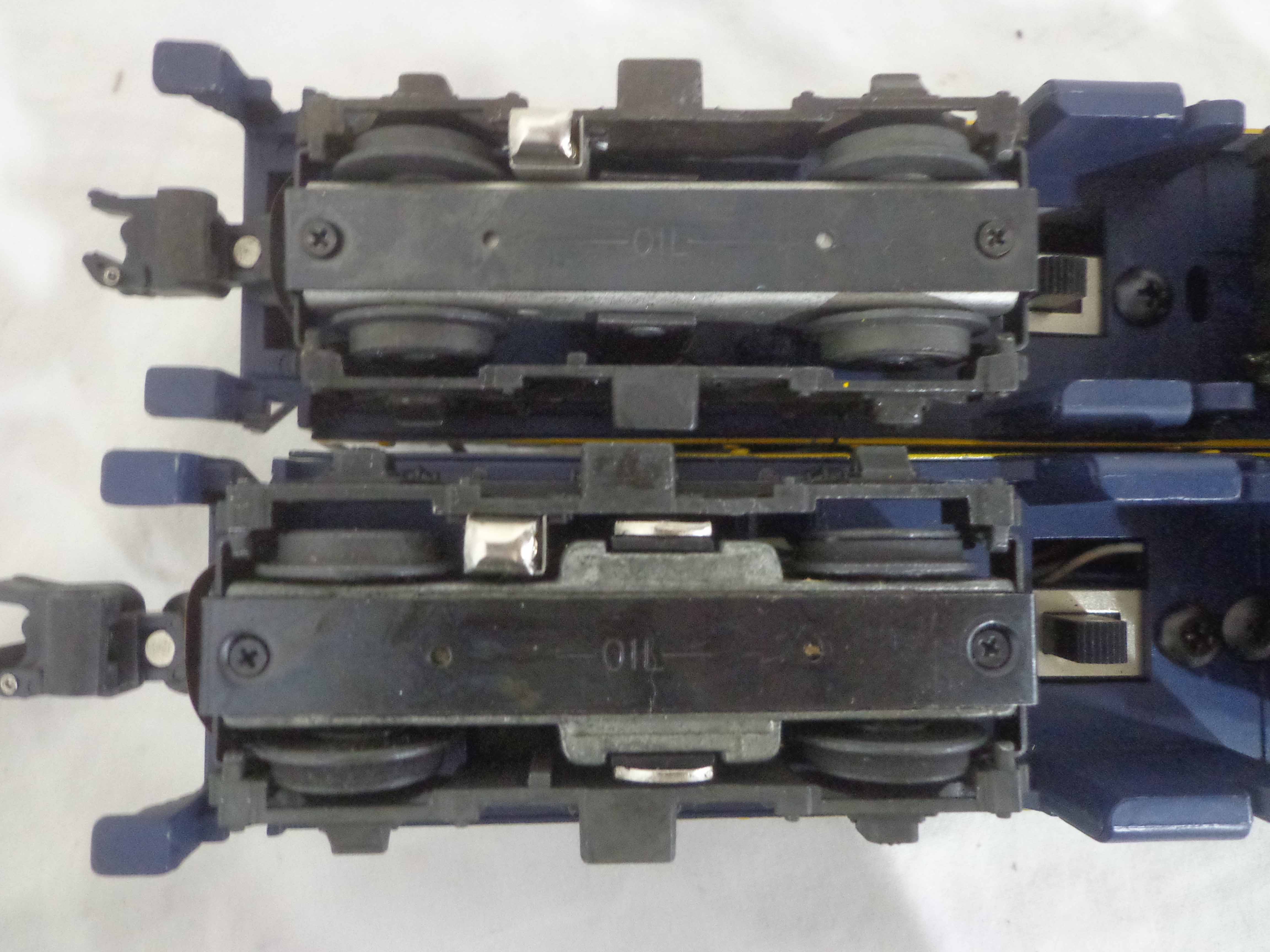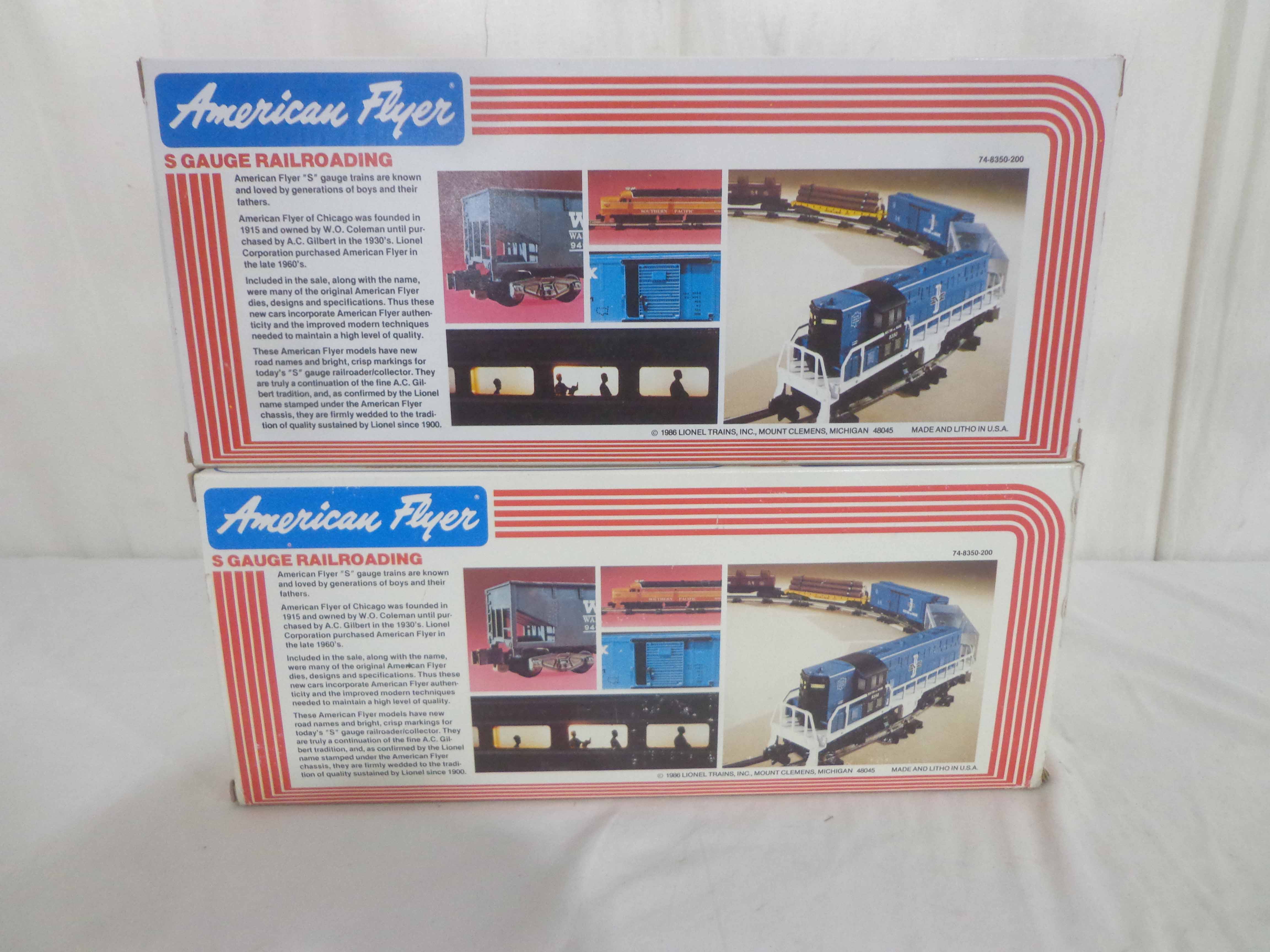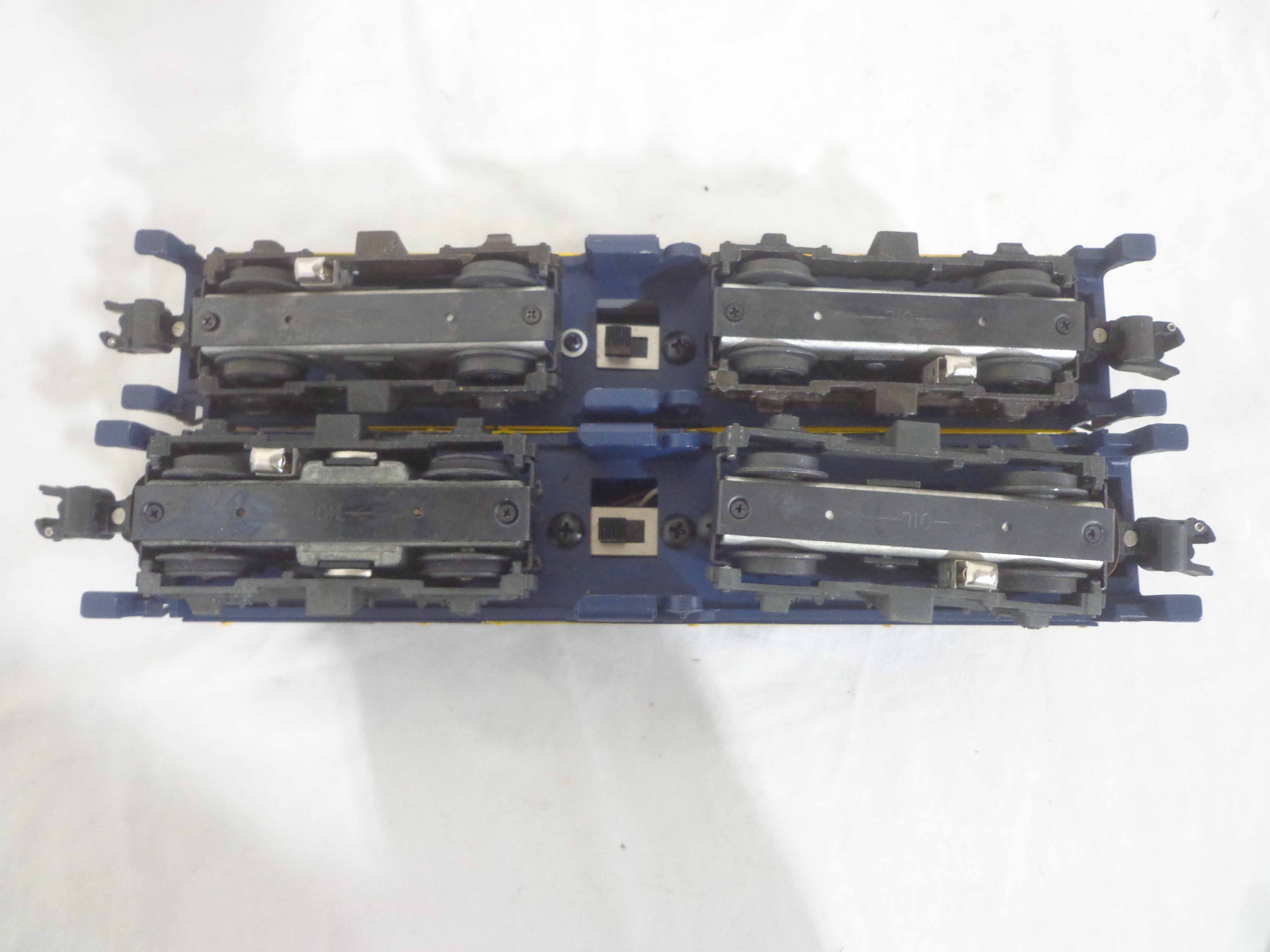 These are the #8651/48003 Santa FPowered/Non-Powered Diesels that American Flyer/Lionel made in S Gauge a few years ago. Our Opinion is that they are generally in Like New or Better Condition. Original Boxes. Examine closely; what is pictured is what you will receive. All Original in our Opinion. Please add $35.00 for US-48 Shipping and Insurance. |