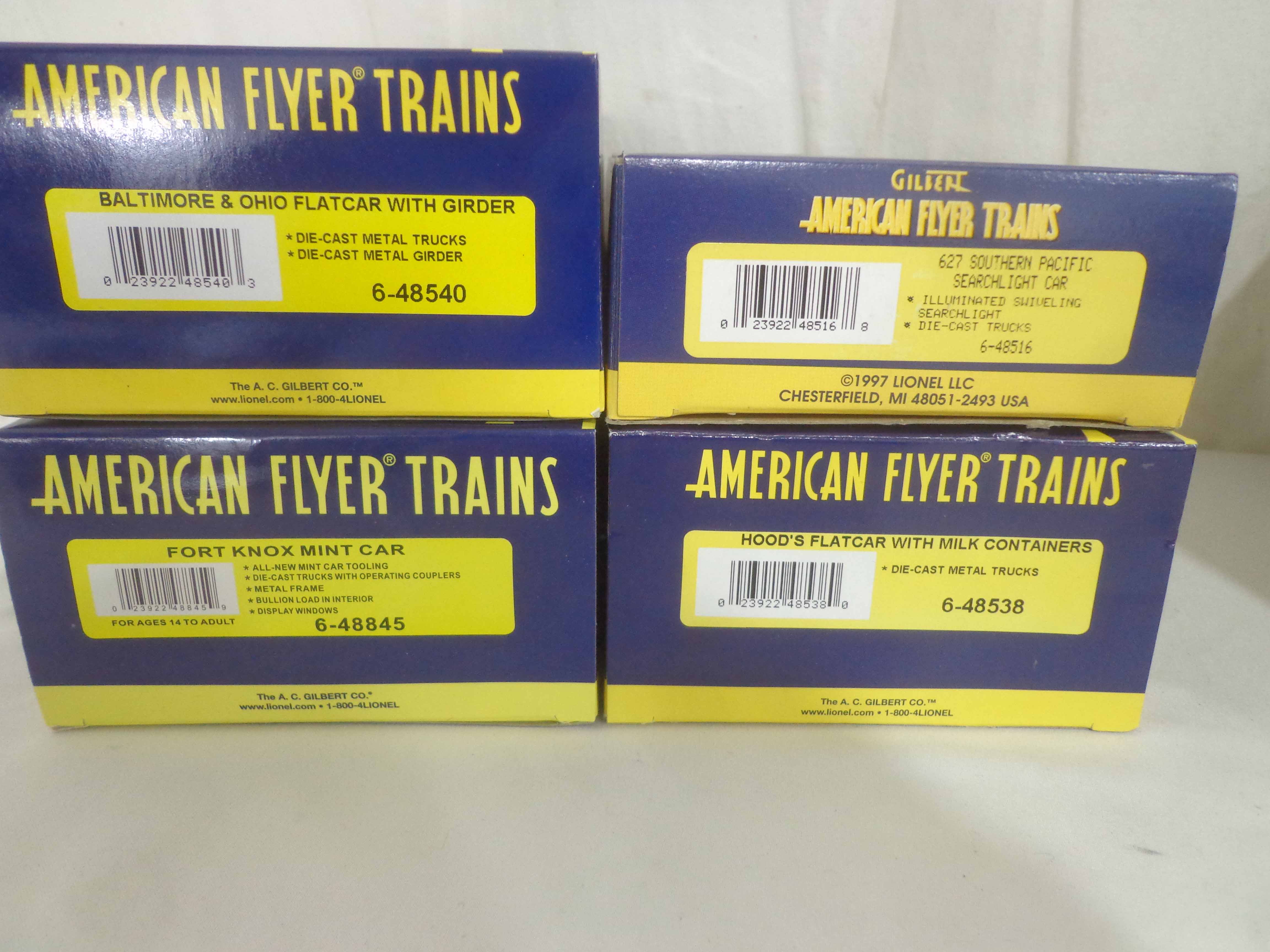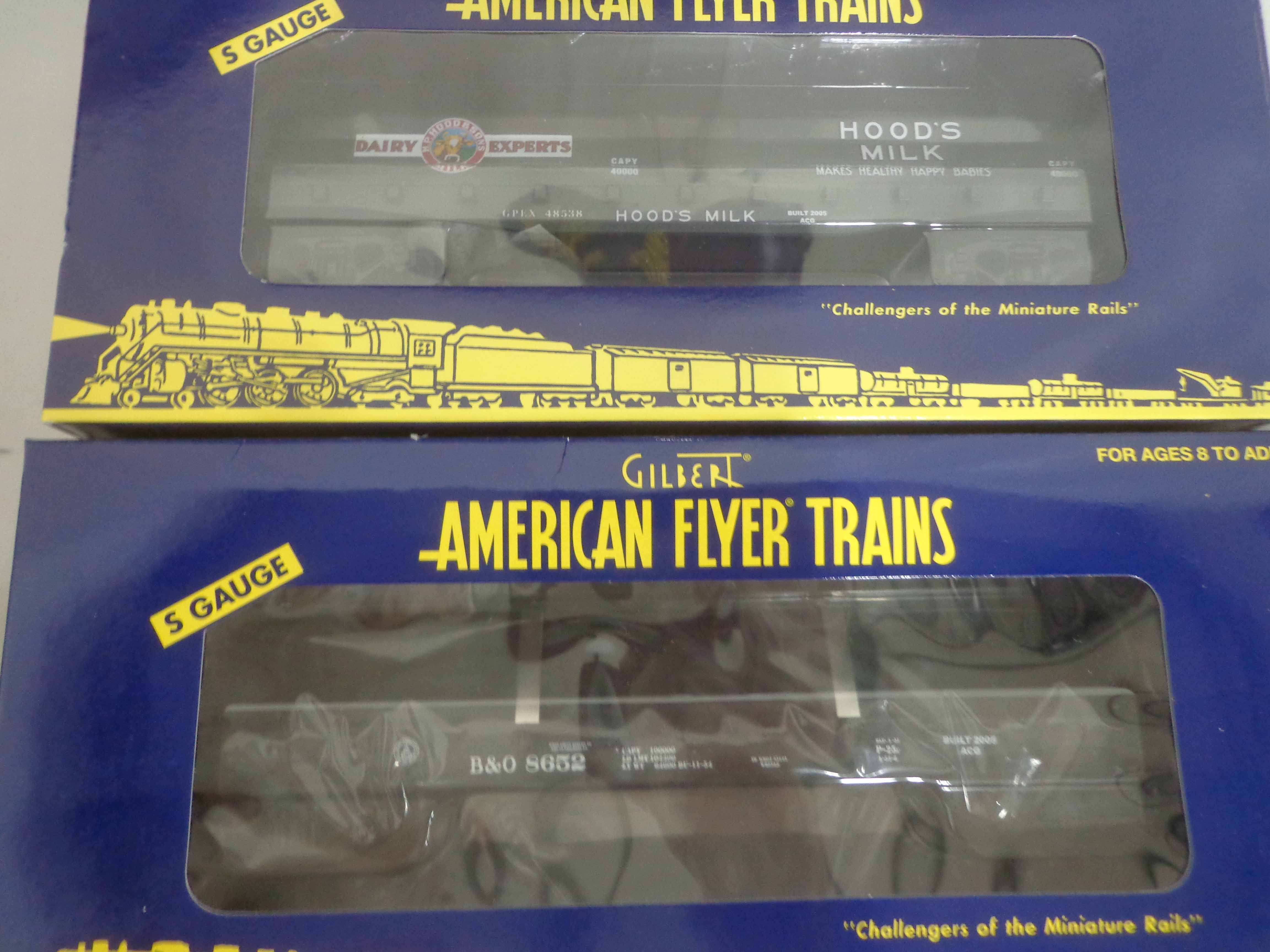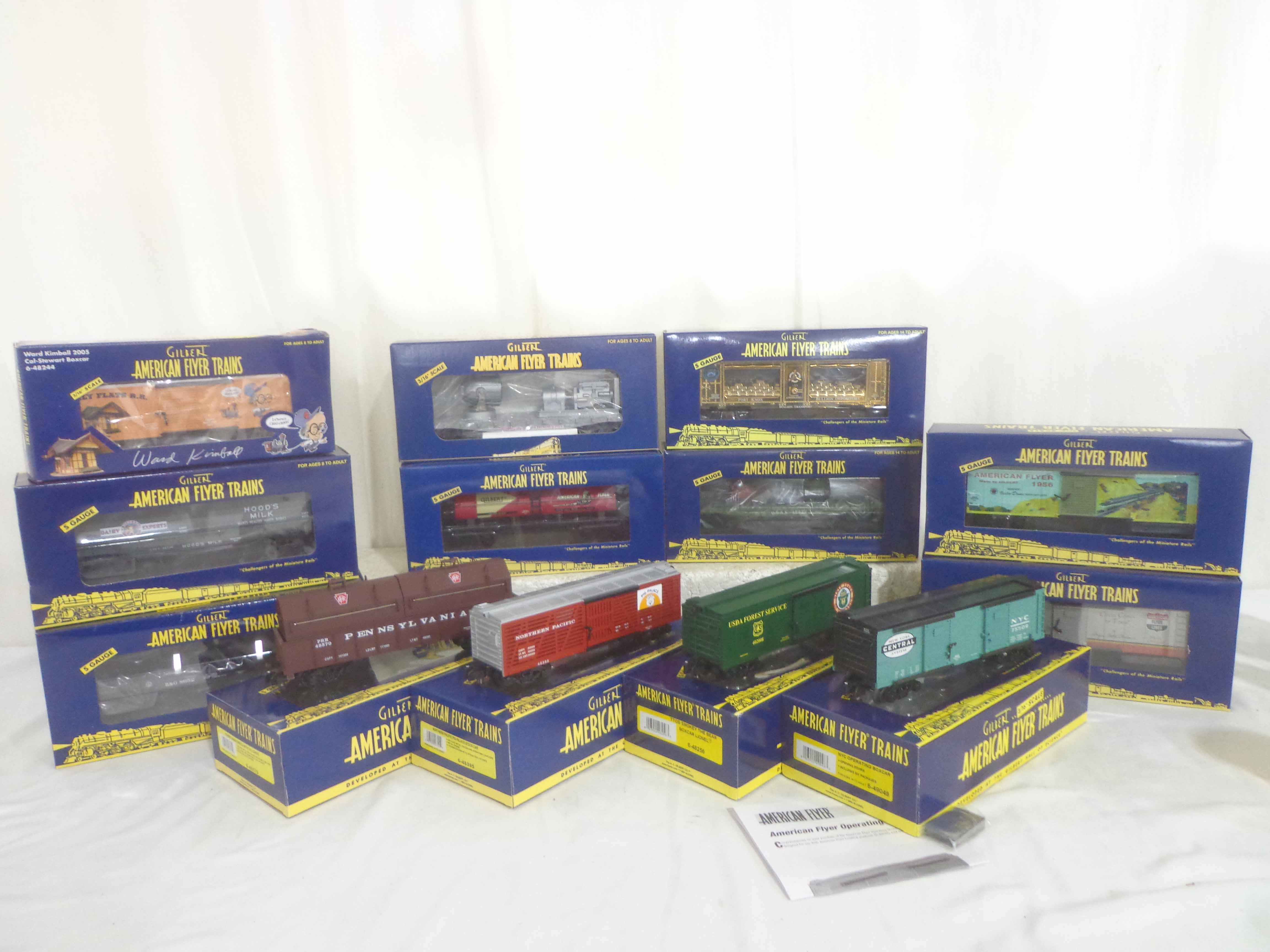 These are thirteen Assorted Freight Cars that Lionel/American Flyer made in S Gauge in the recent past. Original Boxes. Examine very closely; what is pictured is what you will receive. Please add $50.00 for US-48 Shipping and Insurance (more west of the Mississippi). |