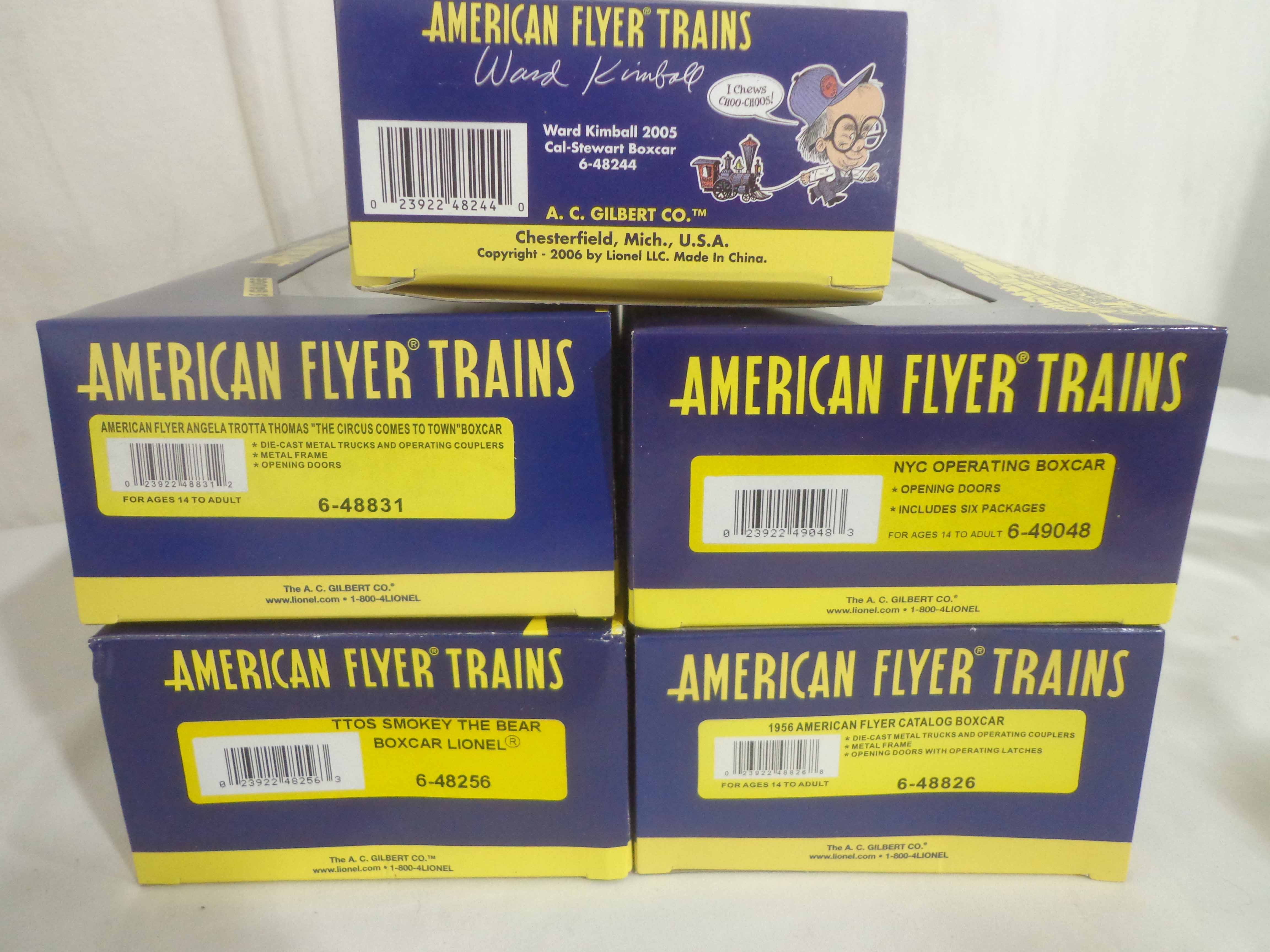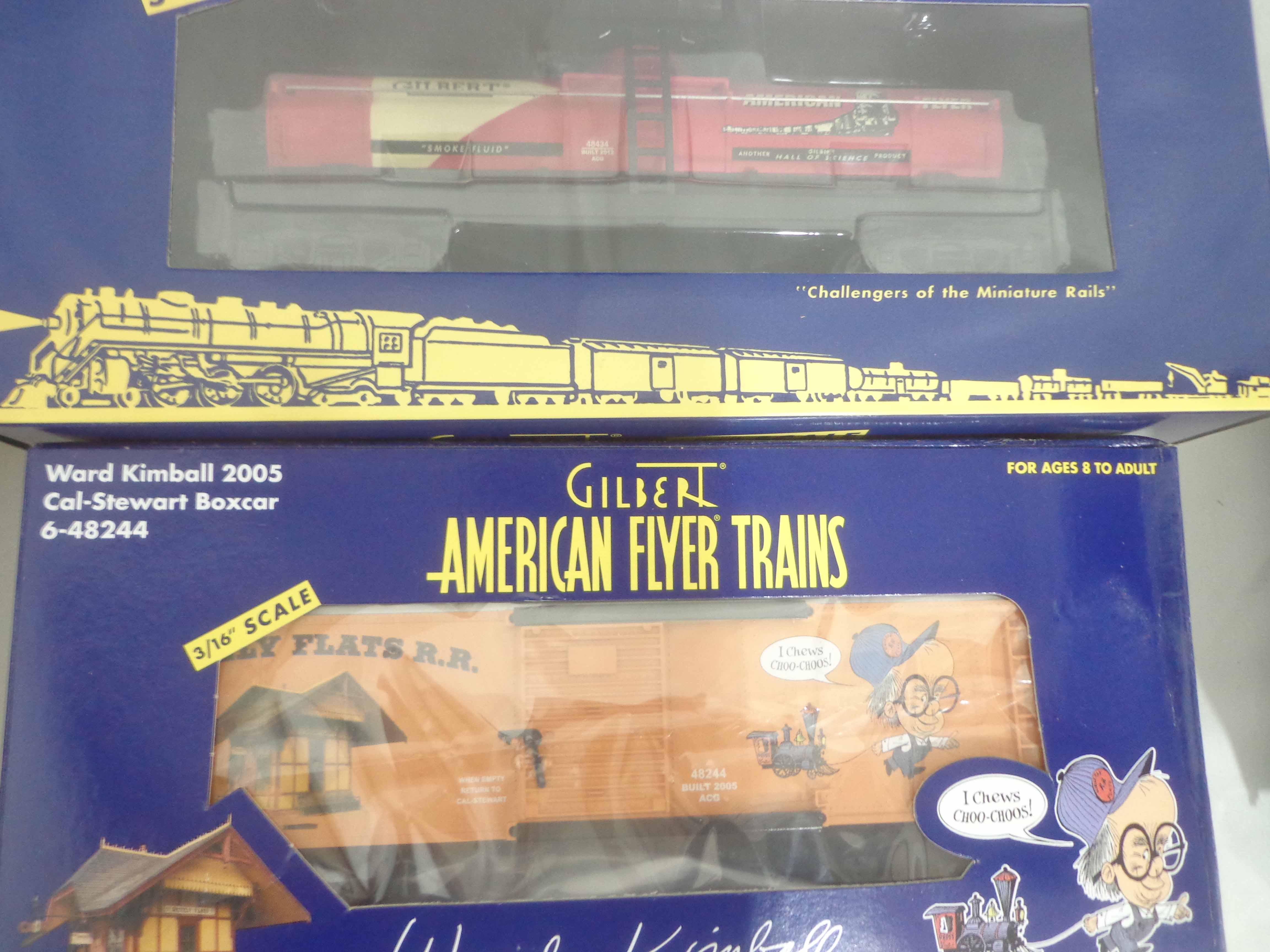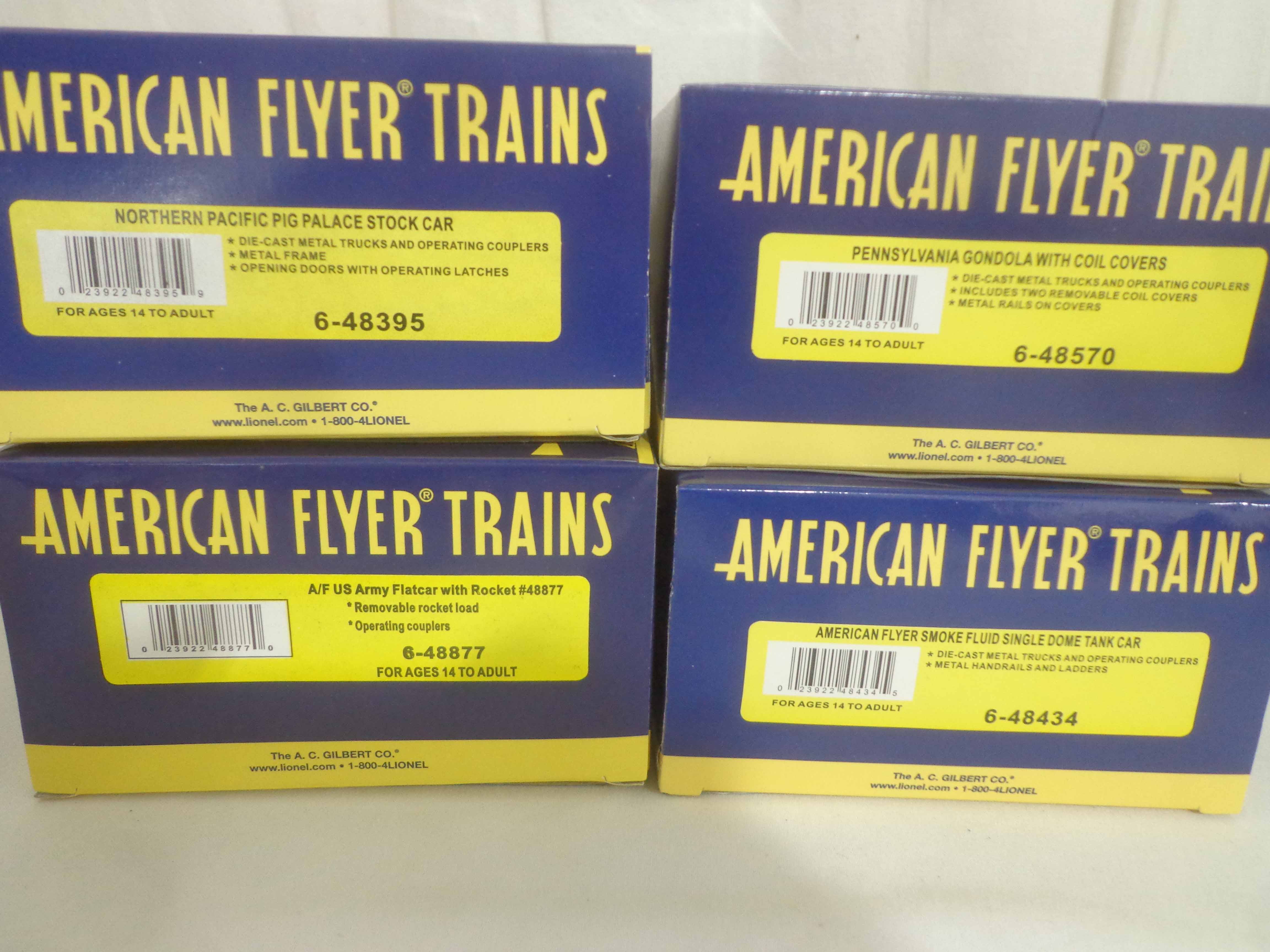These are thirteen Assorted Freight Cars that Lionel/American Flyer made in S Gauge in the recent past. Original Boxes. Examine very closely; what is pictured is what you will receive. Please add $50.00 for US-48 Shipping and Insurance (more west of the Mississippi). |