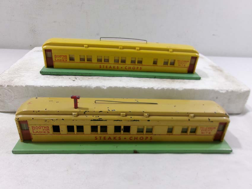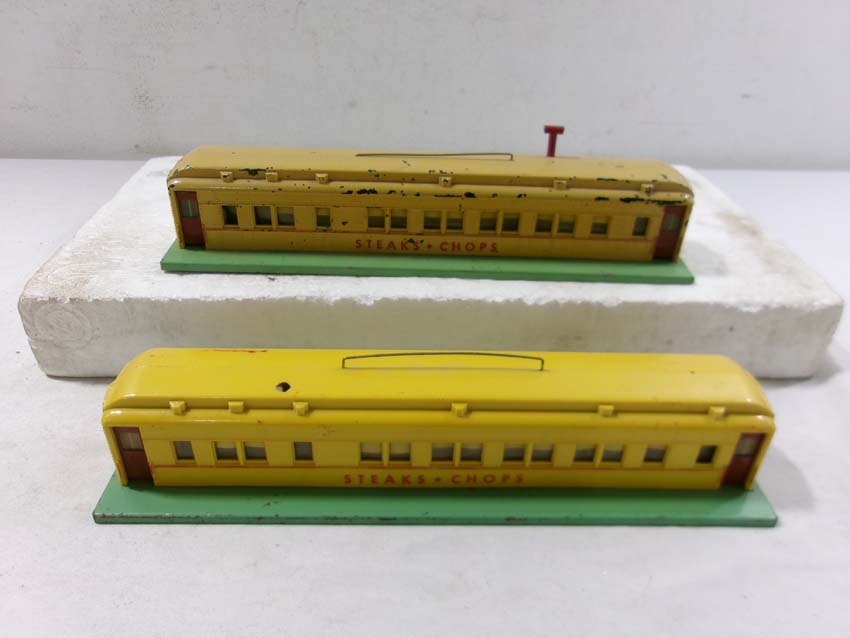 These are the #785 Operating Coal Loader, #585 Tool Shed, two #582 Blinking Crossing Signals, and two #767 Roadside Diners that AF made in S Gauge in the 1950s. Original Box. Examine closely; what is pictured is what you will receive. Please add $45.00 for US-48 Shipping and Insurance (more west of the Mississippi).
