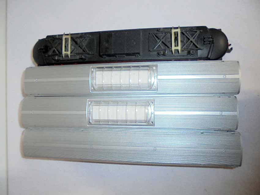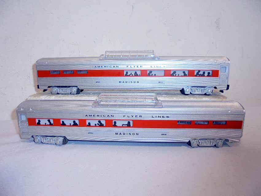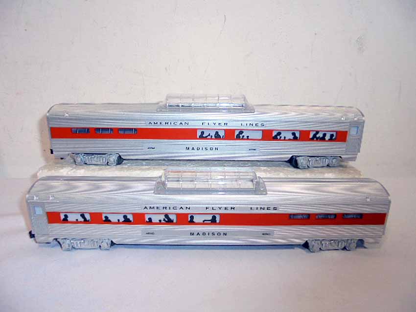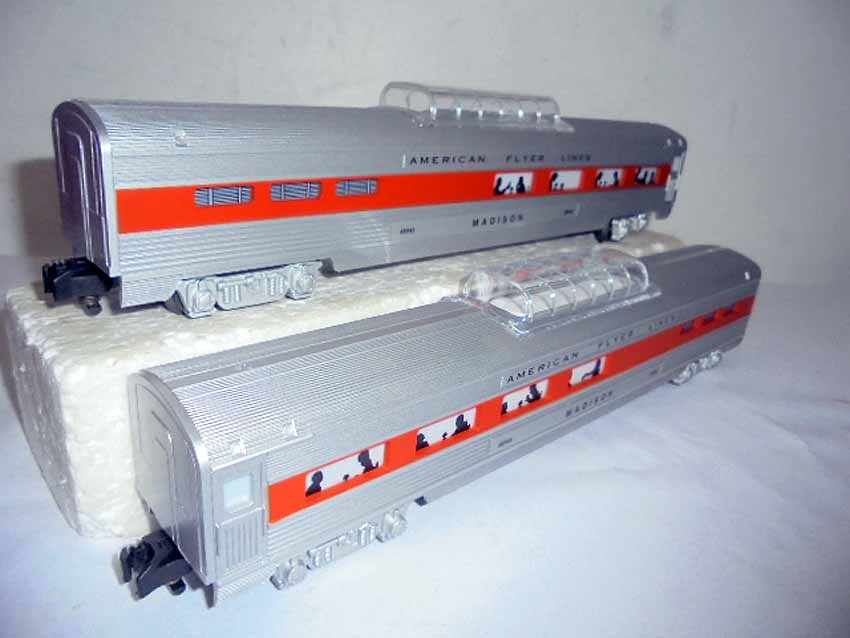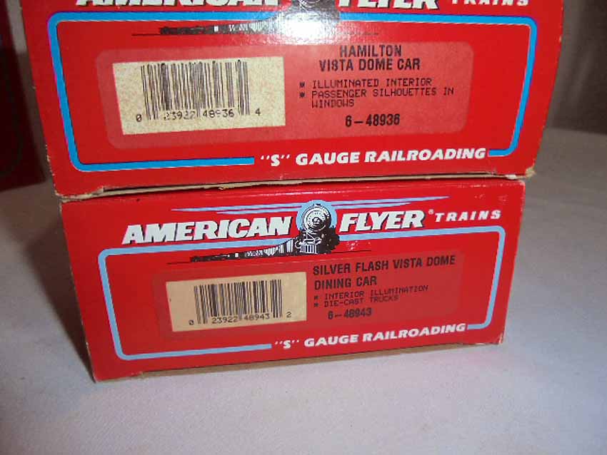 These are the #8008 NH EP-5 Electric Engine, #48938 NH Vista Dome Car, #48943 NH Vista Dome Dining Car, and #49605 NH 3-Car Passenger Set that American Flyer made in S Gauge some time in the recent past. Three Original Boxes. Examine closely; what is pictured is what you will receive. Please add $40.00 for US-48 Shipping and Insurance (more west of the Mississippi).
