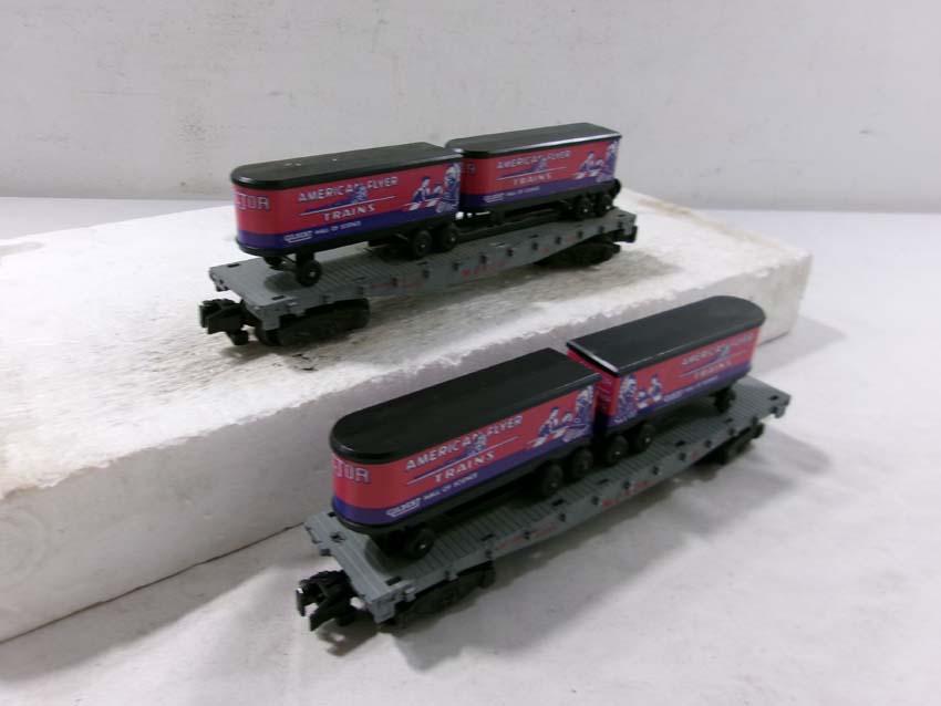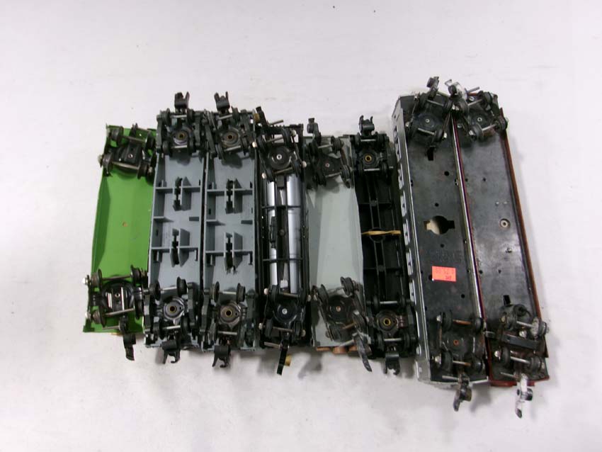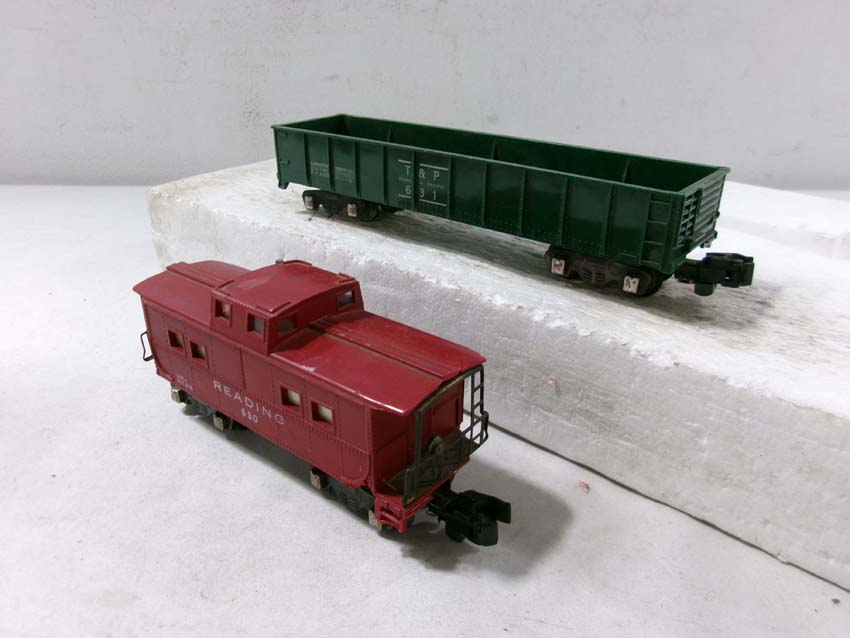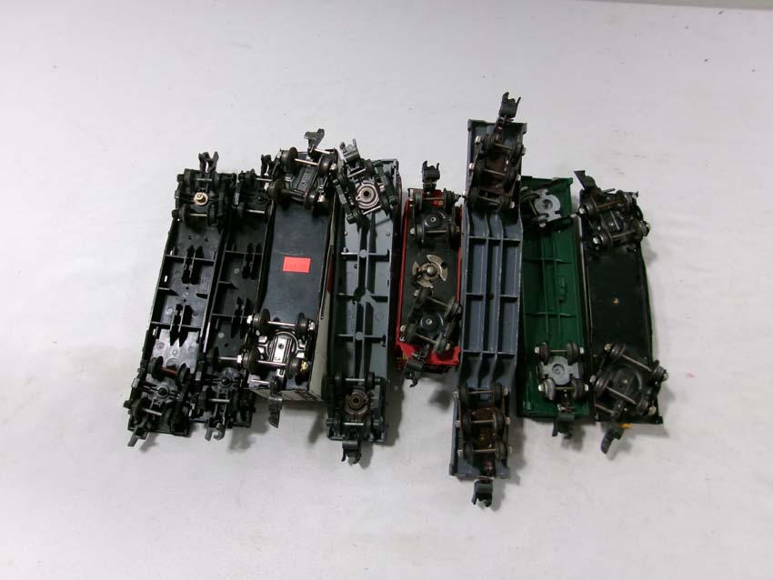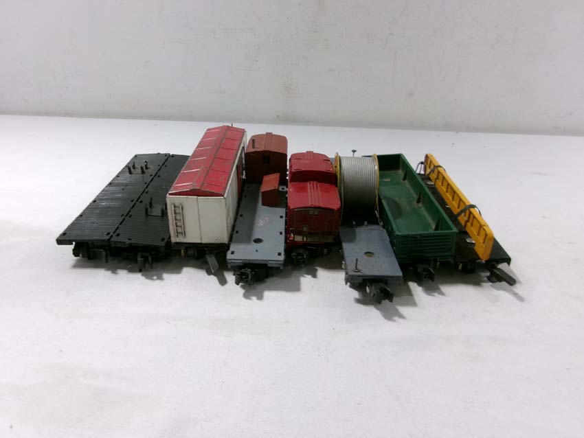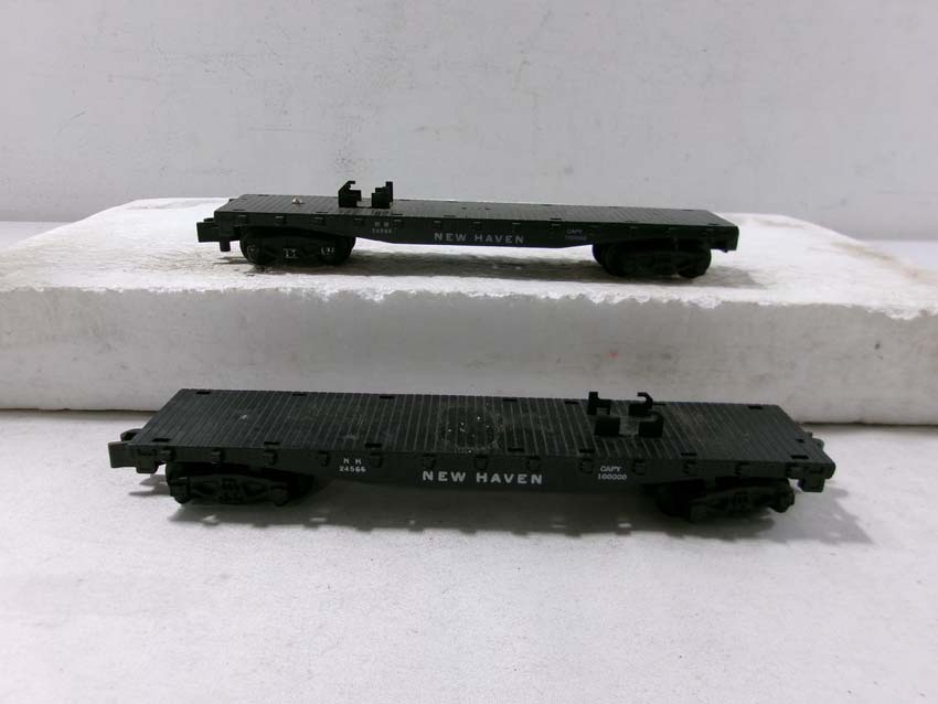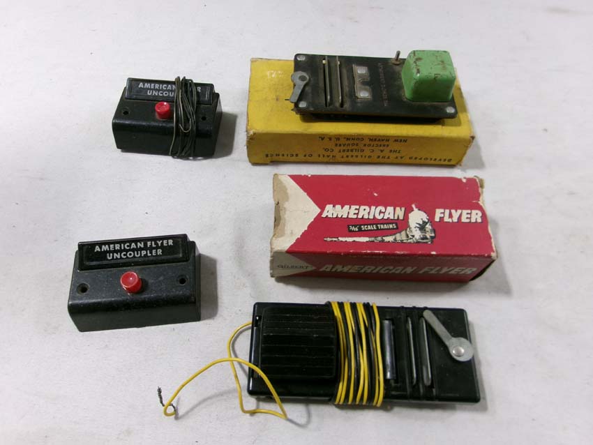 These are the American Flyer S Gauge #735 NH Operating Coach, #655 Silver Bullet Coach, fourteen Assorted Freight Cars (24550s), and two Uncouplers. Two Original Boxes. Examine very closely; what is pictured is what you will receive. Please add $50.00 for US-48 Shipping and Insurance (more west of the Mississippi).