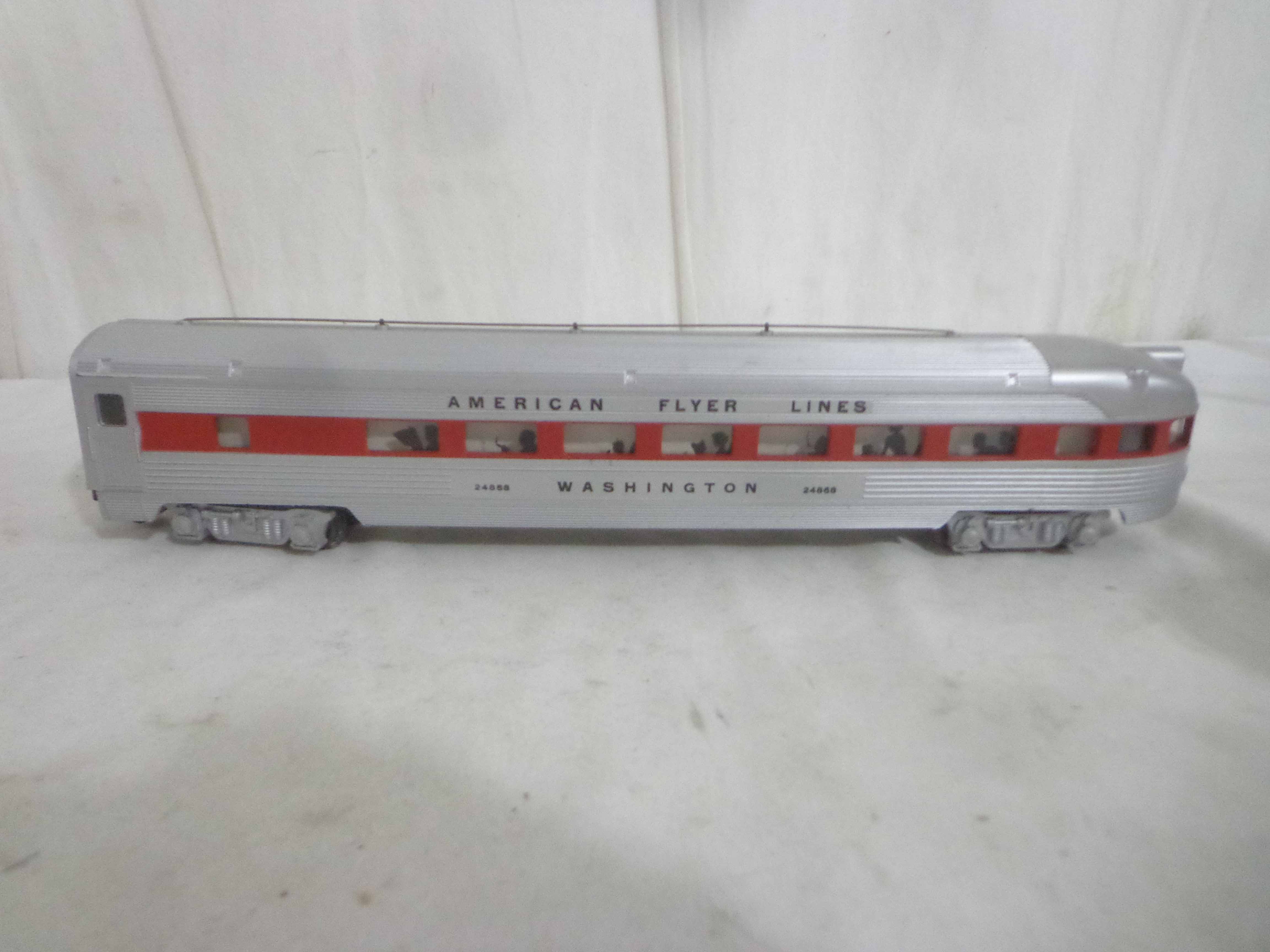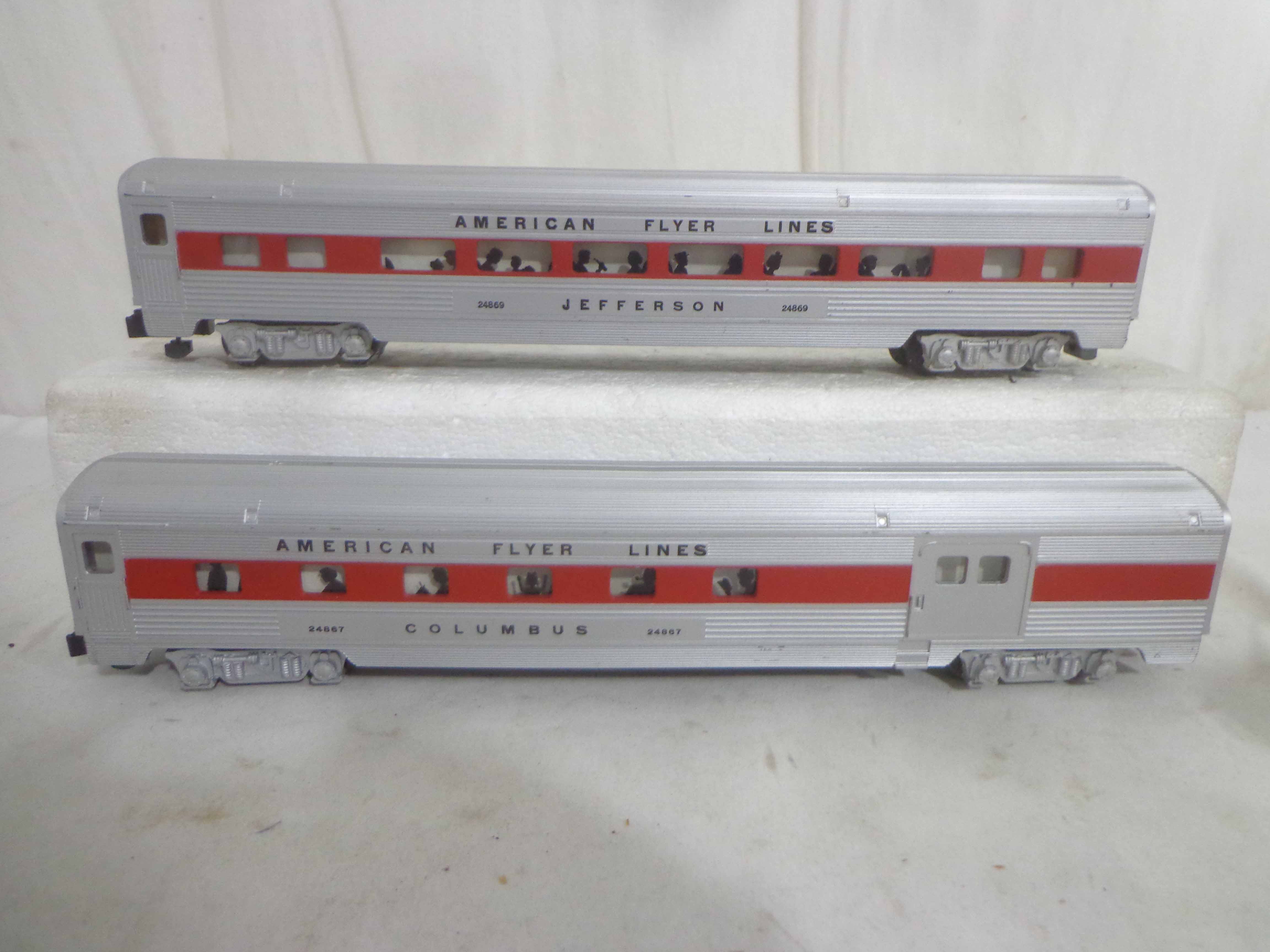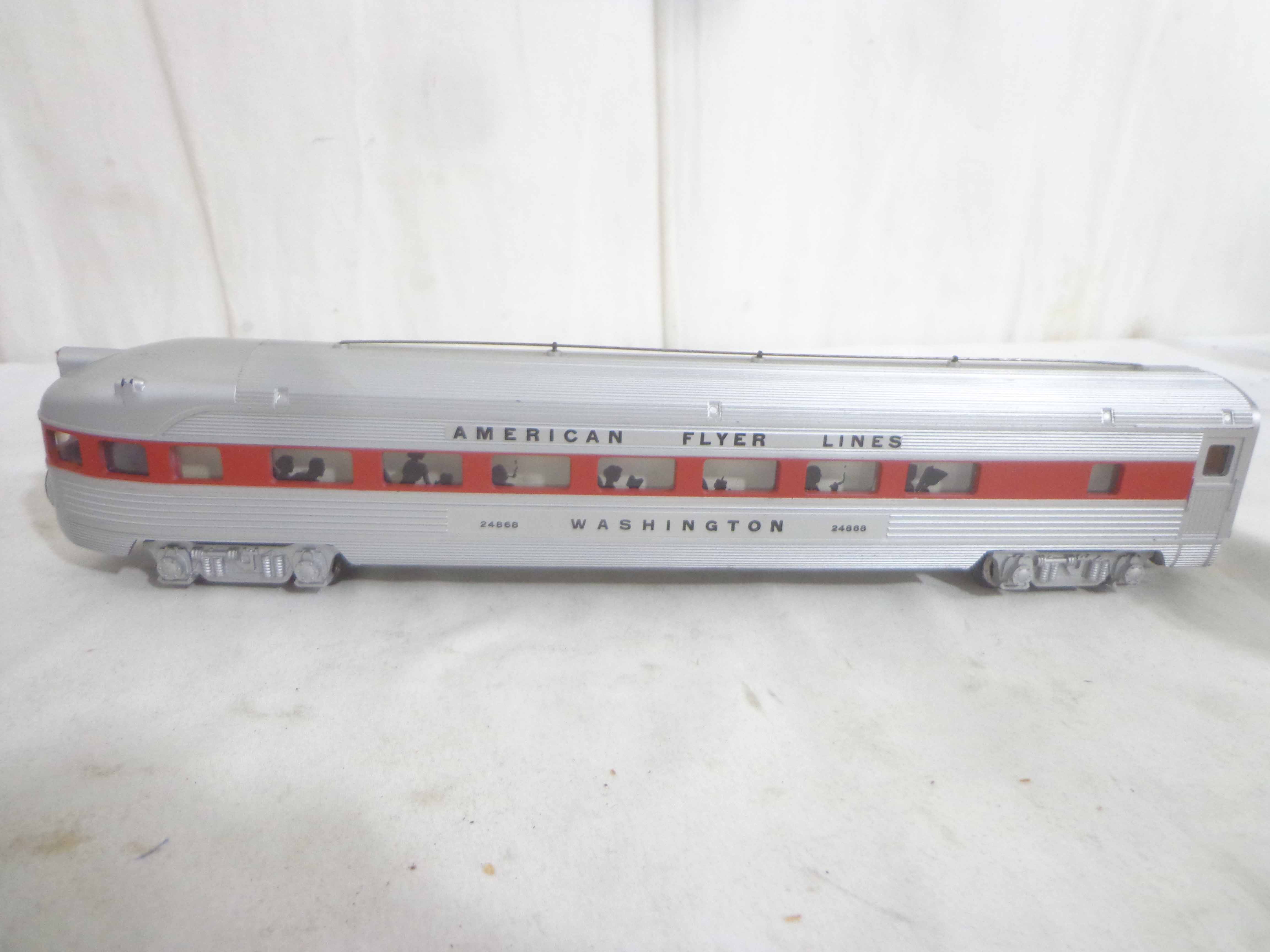 These are the #24867/24868/24868 Passenger Cars that American Flyer made in S Gauge in the late 1950s/early 1960s. Examine very closely; what is pictured is what you will receive. Please add $30.00 for US-48 Shipping and Insurance (more west of the Mississippi).