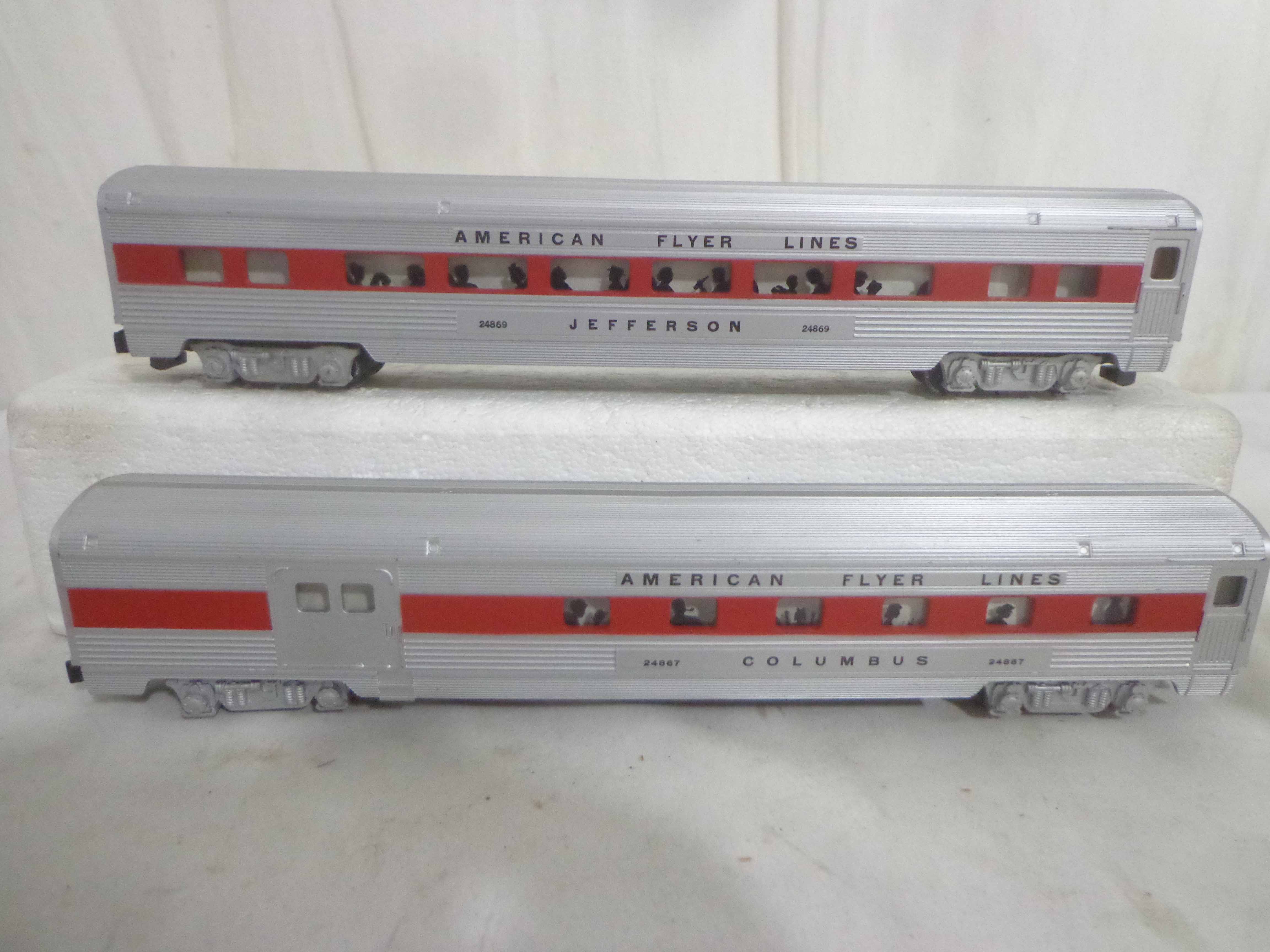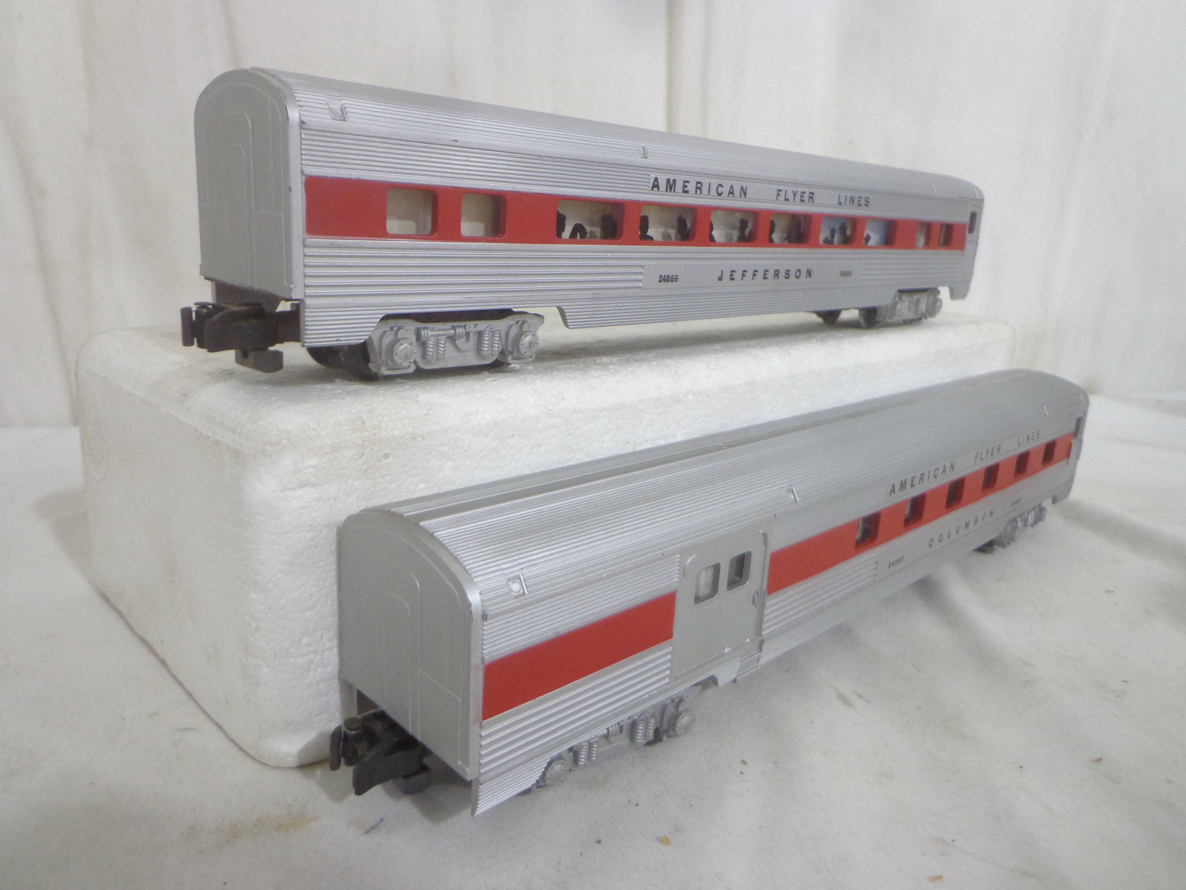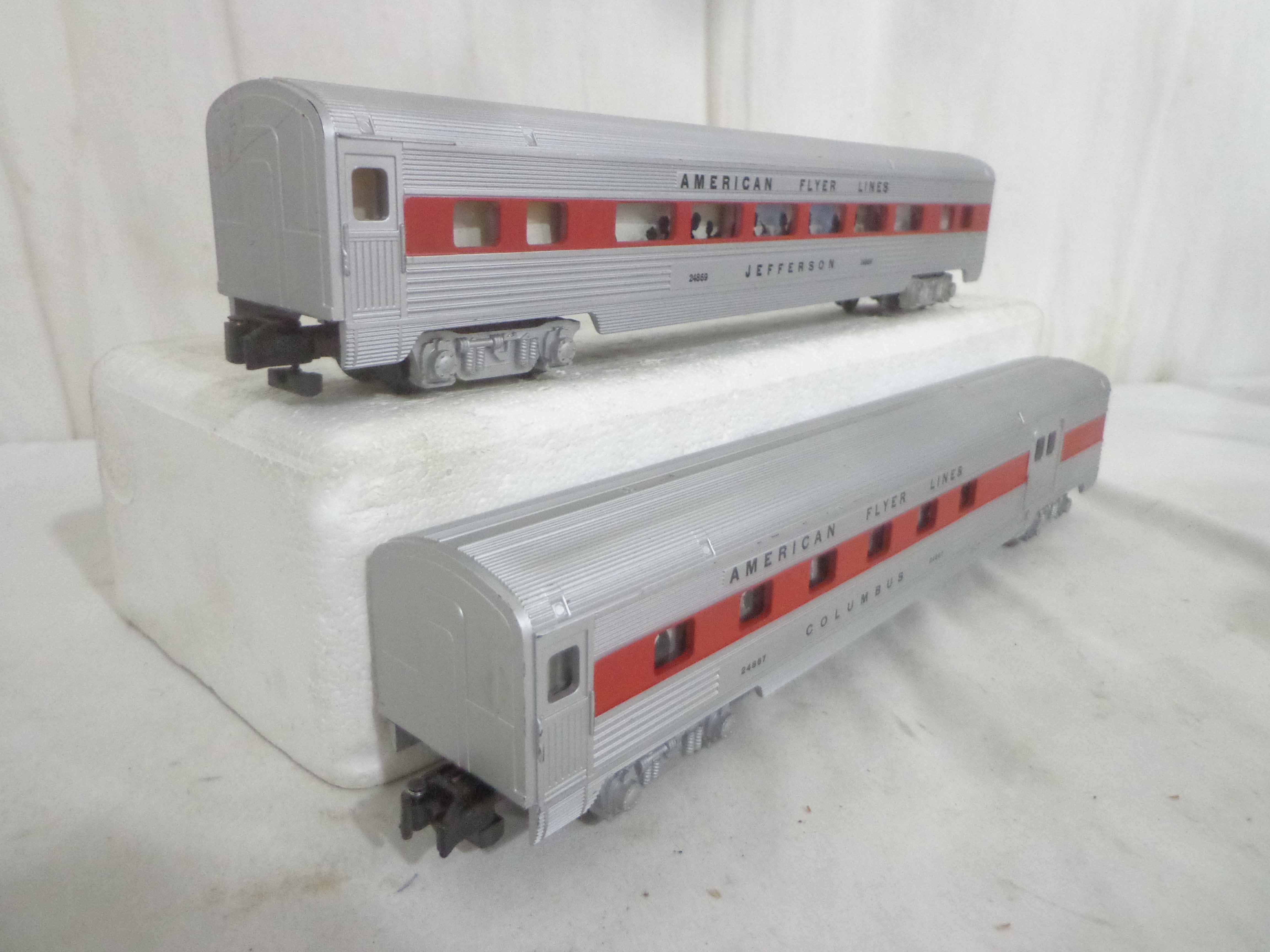 These are the #24867/24868/24868 Passenger Cars that American Flyer made in S Gauge in the late 1950s/early 1960s. Examine very closely; what is pictured is what you will receive. Please add $30.00 for US-48 Shipping and Insurance (more west of the Mississippi).
