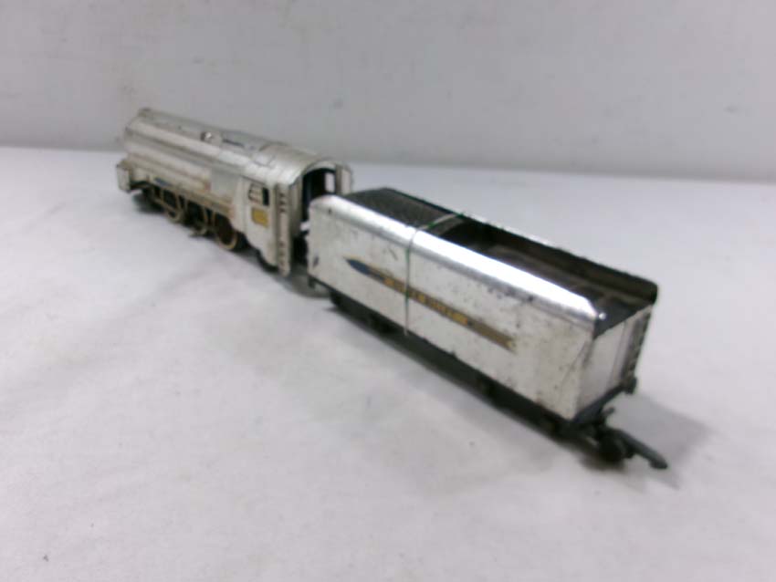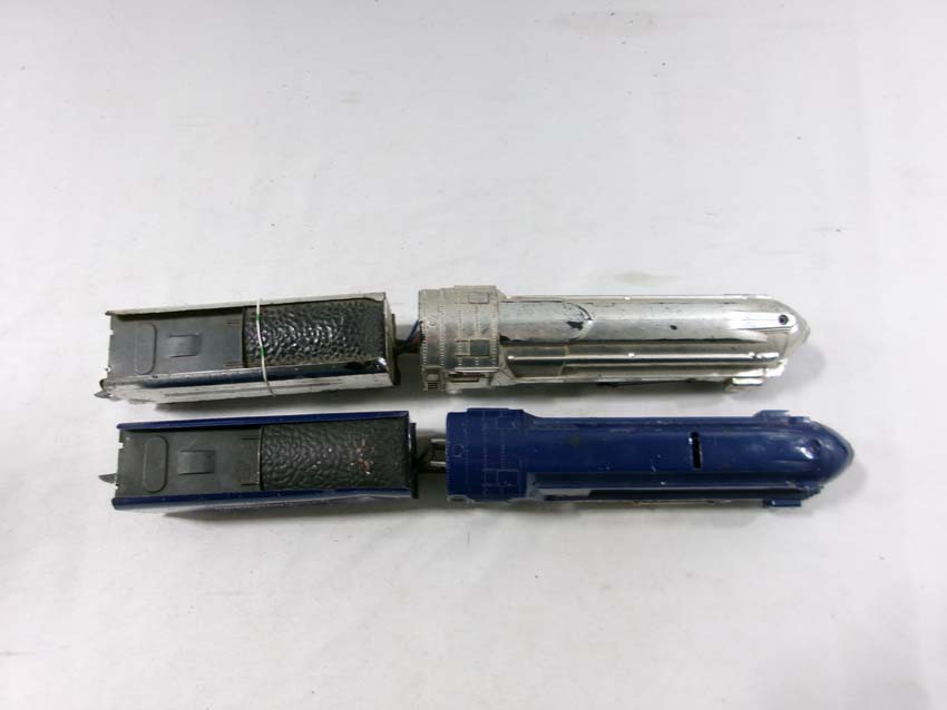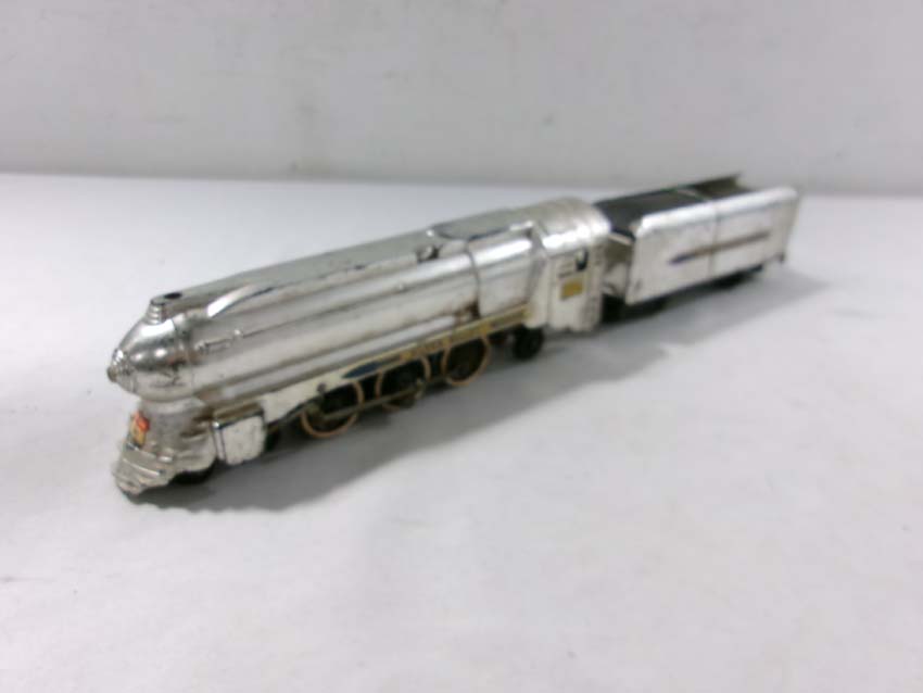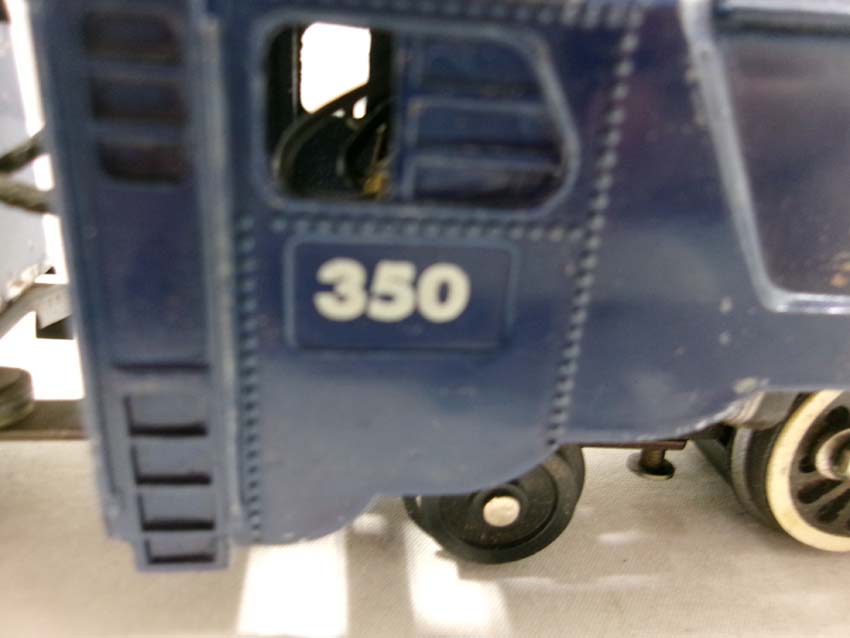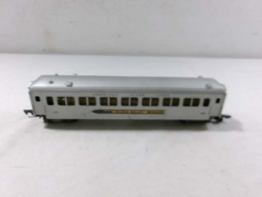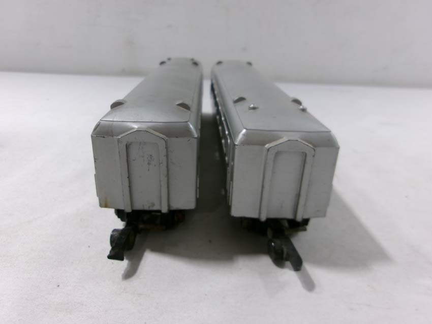 These are the American Flyer S Gauge #350 Royal Blue 4-6-2 Steam Engine & Tender, #356 Silver Bullet 4-6-2 Steam Engine & Tender and two #655 Silver Bullet Coaches. No Boxes. Examine closely; what is pictured is what you will receive. Please add $50.00 for US-48 Shipping and Insurance (more west of the Mississippi).