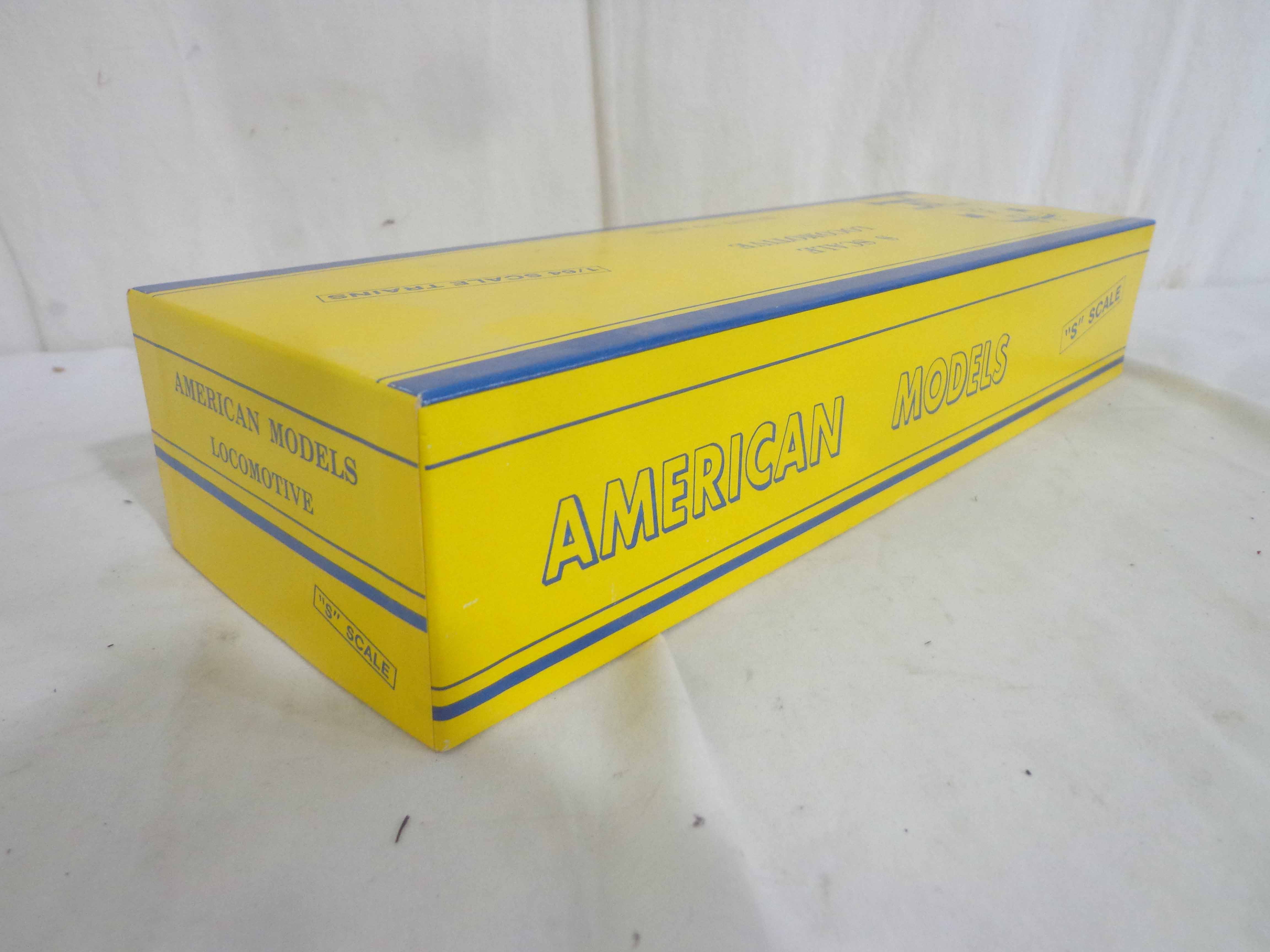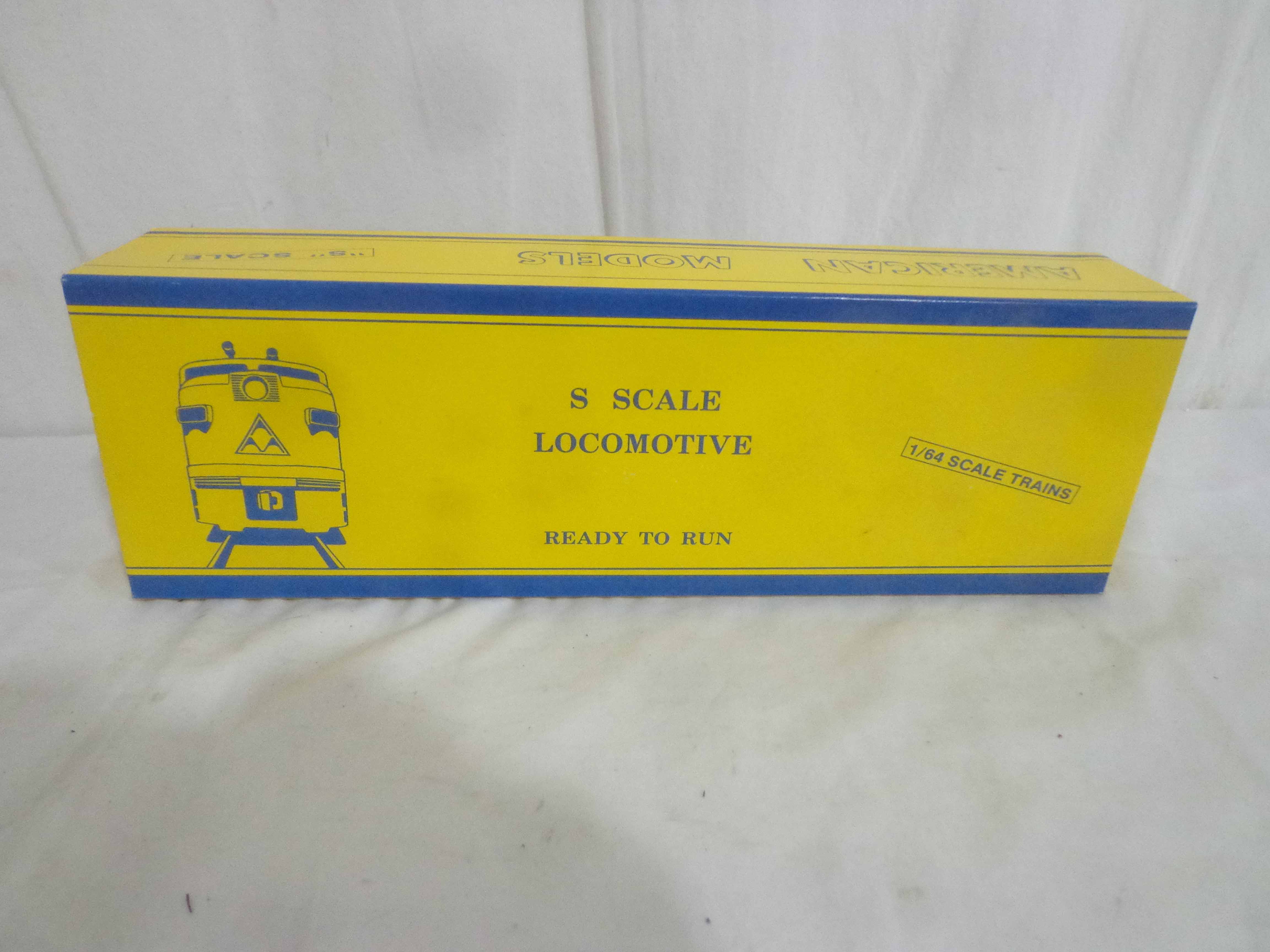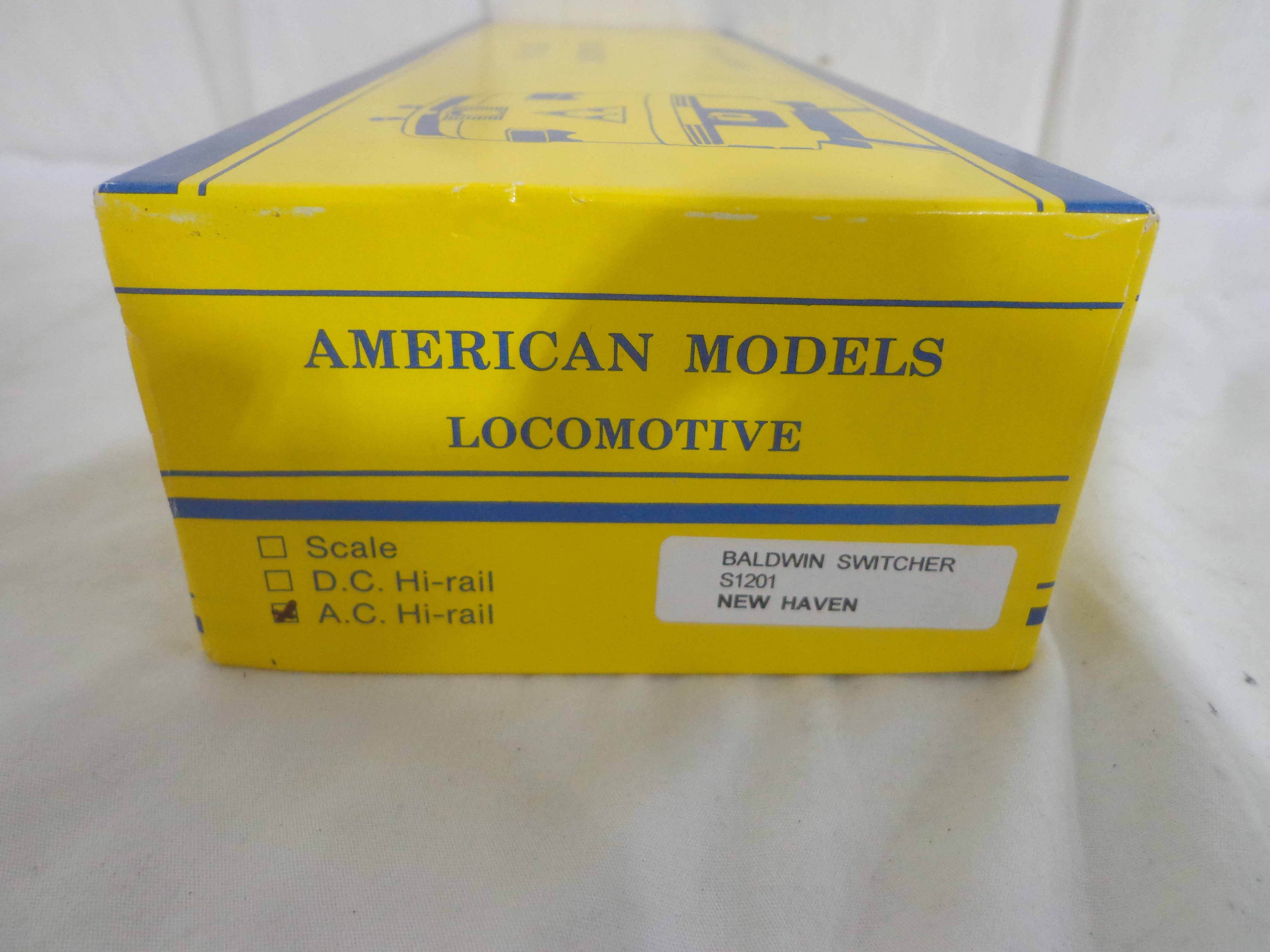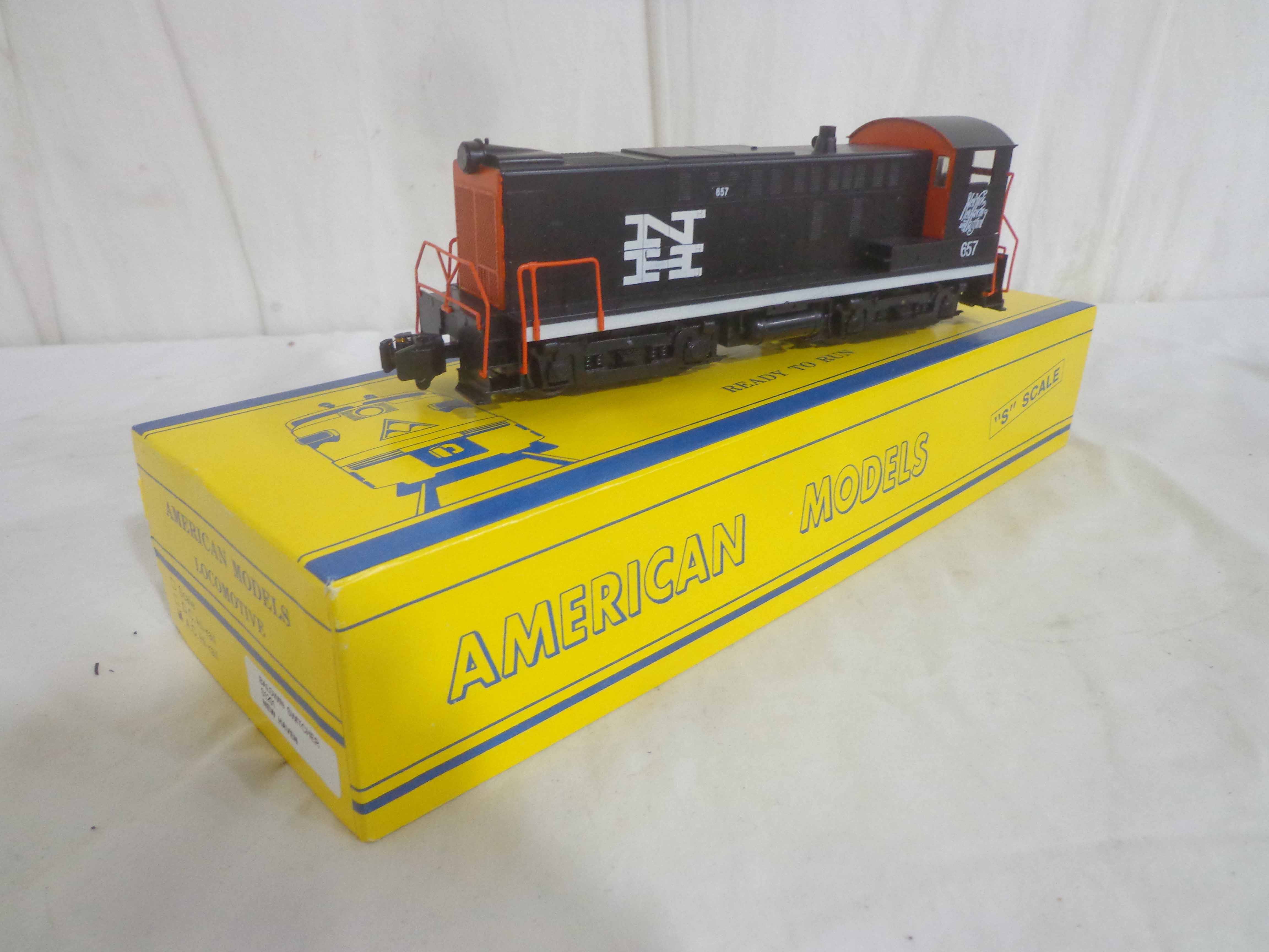 This is the #S1201 New Haven Baldwin Switcher that American Models made in S-gauge a few years ago. Original Box. Please add $30.00 for US-48 Shipping and Insurance (more west of the Mississippi).