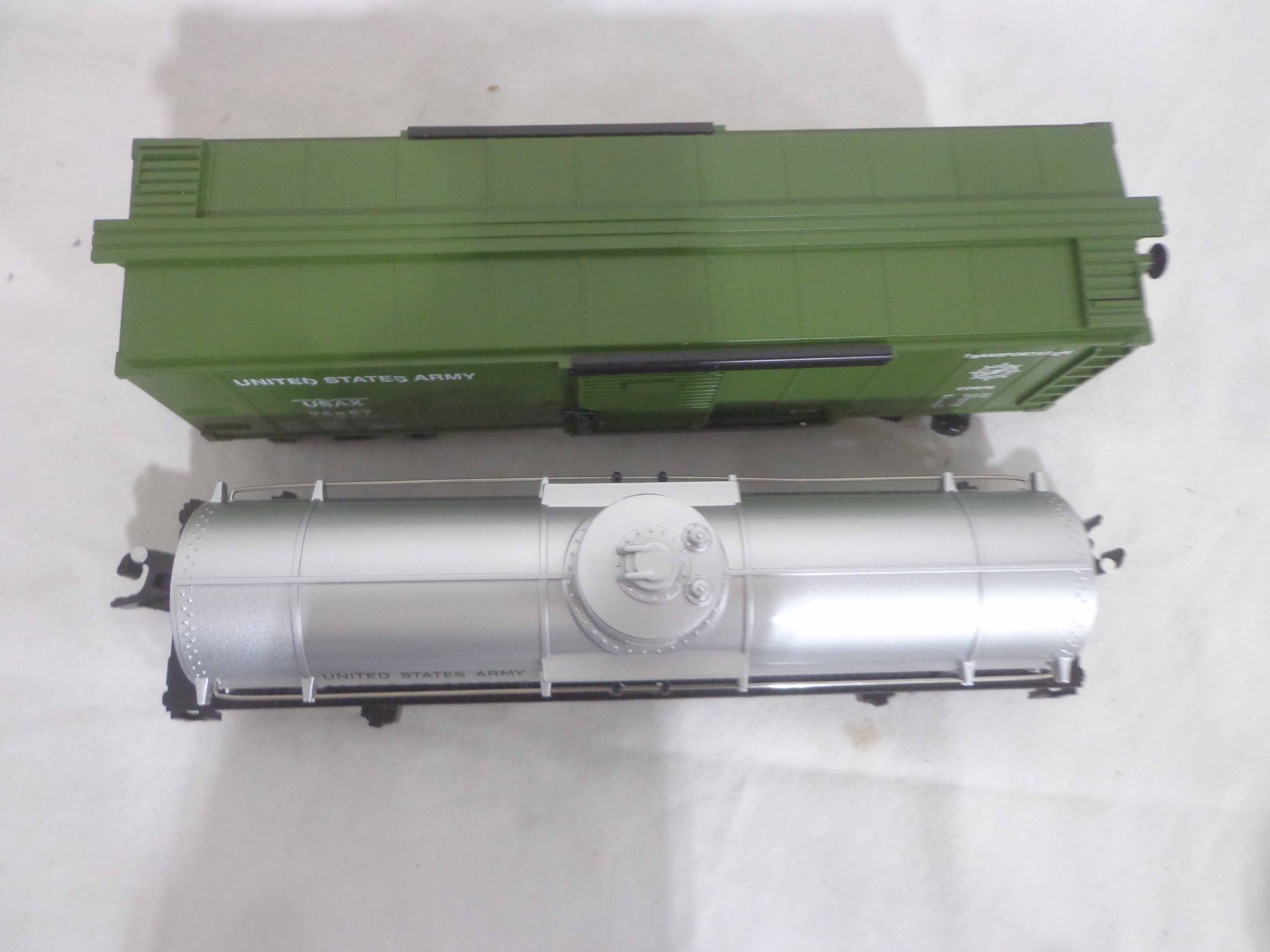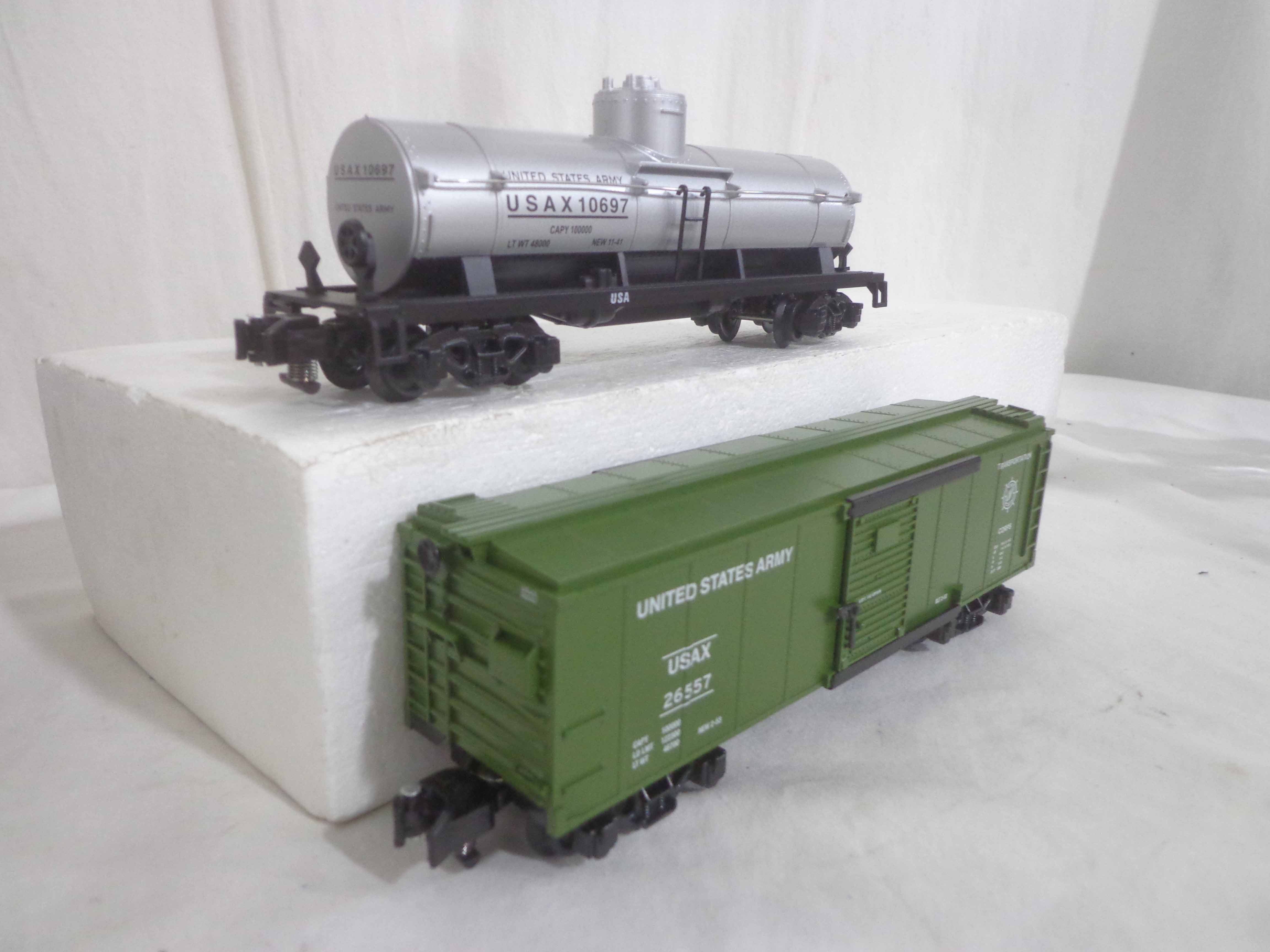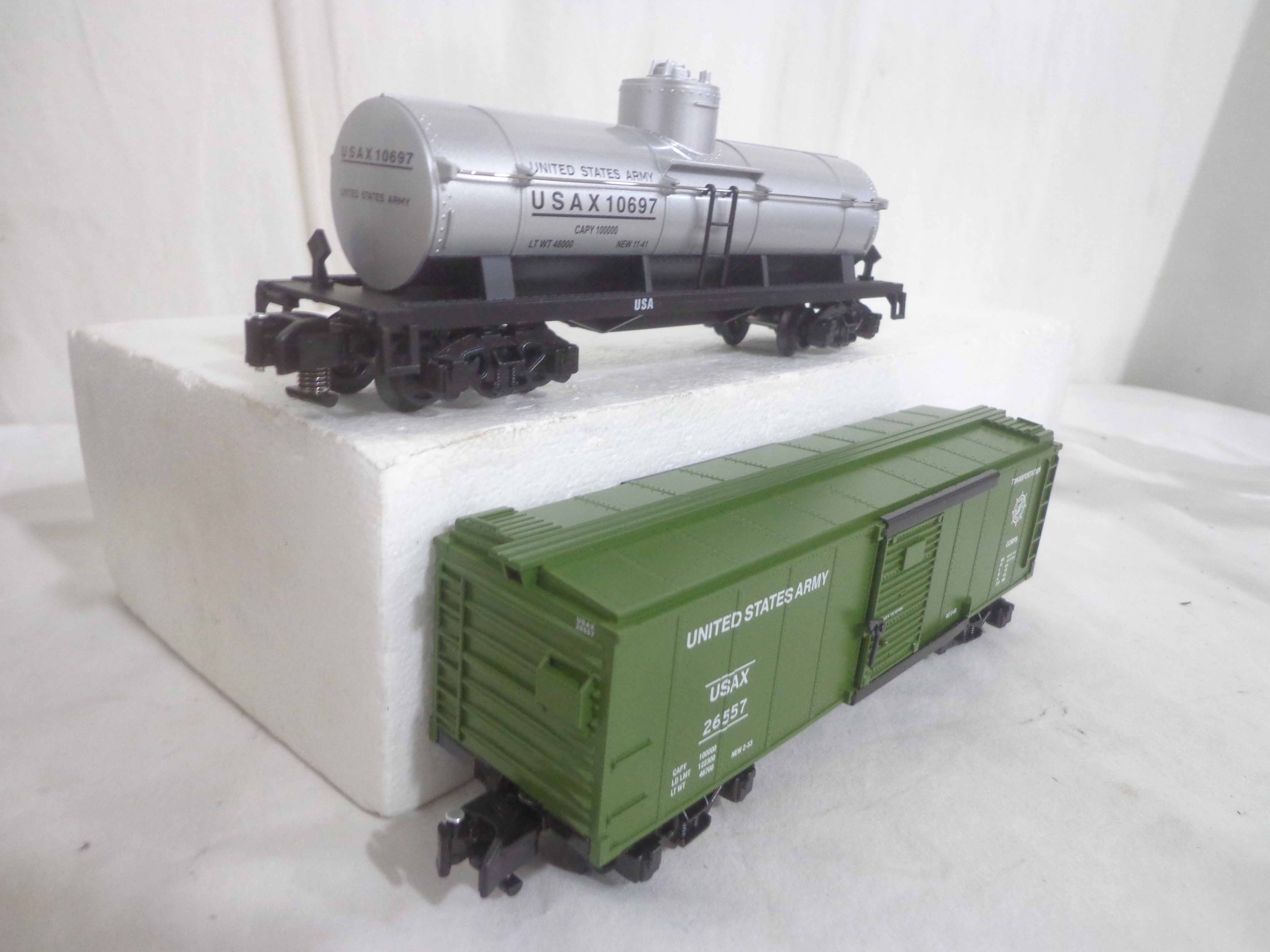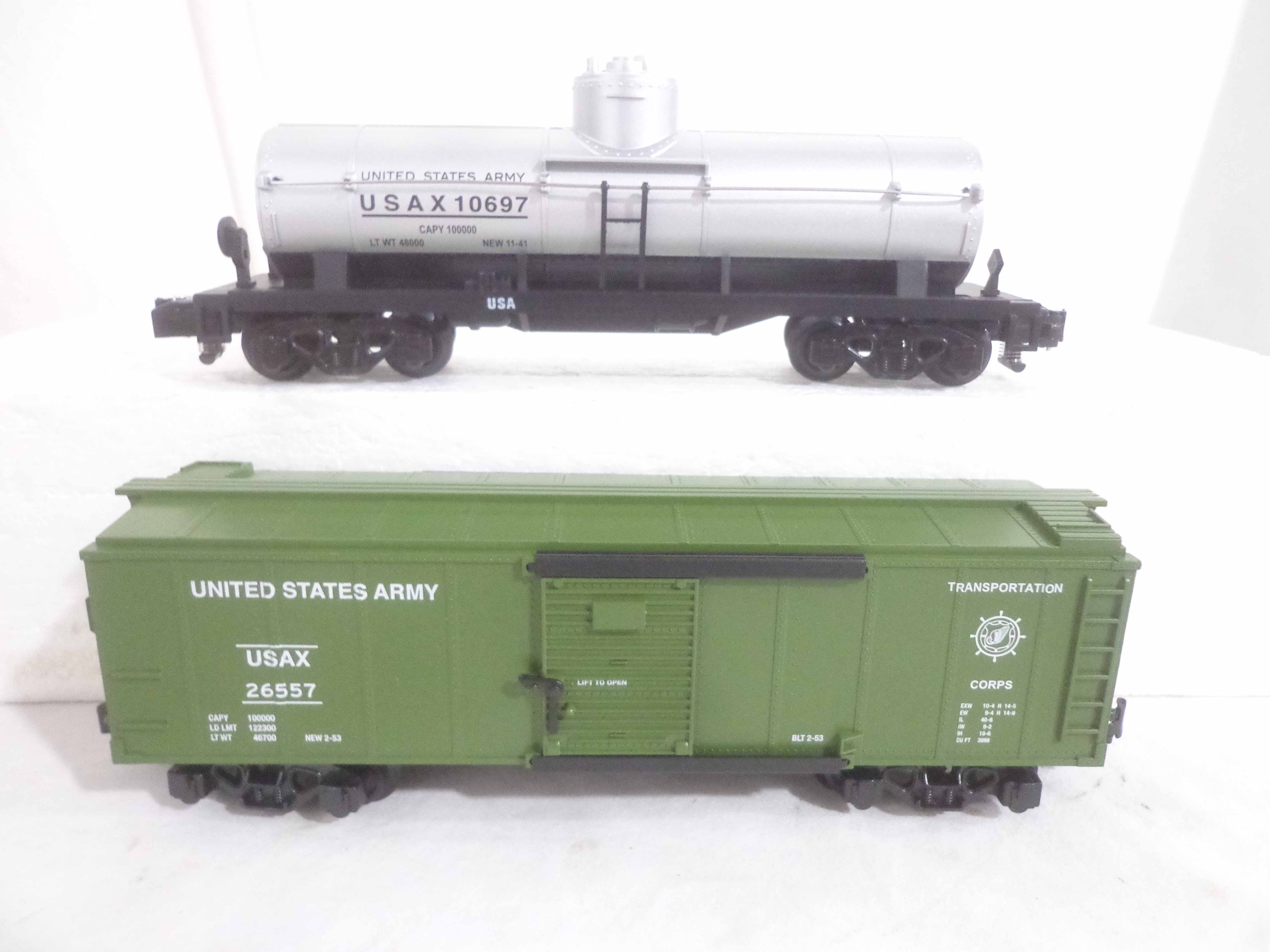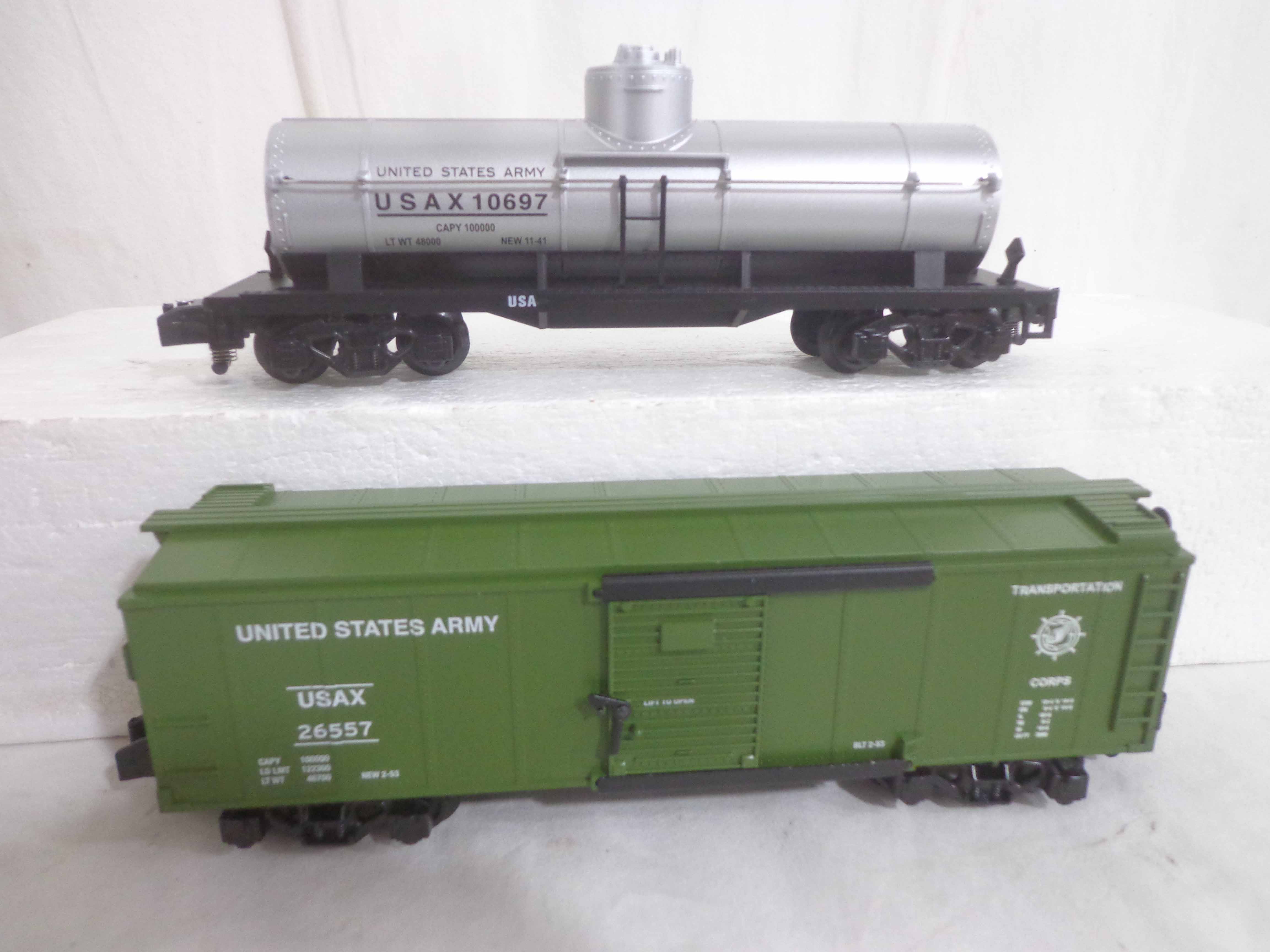 This is the #2119300 US Army Set of 4 Freight Cars that Lionel/AF made is S Gauge. Original Boxes. Examine closely; what is pictured is what you will receive. Please add $35.00 for US-48 Shipping and Insurance (more west of the Mississippi).