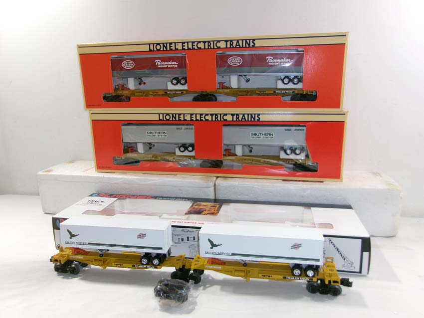 Lionel #16334 C&NW TTUX Flat Car Set, #16363 Southern TTUX Flat Car Set and #16904 NYC TTUX Flat Car Set/OBs