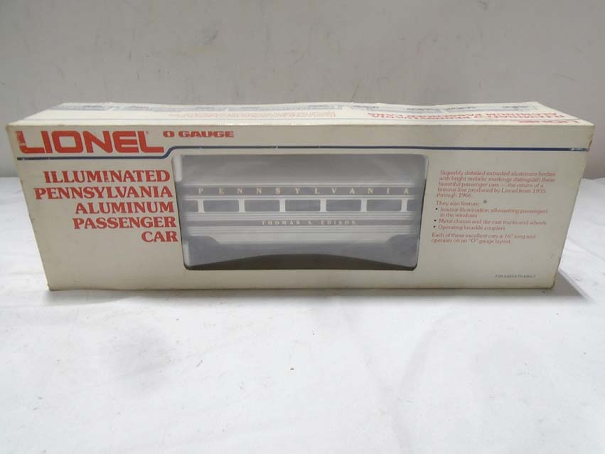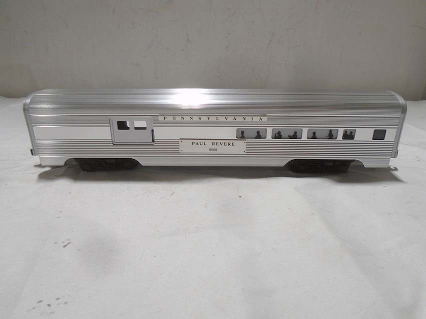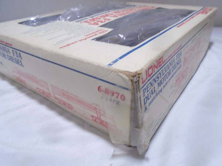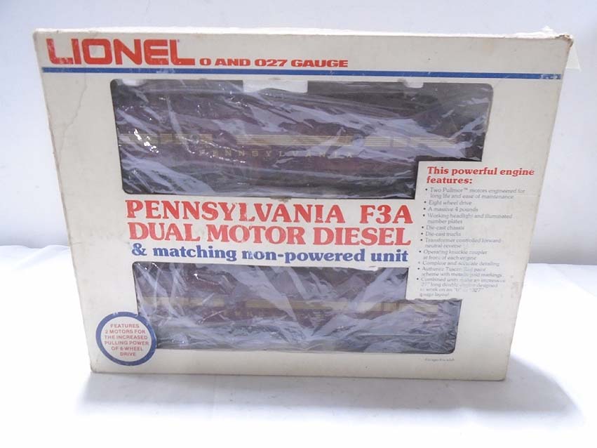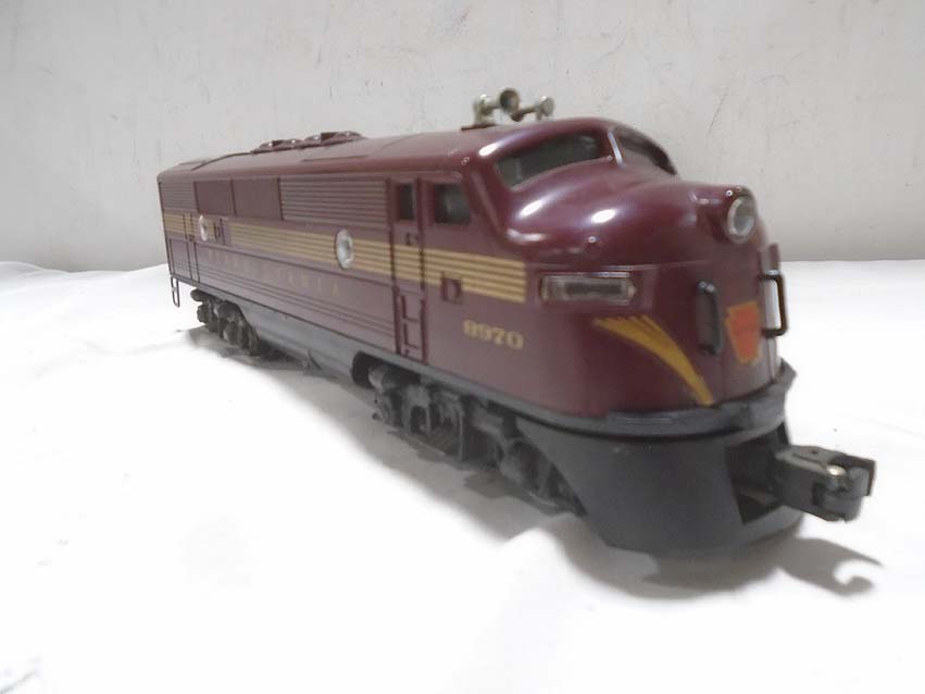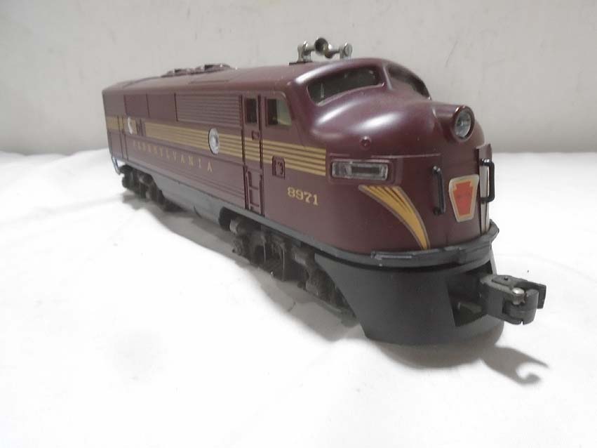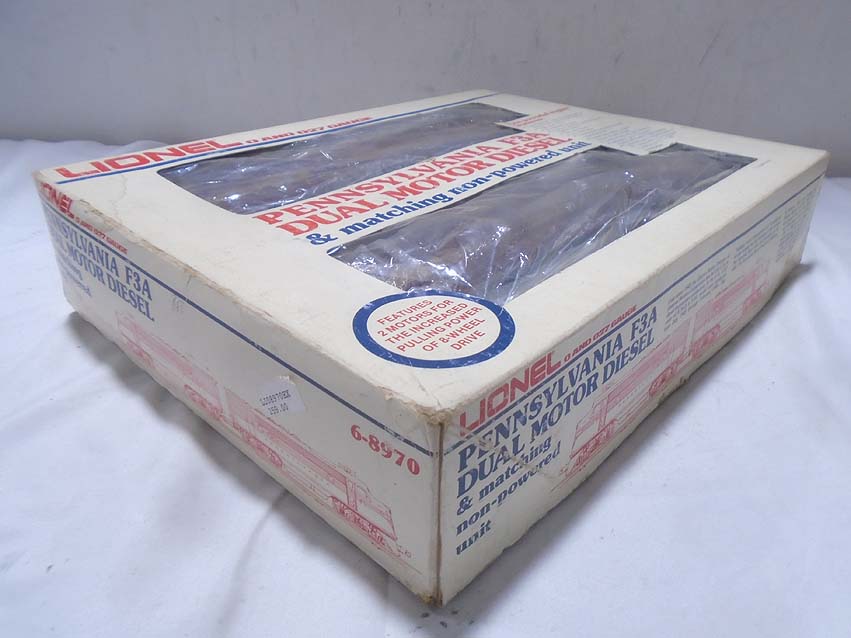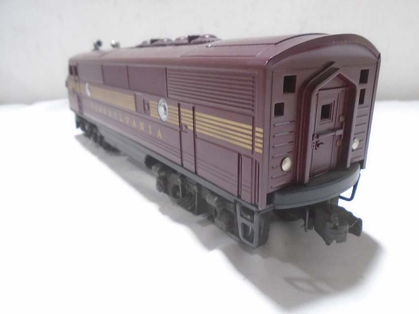 These are the #8970/8060 Tuscan Pennsylvania F-3 ABA Diesels and eight Passenger Cars that Lionel made circa 1980. Included are the #8970/8060 PA ABA Locomotive Units and the #9569/9570/9571/9572/9573/9574/9576/7208 Aluminum Passenger Cars. Our Opinion is that they are generally in Excellent Plus Condition. Original Boxes. All Original in our Opinion. Please add $80.00 for US-48 Shipping and Insurance (more west of the Mississippi). EX+ Lionel #8970/8060 PRR F-3 ABA Diesel Engines and #9569/9570/9571/9572/9573/9574/9576/7208 PRR Aluminum Passenger Cars, OBs GB