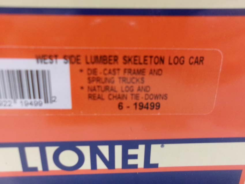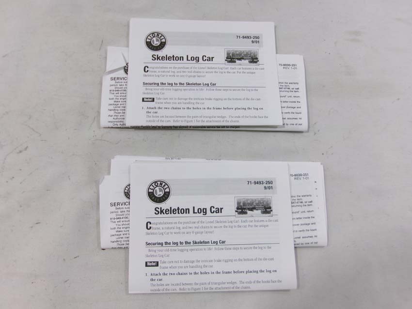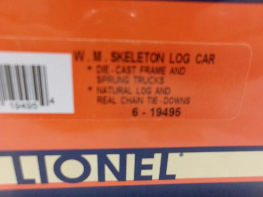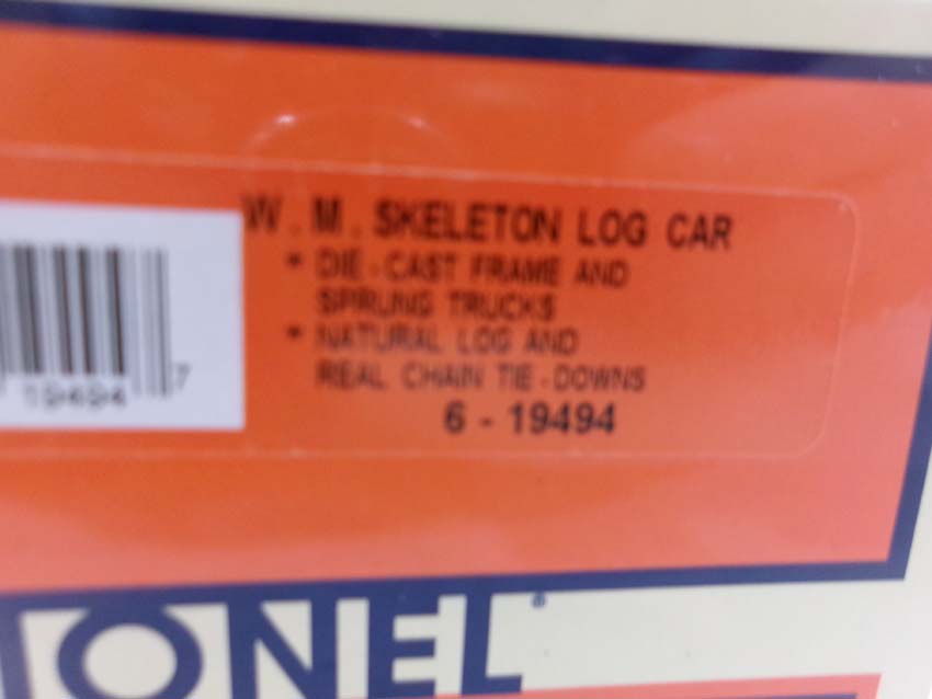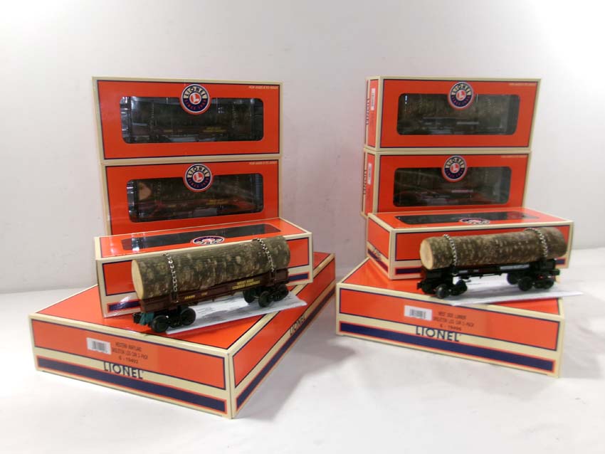 These are the #19492 WM Skeleton Log Car 4-Pack (includes #19493/19494/19495 cars) and #19496 WSL Skeleton Log Car 4-Pack (includes #19497/194498/19499 cars) that Lionel made a few years ago. Our Opinion is that the they are generally in Like New Condition. Original Boxes. All Original in our Opinion. Please add $45.00 for US-48 Shipping and Insurance (more west of the Mississippi).