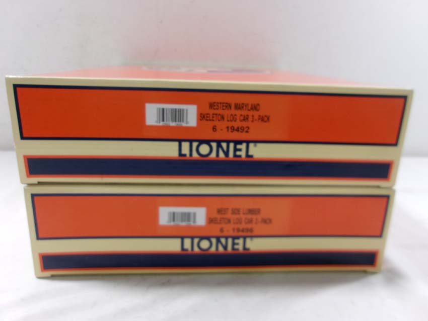 LN Lionel #19492 WM Skeleton Log Car 4-Pack (includes #19493/19494/19495 cars) and #19496 WSL Skeleton Log Car 4-Pack (includes #19497/194498/19499 cars), OBs G3 |